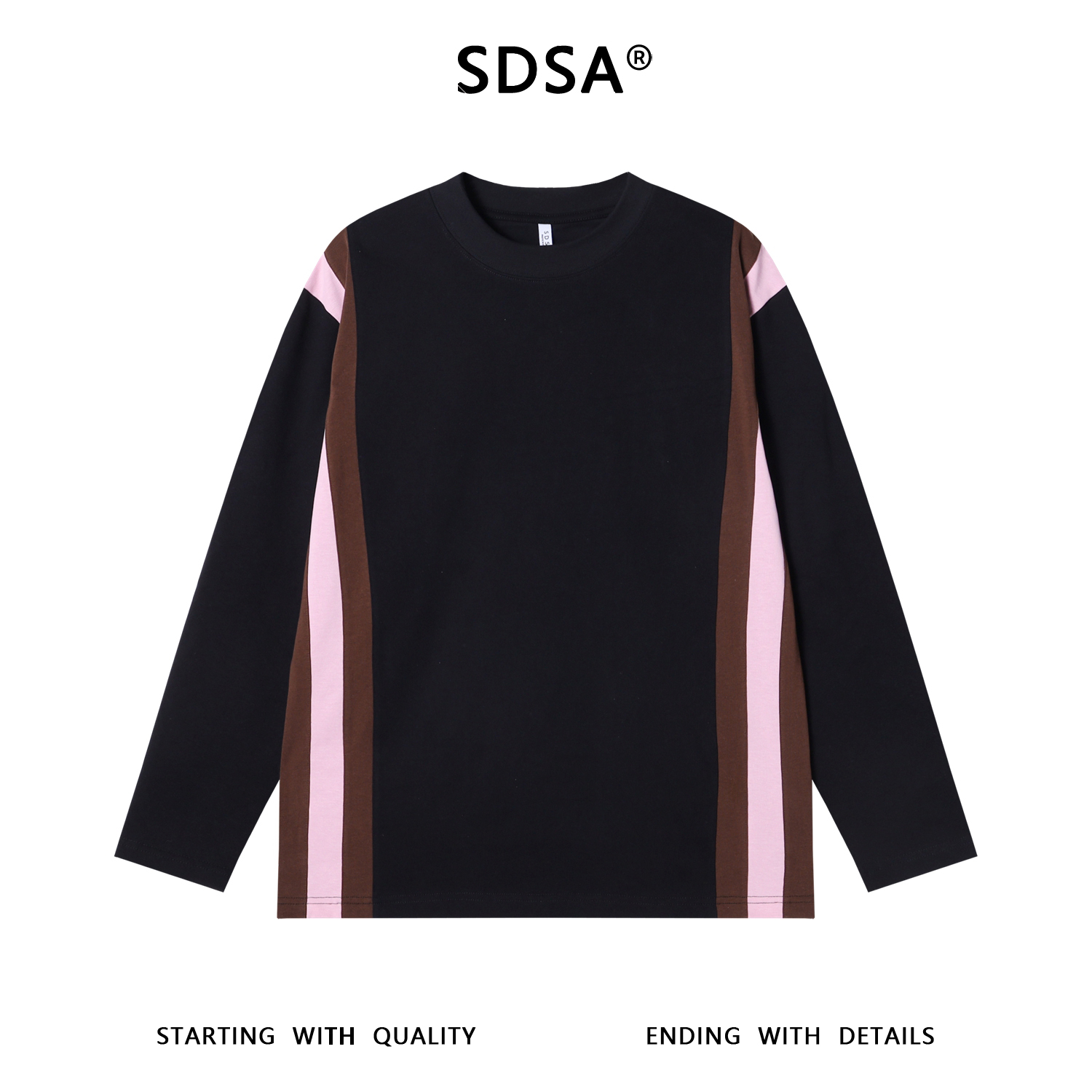 T1892秋季新款时尚个性撞色明线圆领长袖T恤简约宽松百搭上衣