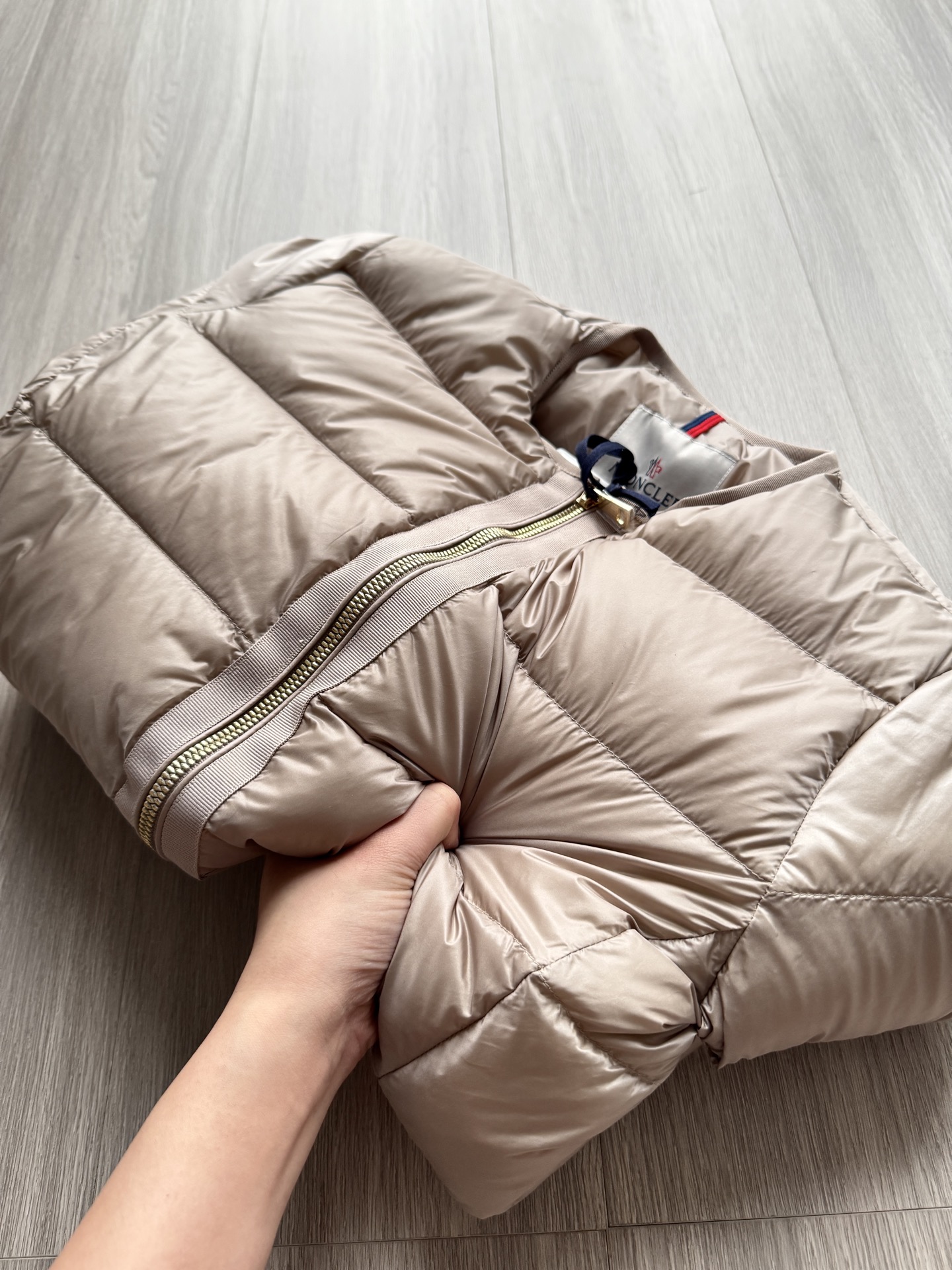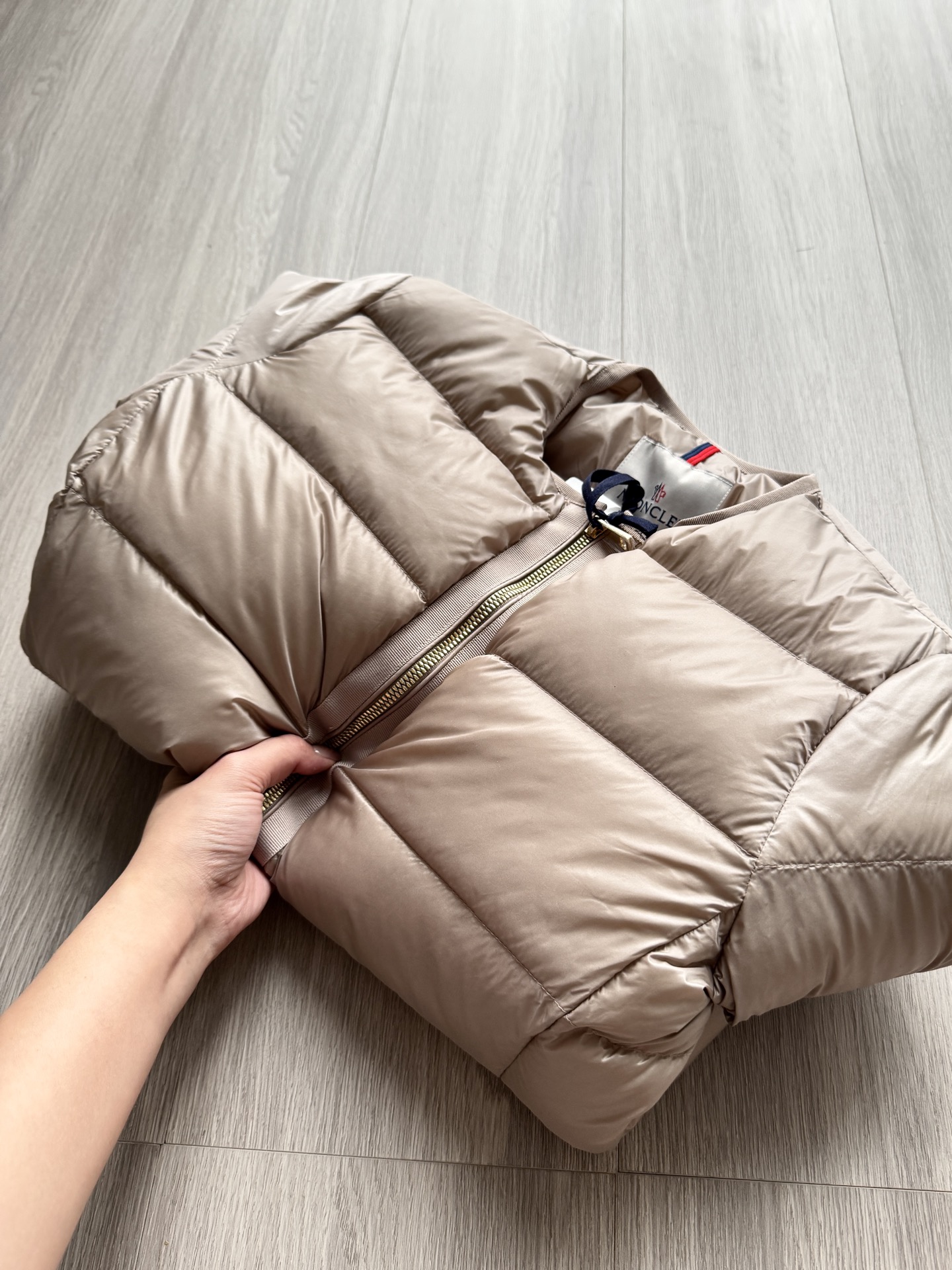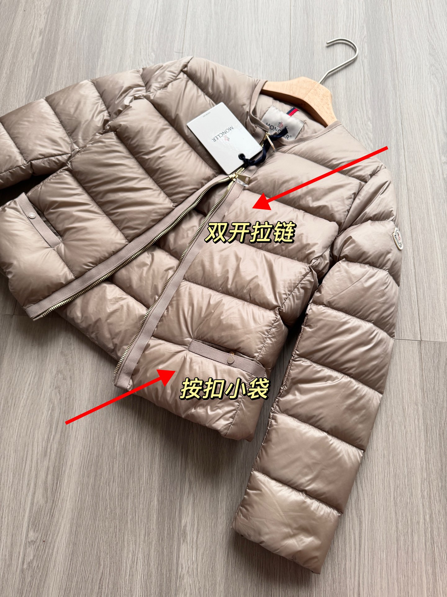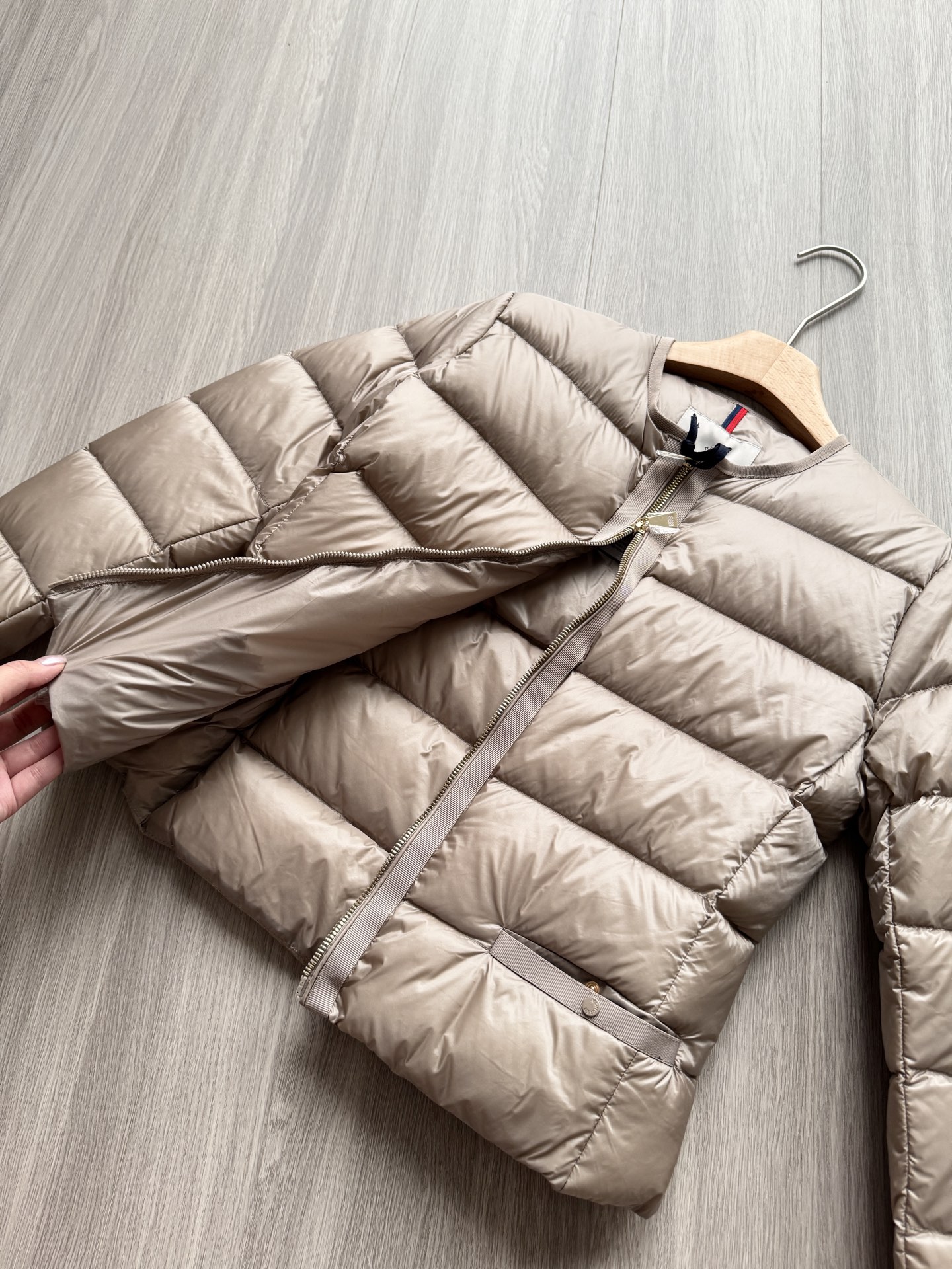 Moncer盟睐Laurine短款羽绒服女款夹克外套 功能性风格的代名词,采用轻质尼龙制成,表面呈现哑光缎面效果,点缀同色系罗缎饰边 ⚠️修身版型设计,Nylon léger衬里,填充羽绒⚠️90白鹅绒 充绒非常饱满 ,蓬松回弹性没得挑!很轻巧但是却很保暖!双拉链开合,西装袋点缀!强烈推荐!