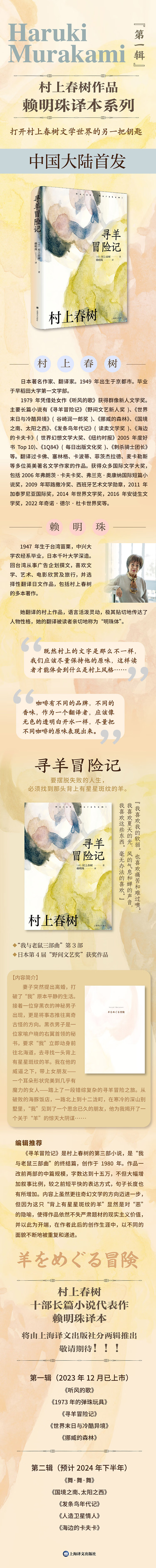 《寻羊冒险记》是村上春树的第三部小说,是“我与老鼠三部曲”的终结,创作于1980年。作品篇幅一改前两部5万字的中篇规模,达到了15万字,大幅增加叙事比例,较之前短平快的表达方式,句子长度也有所增加,可以说是作者第一部真正意义上的“长篇小说”。作者在作品中塑造了一只通过寻找人类宿主以达到掌控世界目的的“羊”,较第二部《1973年的弹珠玩具》更往奇幻文学的方向迈进一步,但因为这只“背上有星星的羊”显而易见是对“恶”的隐喻,使得作品依然不失严肃题材的现实主义价值,并以此为开端,在作者此后的创作生涯中,以不同的面貌不断地被重复和递进。