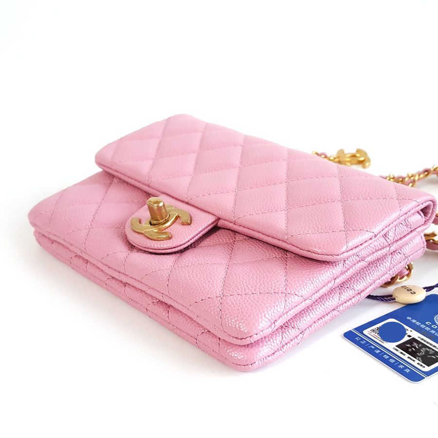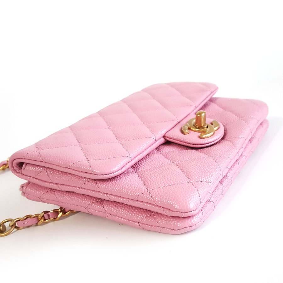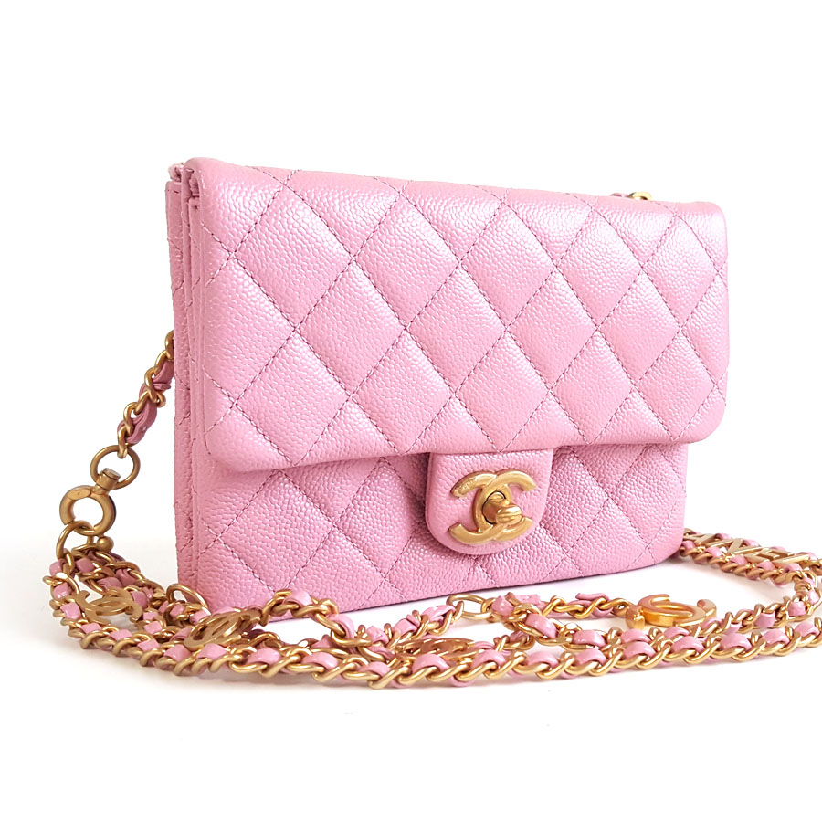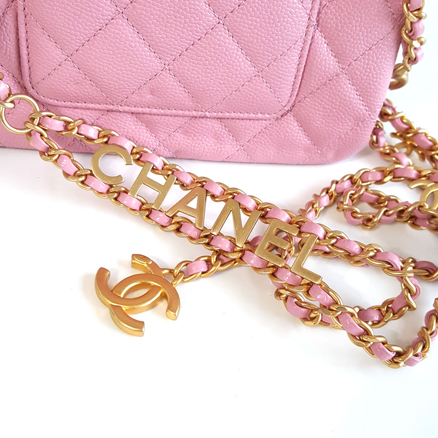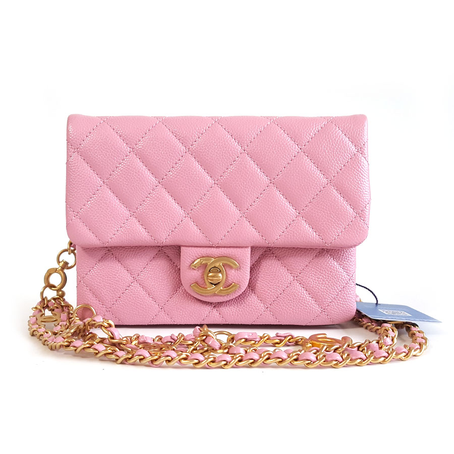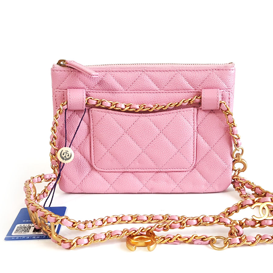 【95新】CHANEL香奈儿AS3225 B08006 NH622 22S粉色荔枝皮字母链条腰包胸包单肩斜跨包女士131025NJS06现售价:16500