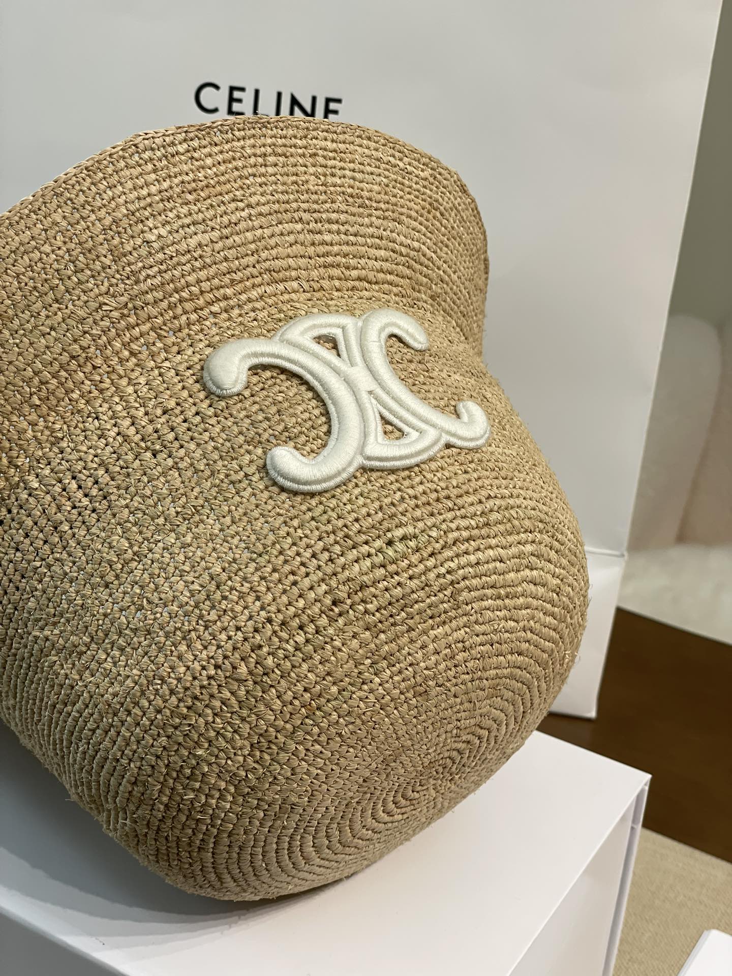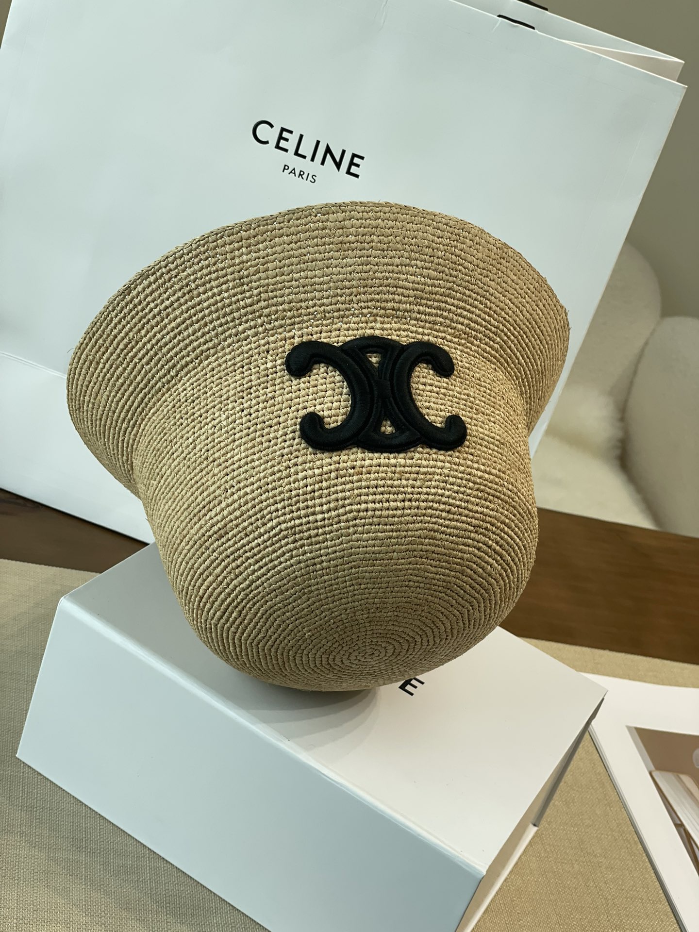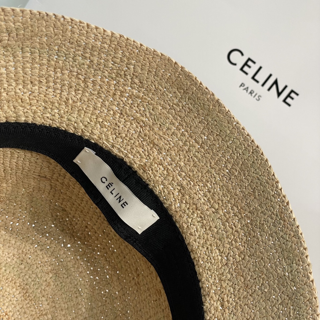 Celine 【升级版】新款凯旋门编织草帽 拉菲草自带的味道真的很好闻~ 这个编织的草帽软软的 可以折起来 不会变形! 内又松紧带 可随意调节 上头帽型超赞~ 大货充足!赶紧砸单哟!