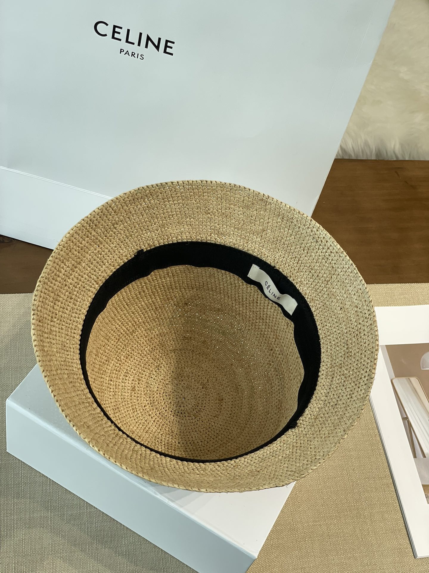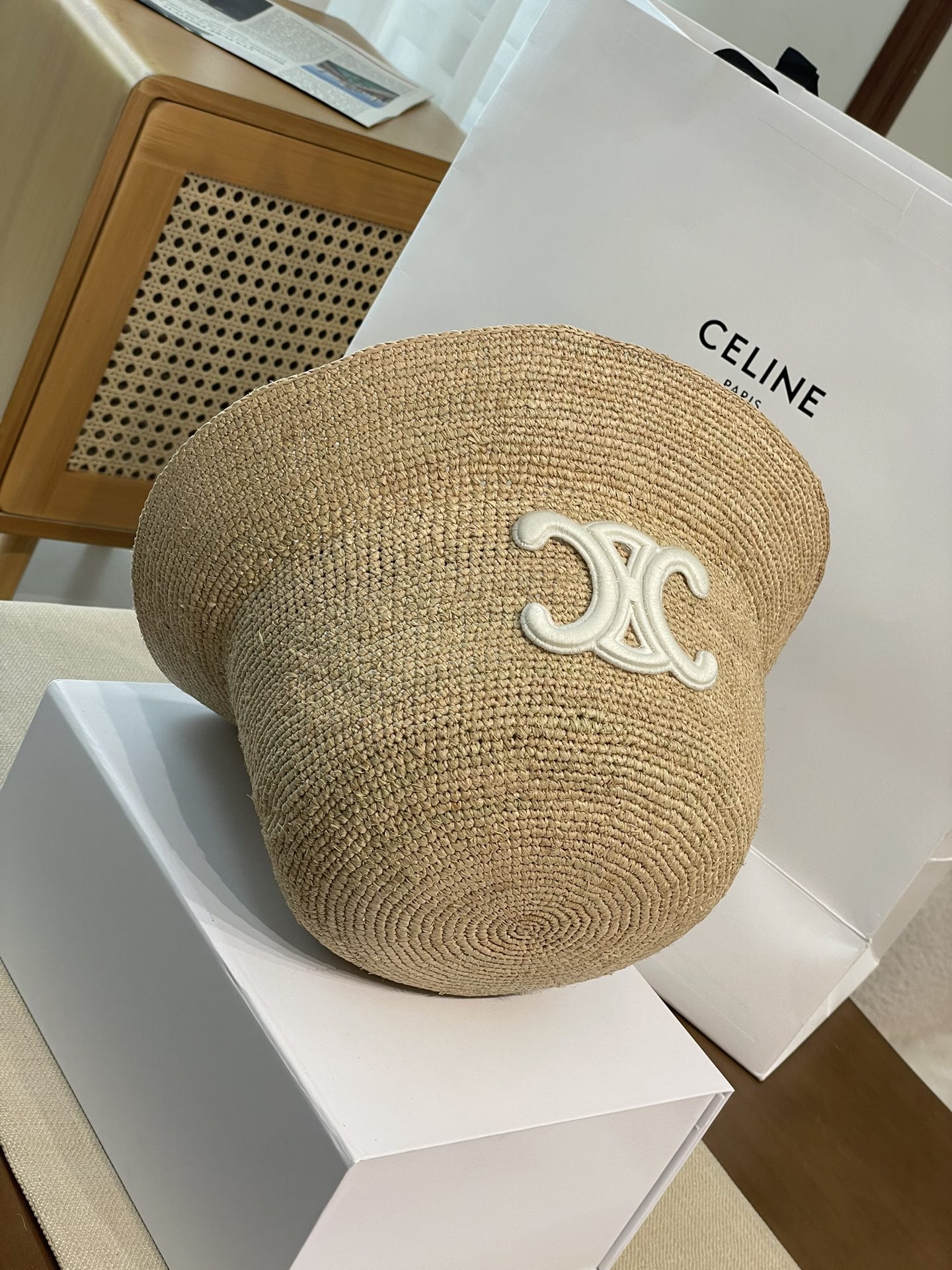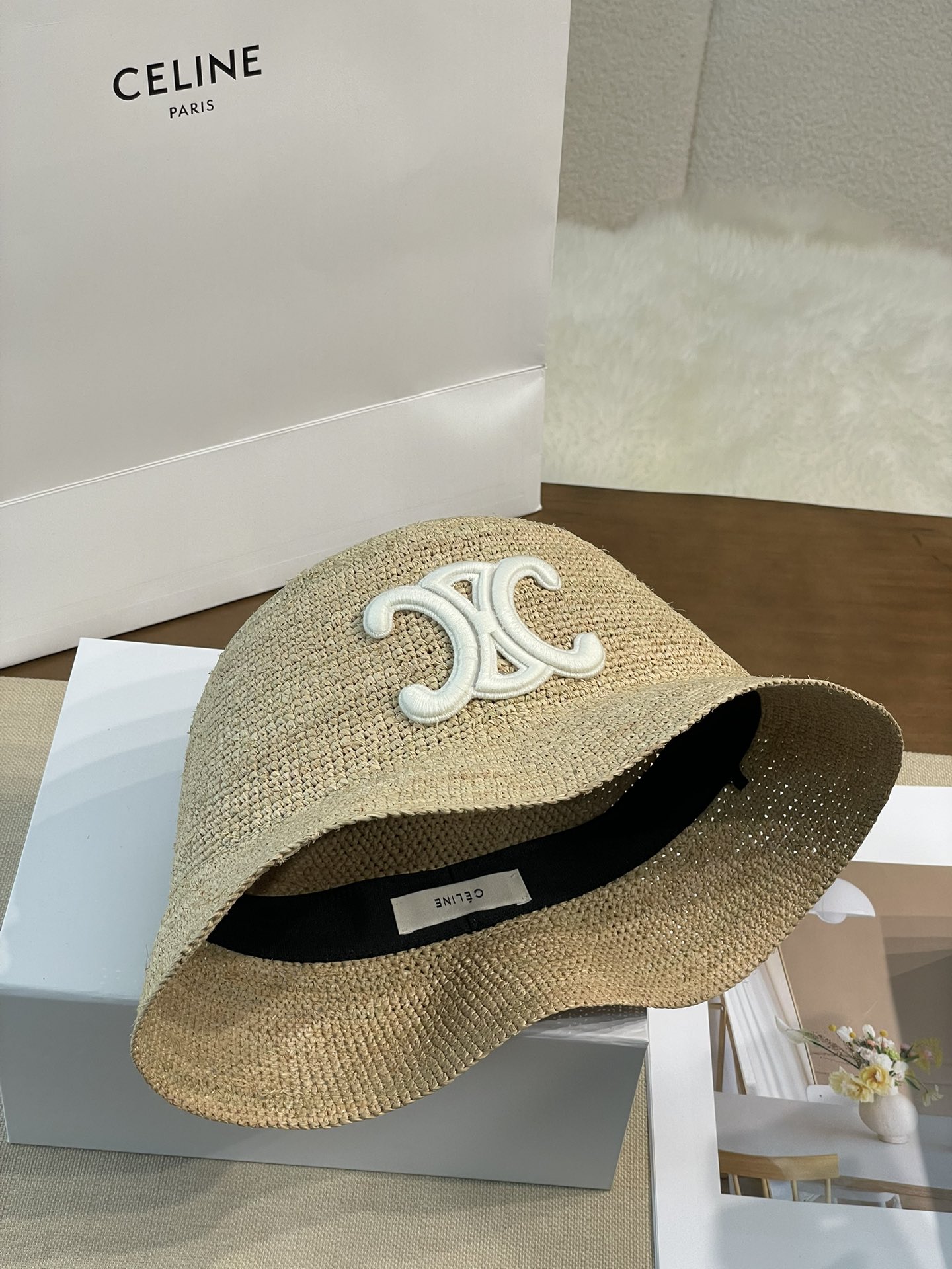 Celine 【升级版】新款凯旋门编织草帽 拉菲草自带的味道真的很好闻~ 这个编织的草帽软软的 可以折起来 不会变形! 内又松紧带 可随意调节 上头帽型超赞~ 大货充足!赶紧砸单哟!