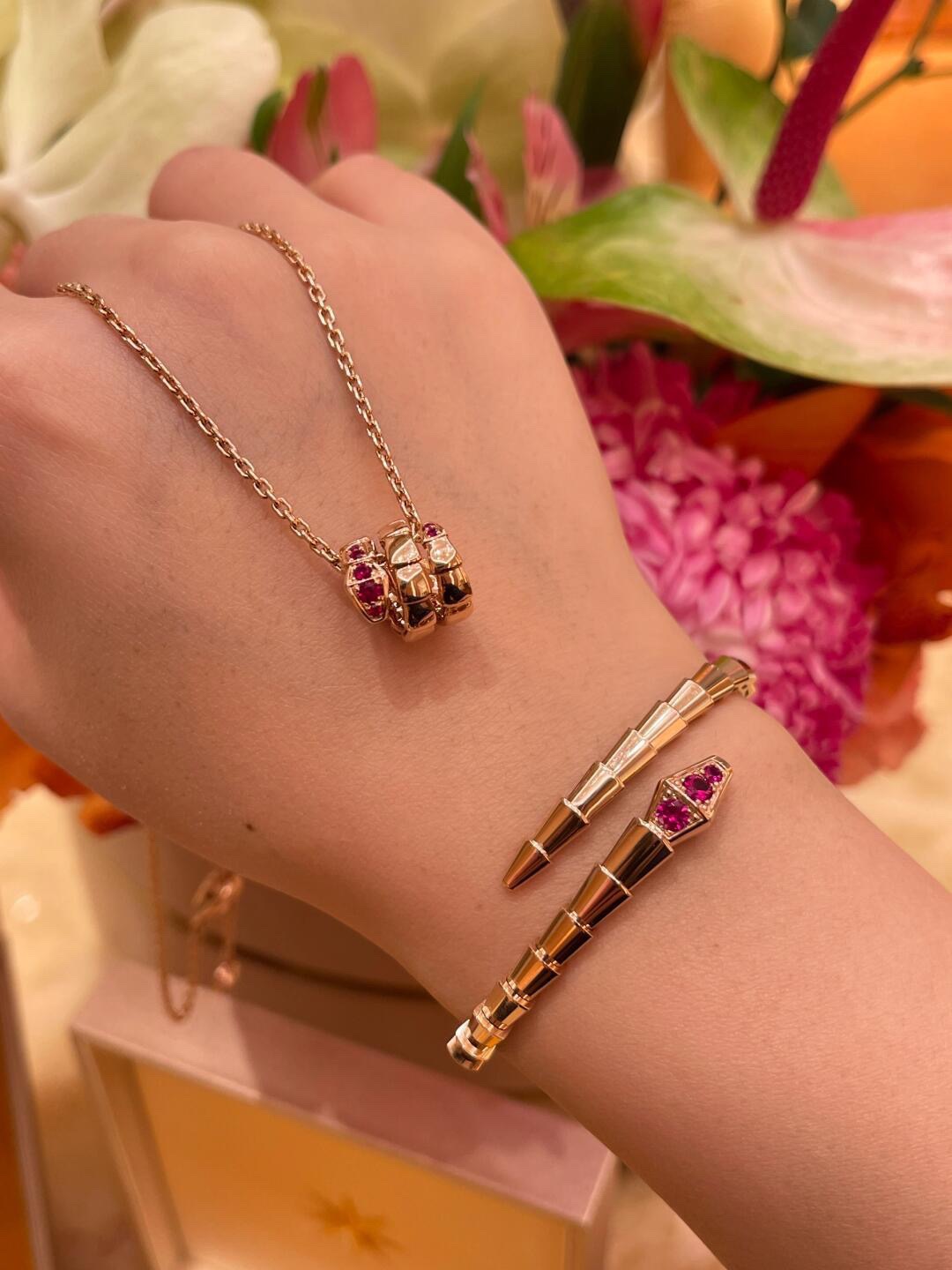 TB119-宝格丽 SERPENTI系列镶嵌18k玫瑰金项链 手镯 男女同款情侣款(XK)-10.14直播款