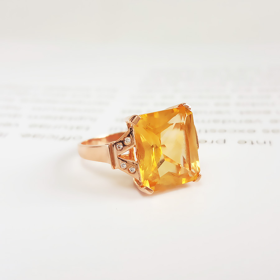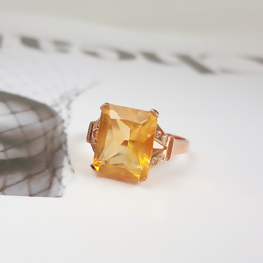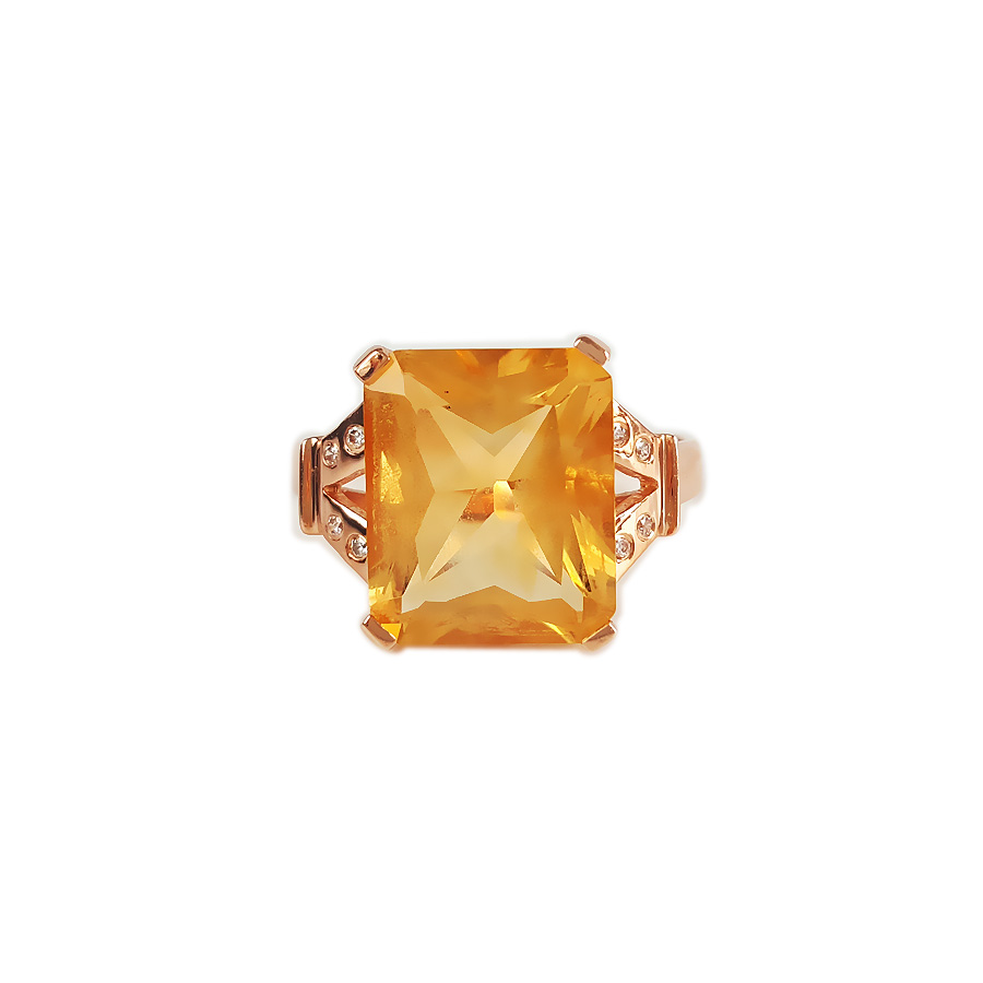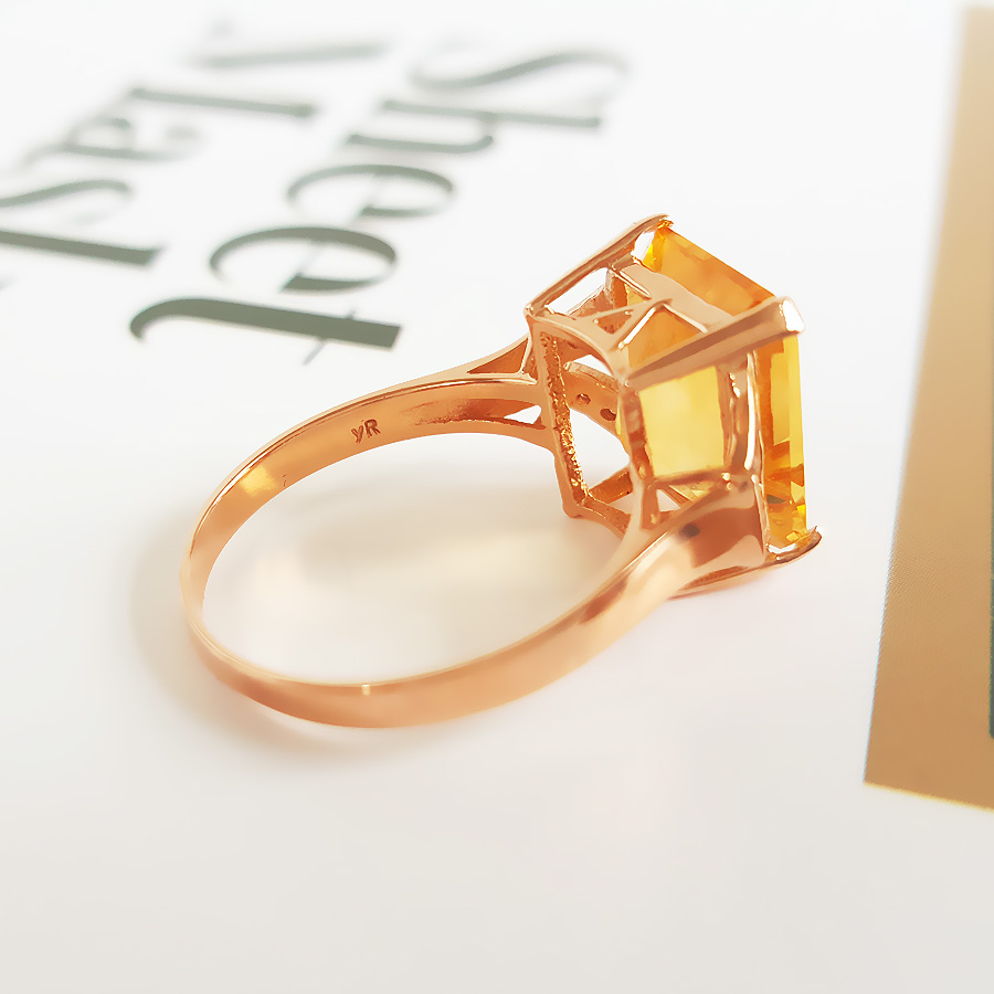 名称 | AU585玫瑰金镶天然全净体祖母绿型近5ct黄水晶(招财)戒指 |