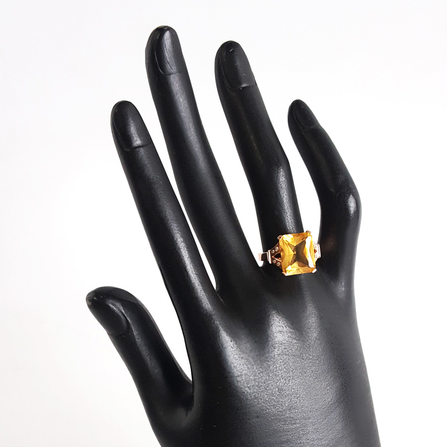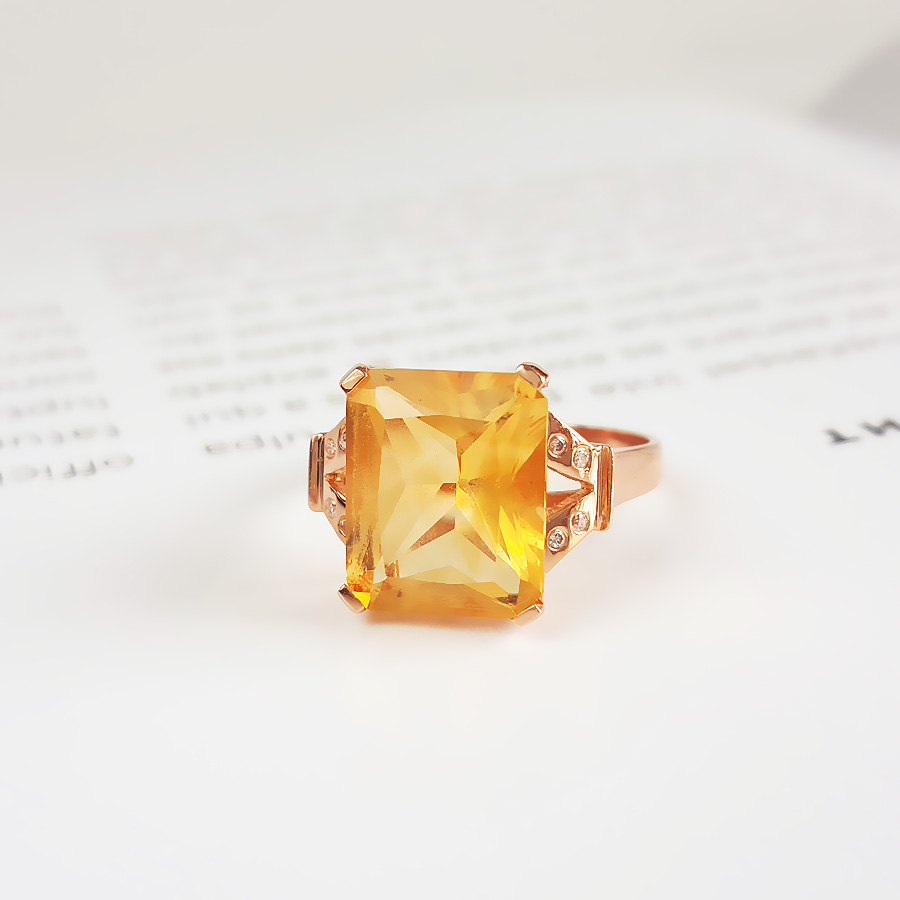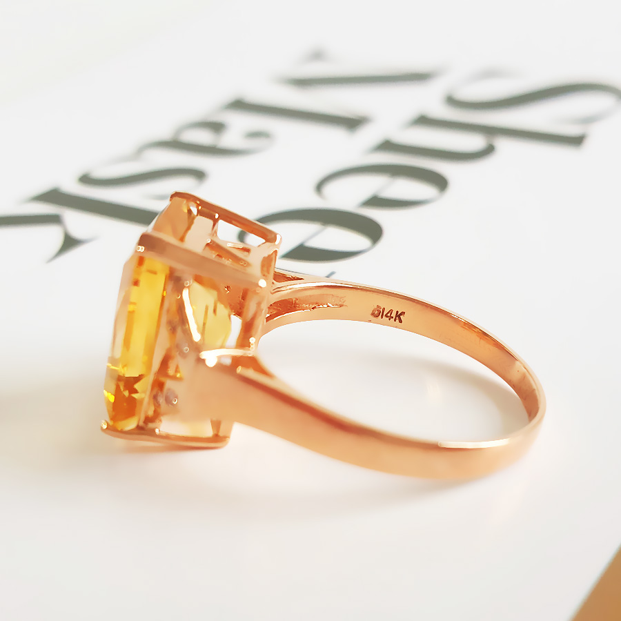 【天然正品】AU585玫瑰金镶天然全净体祖母绿型近5ct黄水晶(招财)戒指12.9*10.5MM(皆取最大值)16号(戒圈可改)女士现售价:2680!030425AH76