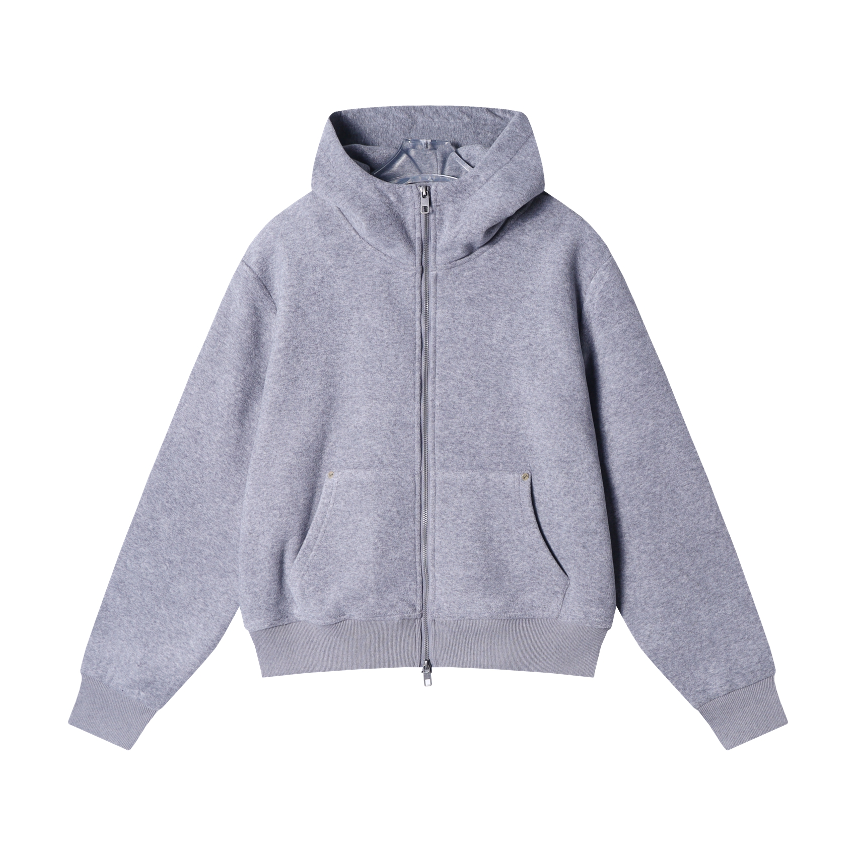 WY613秋冬新款个性纯色绒面立领连帽开衫拉链卫衣百搭休闲外套