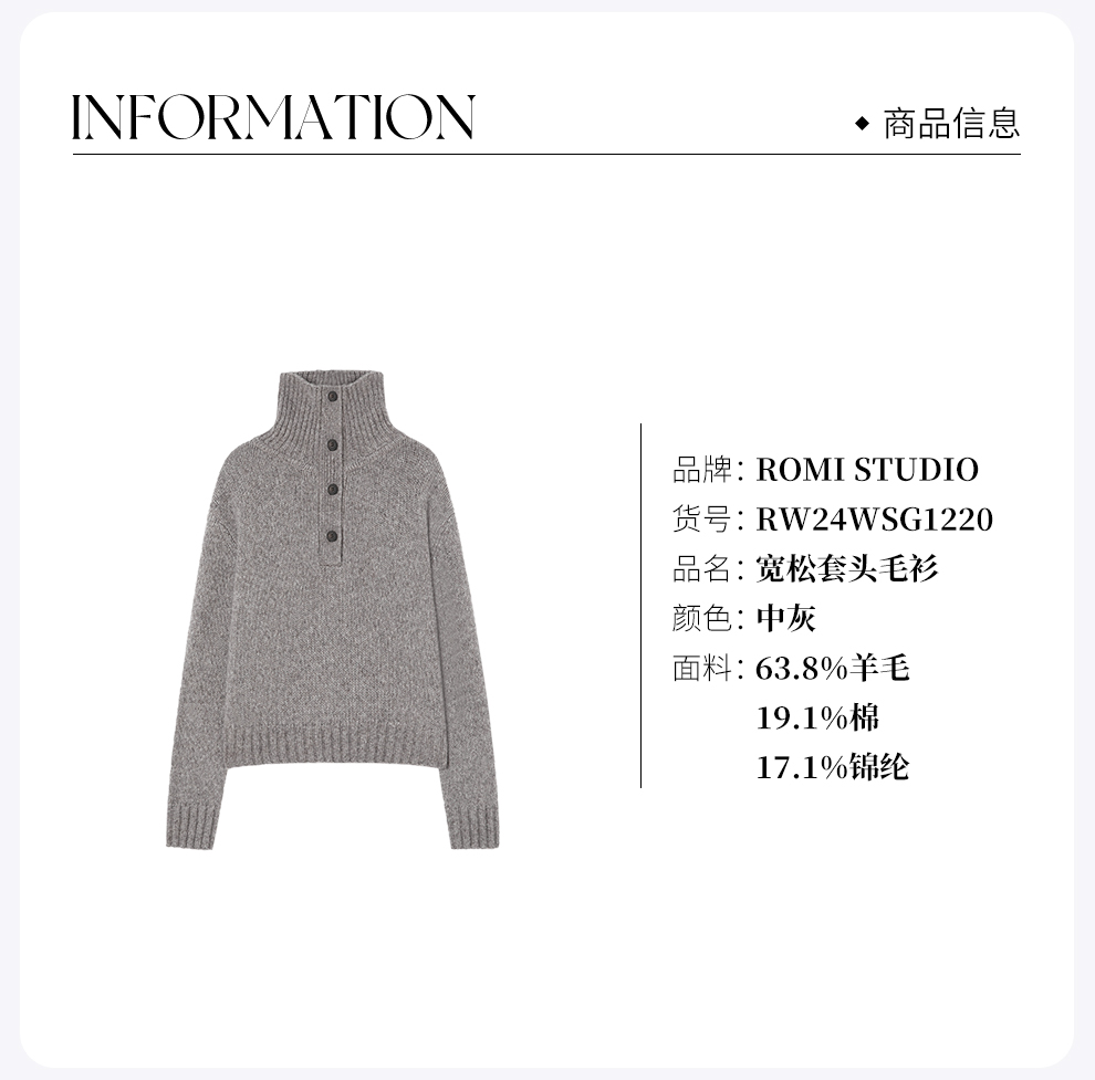 ROMI STUDIO“温暖如初”3针单边 绵羊毛棉混纺高领毛衫RW24WSG1220