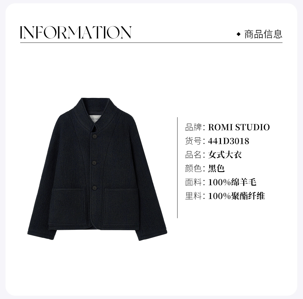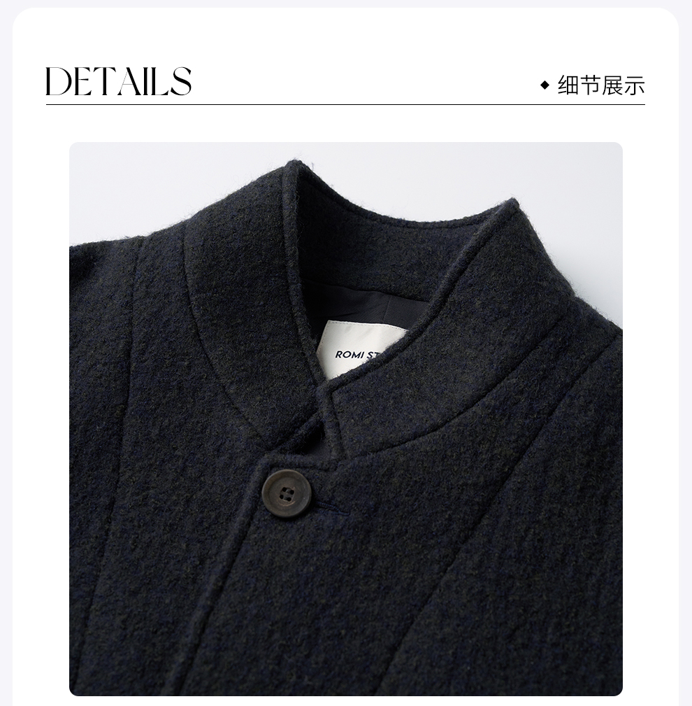 ROMI STUDIO“自我轮廓”*绵羊毛暗纹立领宽松毛呢外套 441D3018