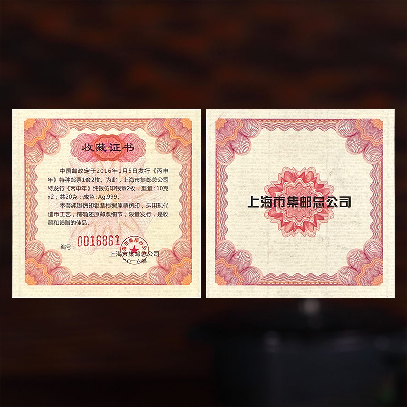 《丙申年》猴年生肖邮票银章2枚套装 含纯银共20克