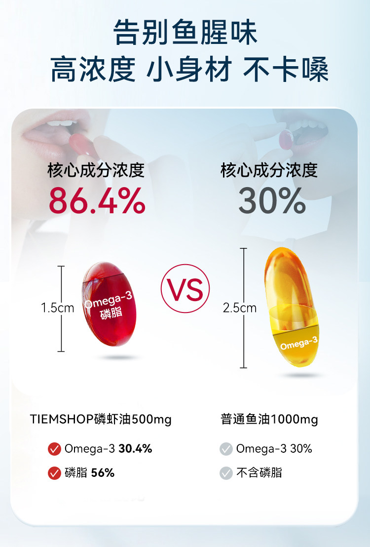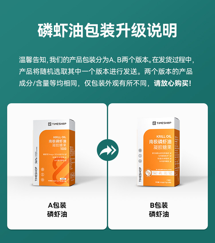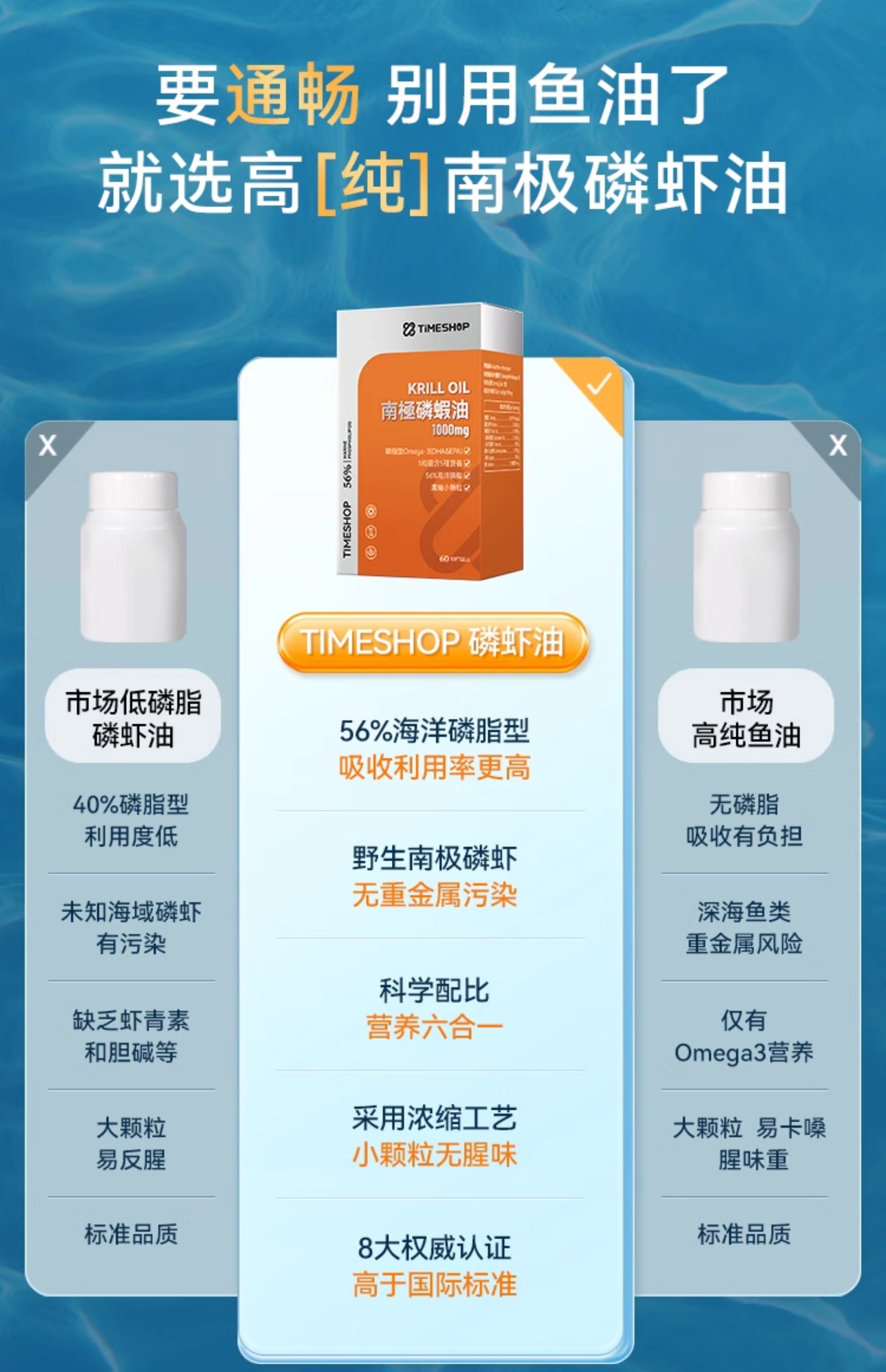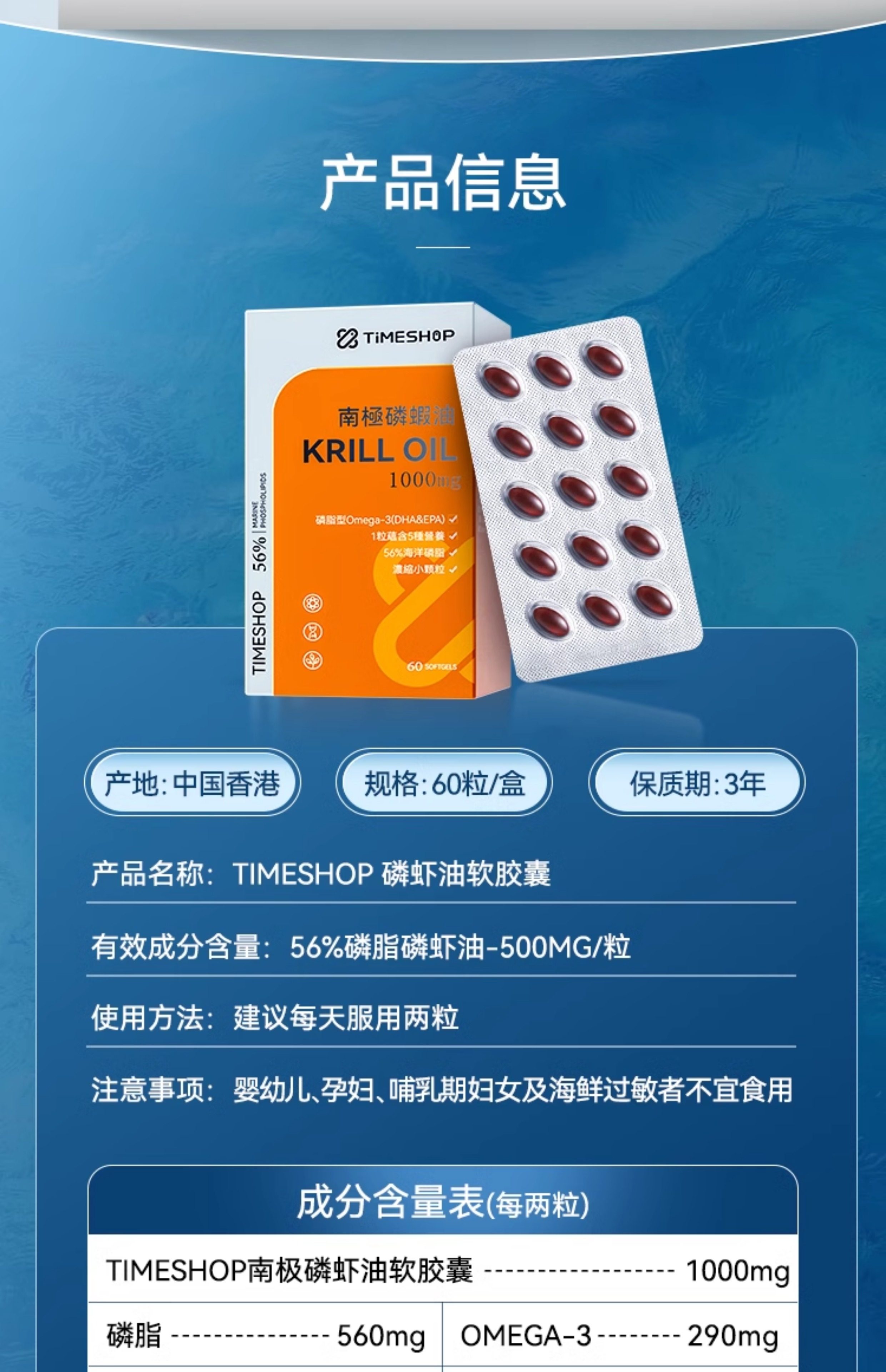 TIMESHOP纯南极磷虾油胶囊56磷脂深海鱼油omega-3