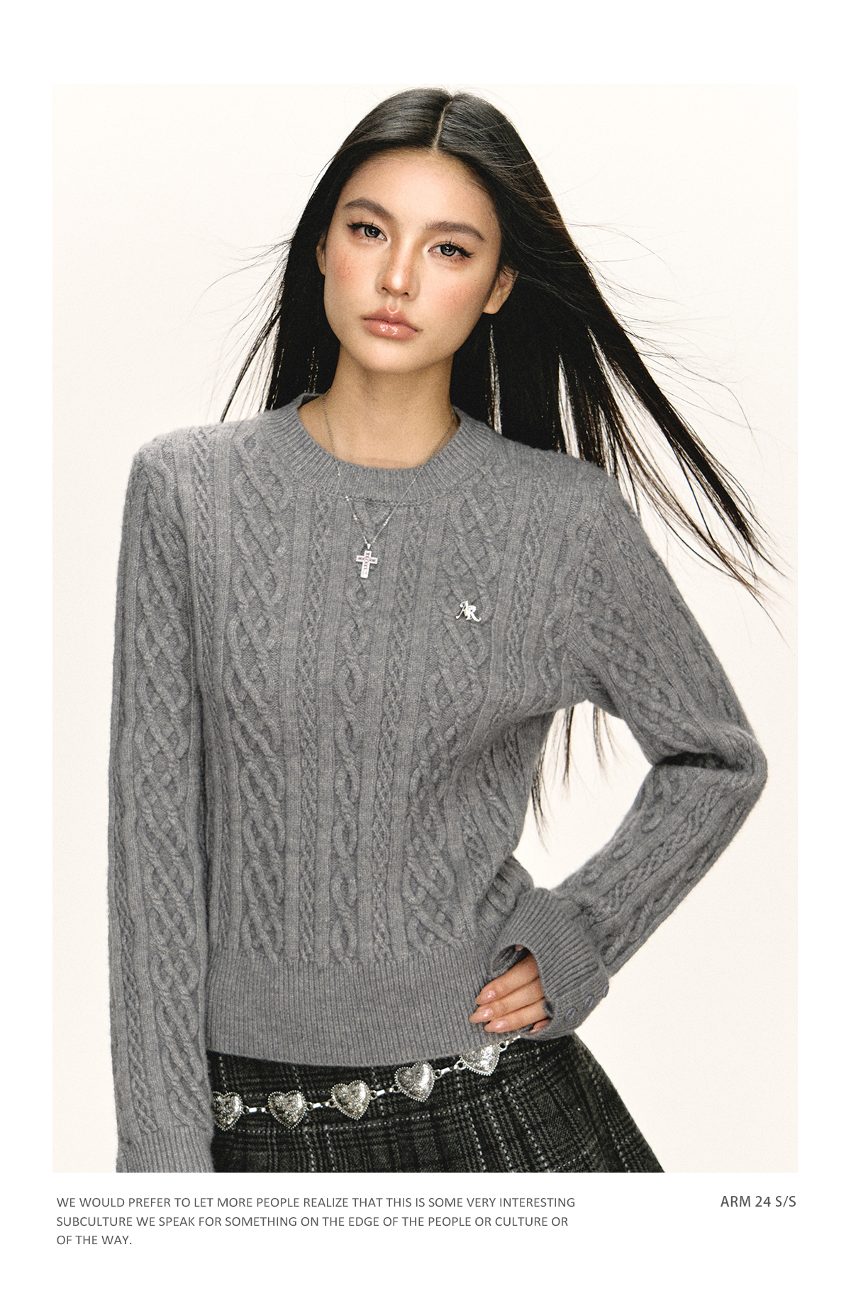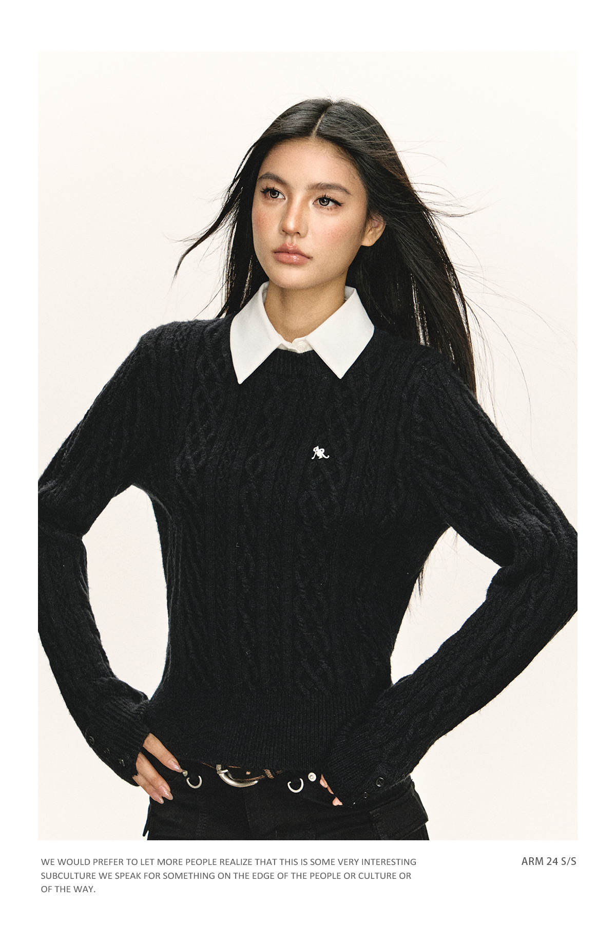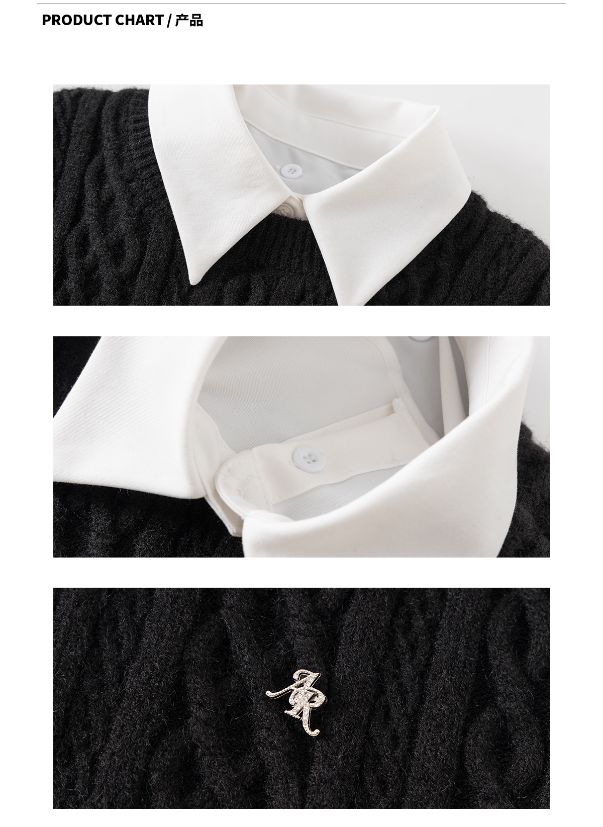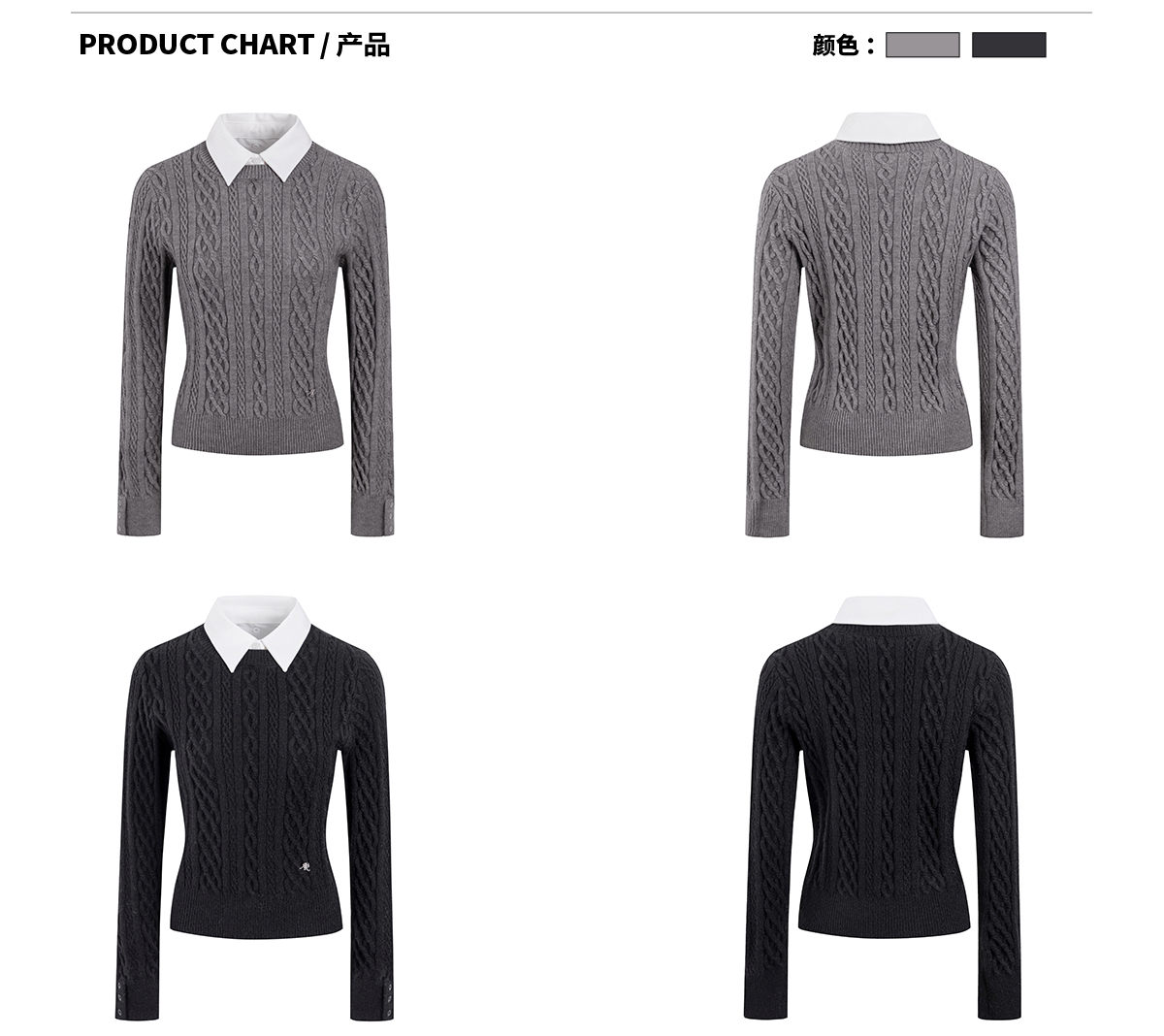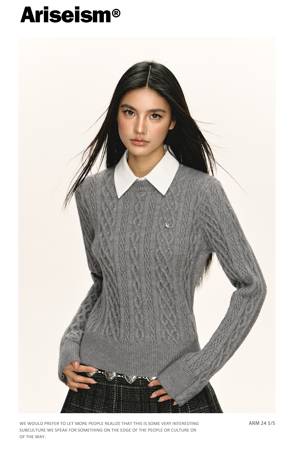 Ariseism 美式复古2色可脱卸领子绞花毛衣女春秋新款上衣