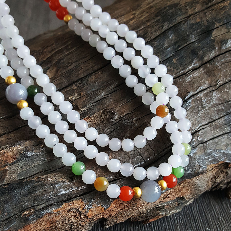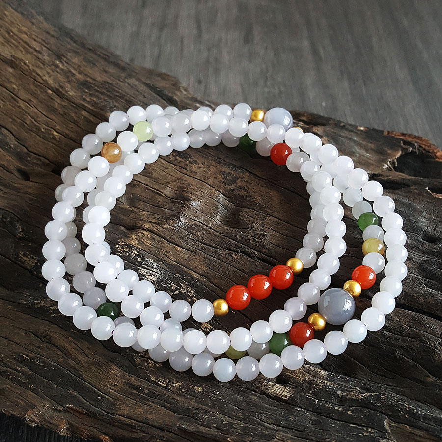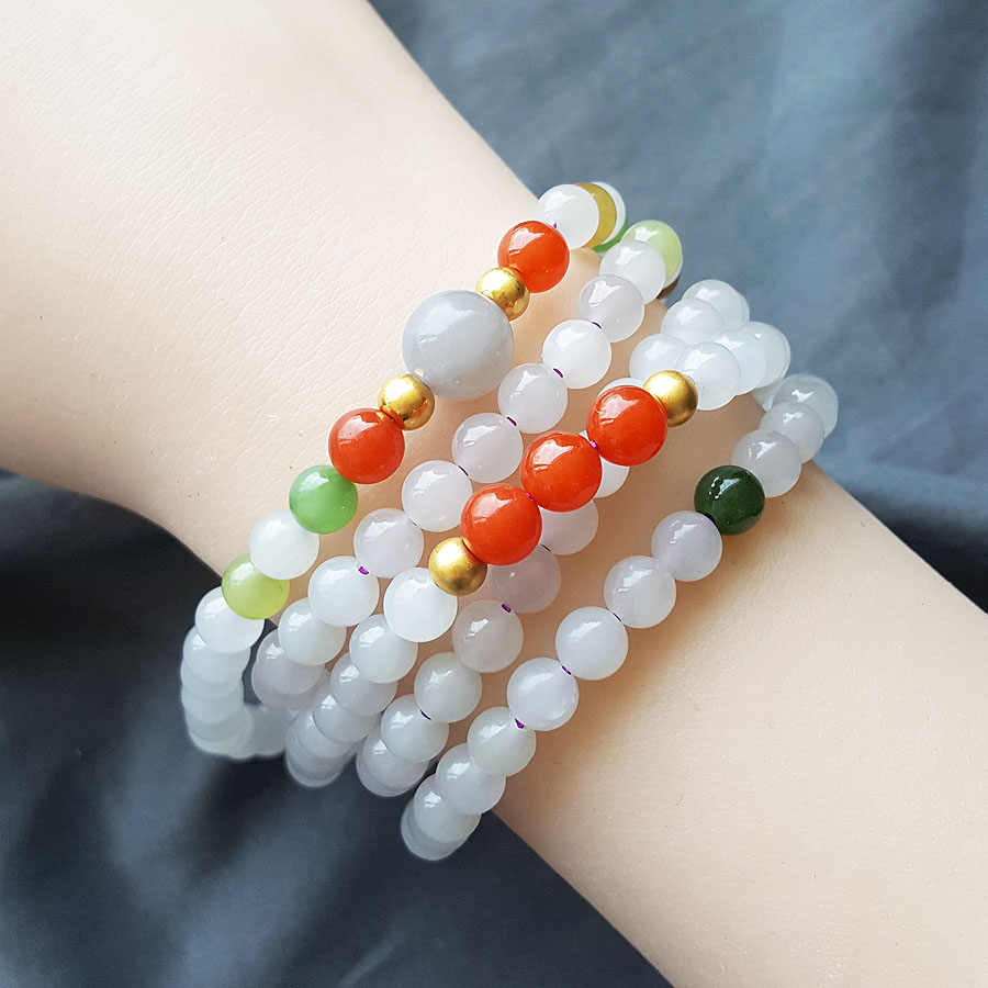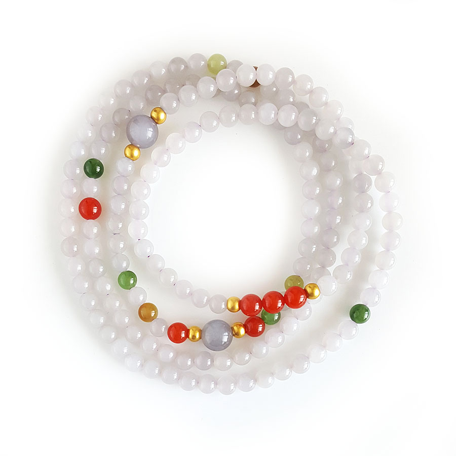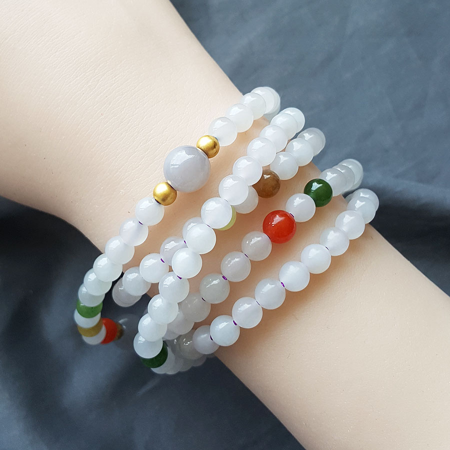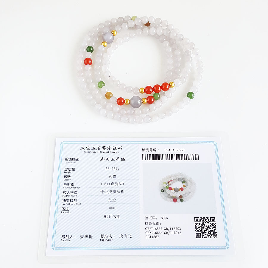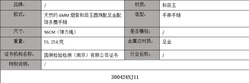 【天然正品】天然约6MM烟紫和田玉圆珠配足金配饰多圈手链300424NJ11