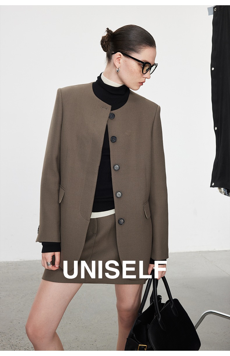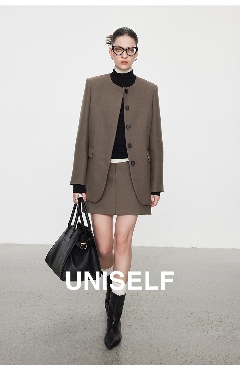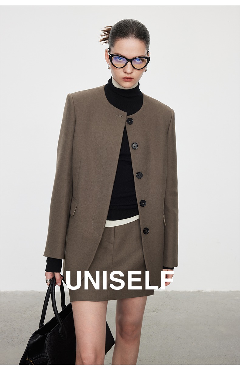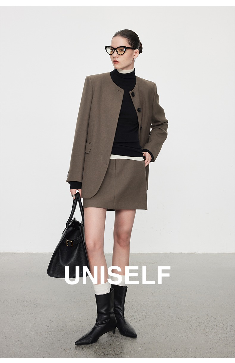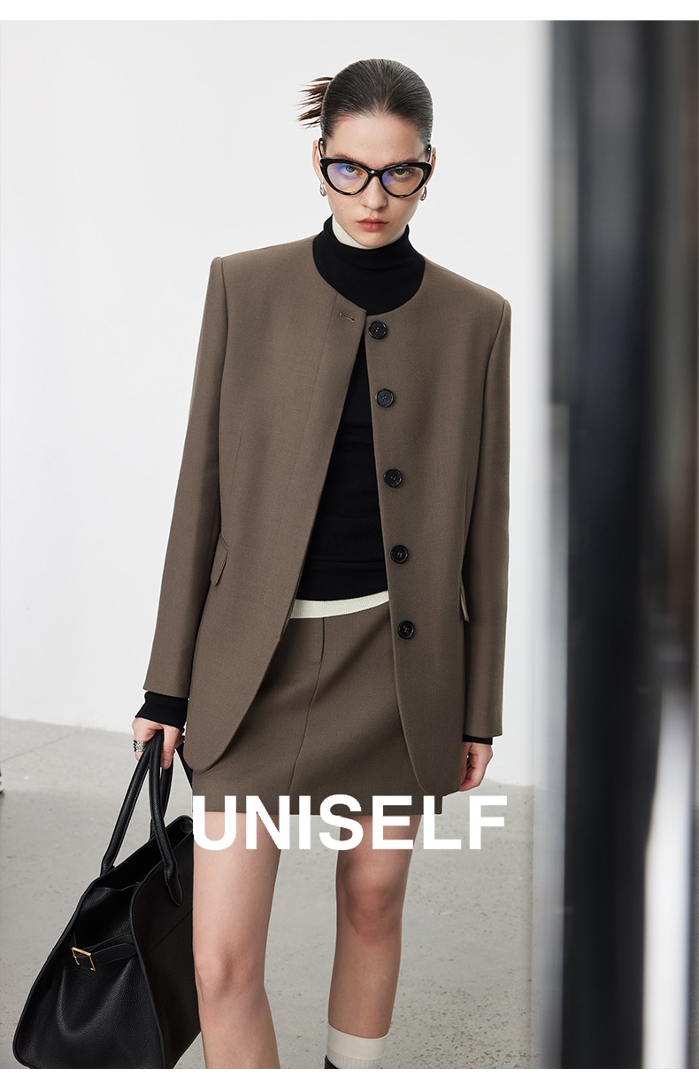 精纺羊毛马吉拉风无领西装女2023秋新款气质时髦半裙套装