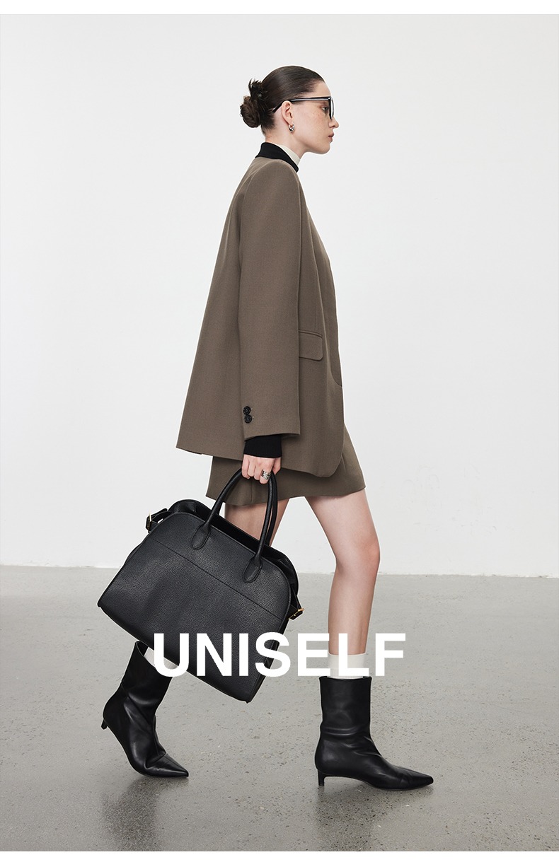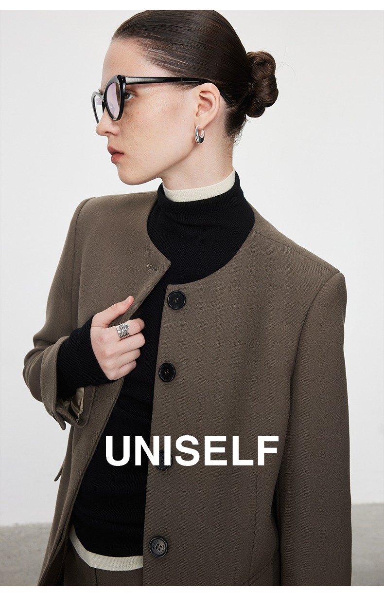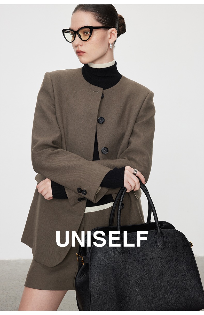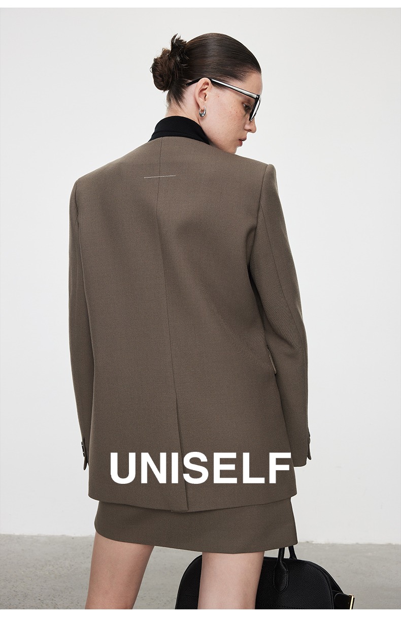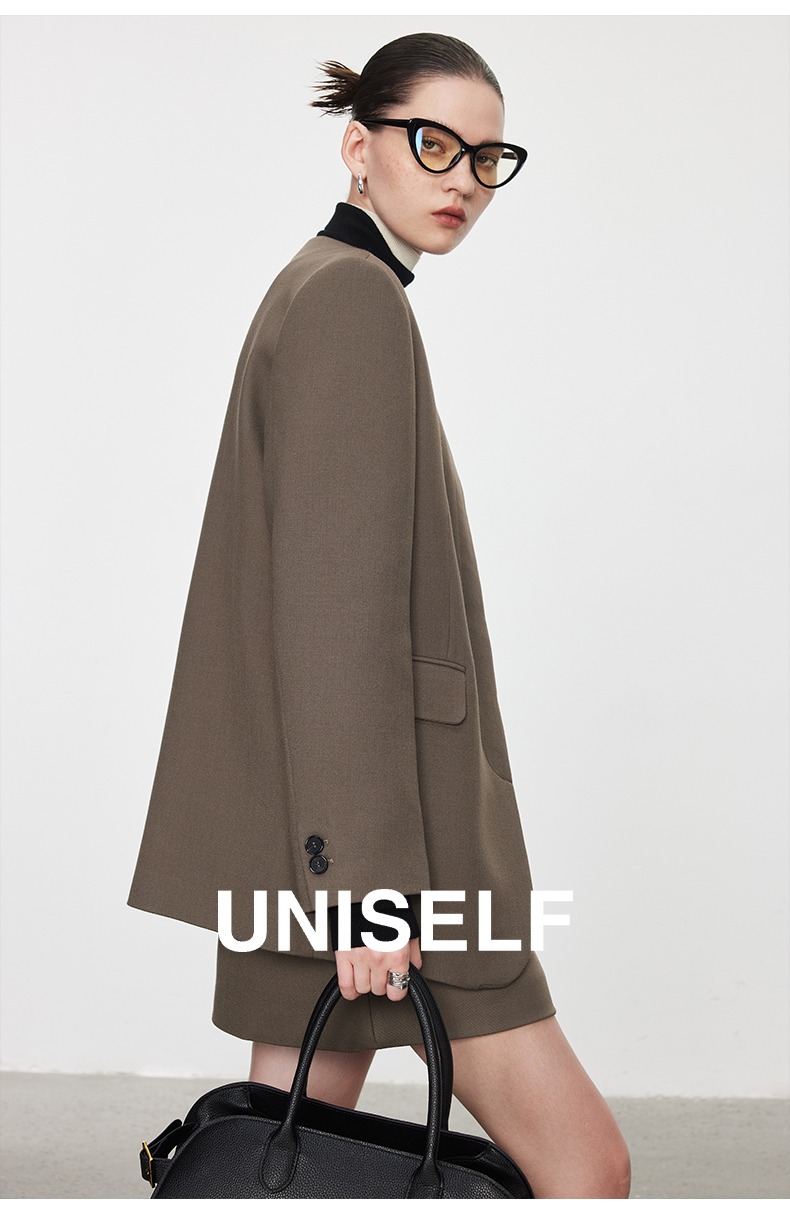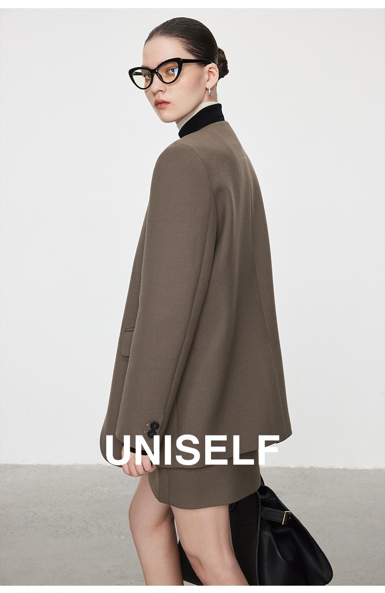 精纺羊毛马吉拉风无领西装女2023秋新款气质时髦半裙套装