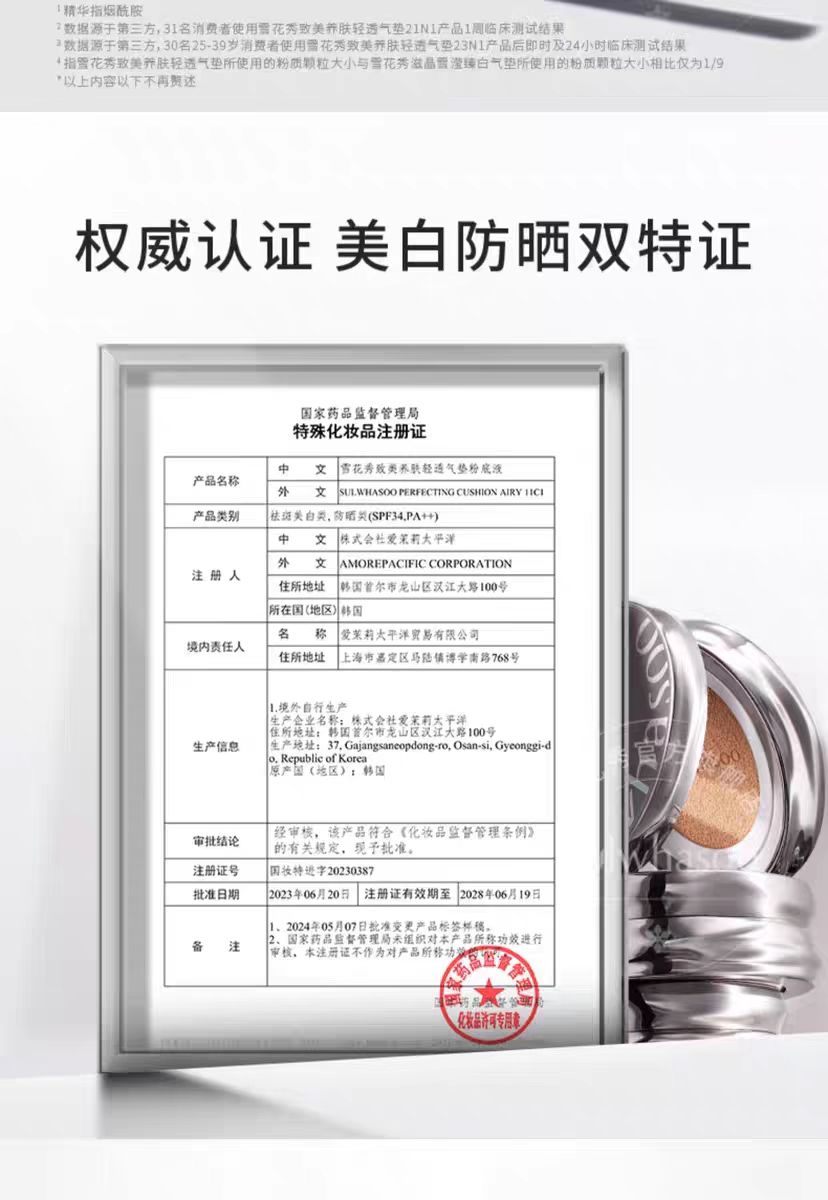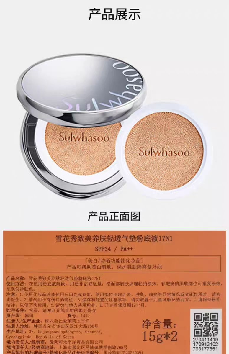 【航免仓】SULWHASOO/雪花秀致美养肤气垫粉底液 21#17#(镜面水光气垫)