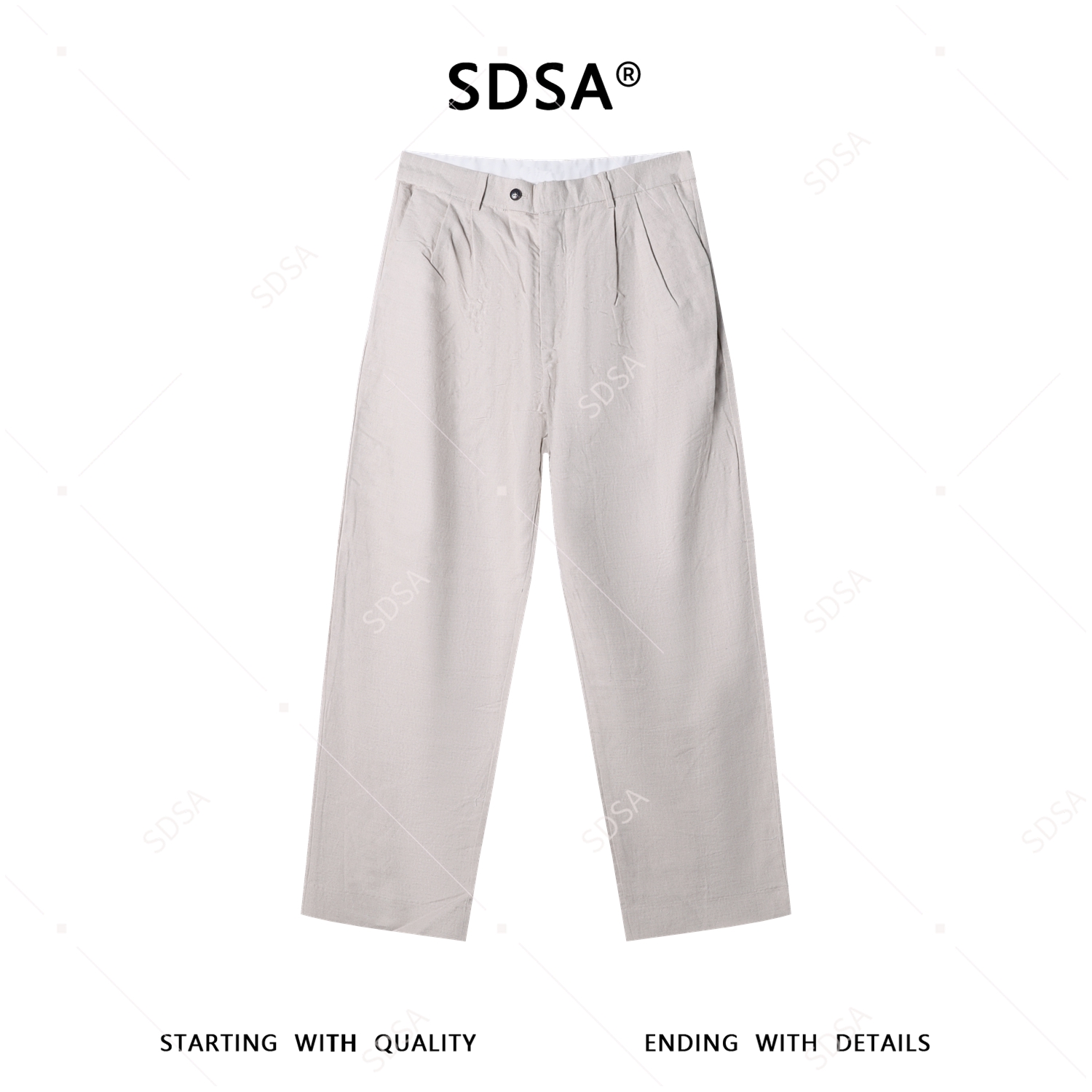 SDSA男装2026新款高贵轻奢简约纯色老钱麻棉褶皱休闲裤百搭时尚