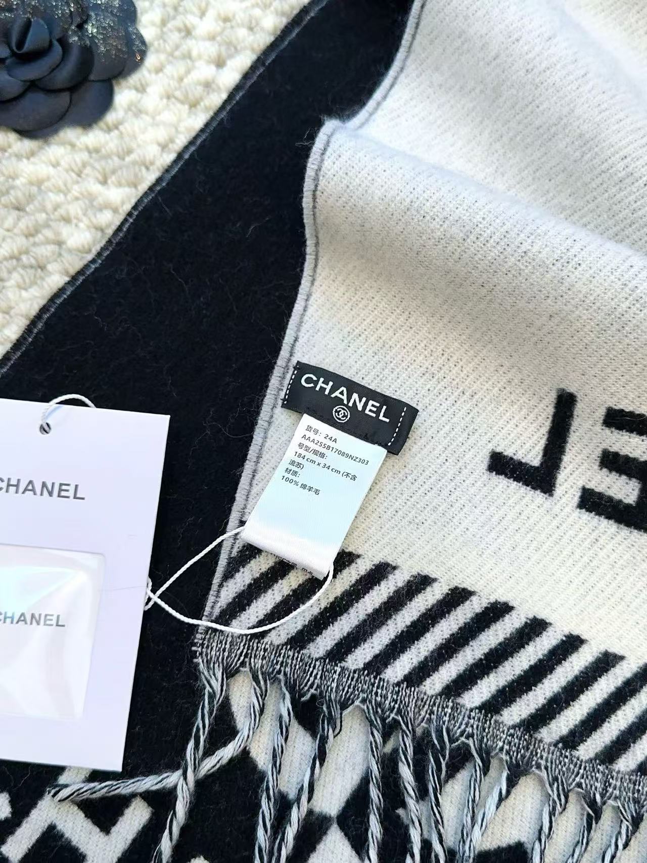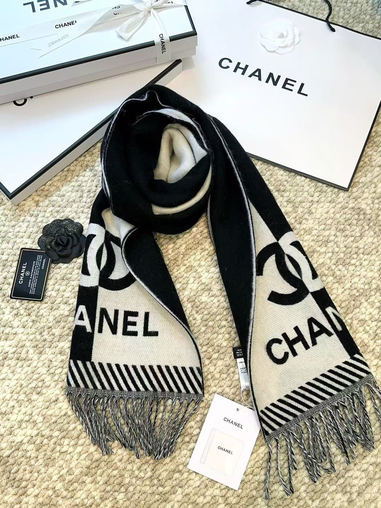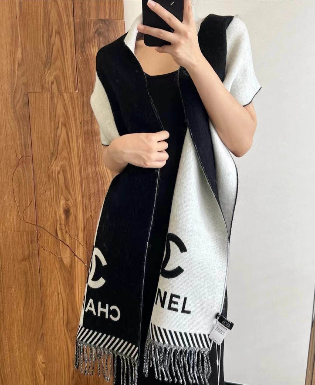 目测是大爆款!双面异色提花 两面完全相反的颜色及图案 设计真的非常走心 ,超大品牌LOGO与双C拼色点缀整条围巾 高级美‼️面料巨流弊。100% 美丽奴初剪羊毛,作为羊毛界的天花板,半点不扎,温柔有质感‼️男生女士都可以入 百搭不挑人 必须自留😁