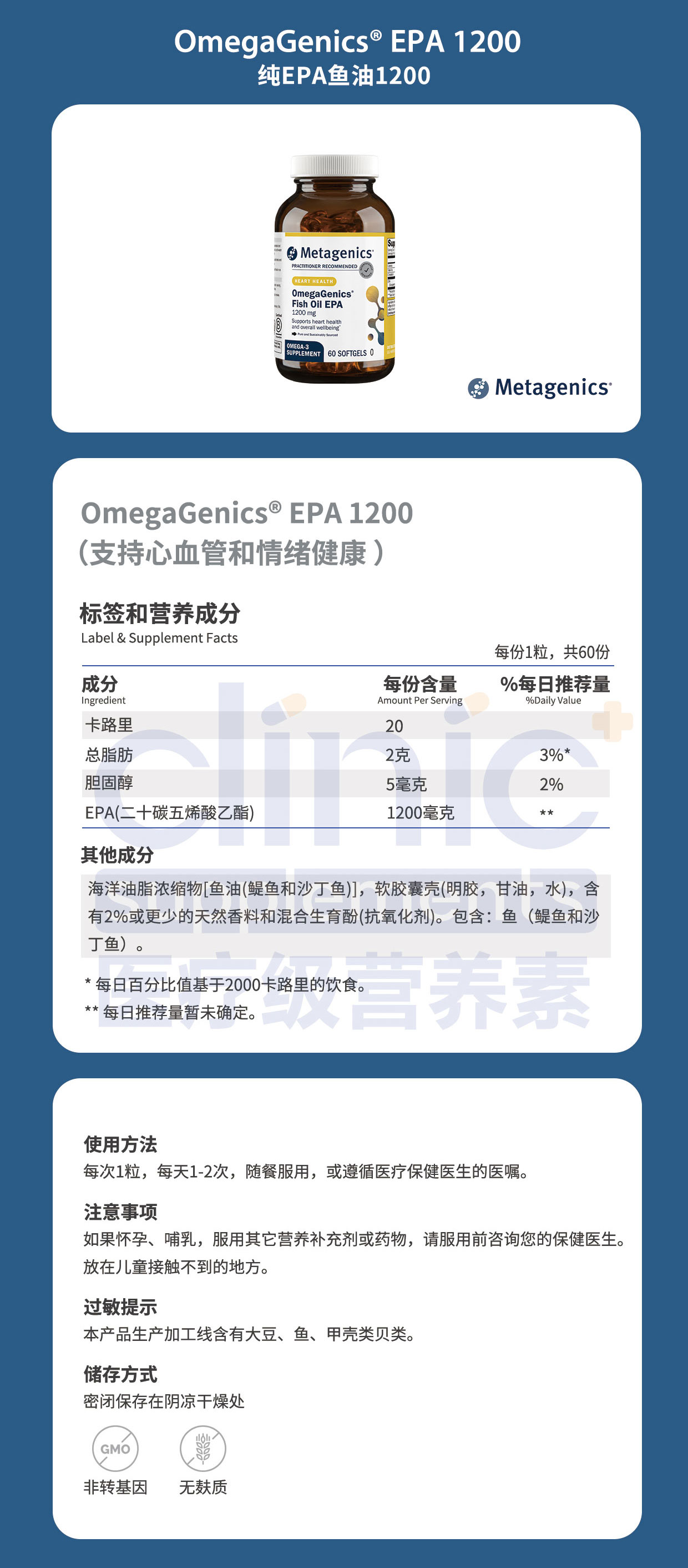Metagenics OmegaGenics® Fish Oil EPA 1200 mg 60粒 OmegaGenics® EPA 1200 60粒新旧包装随机