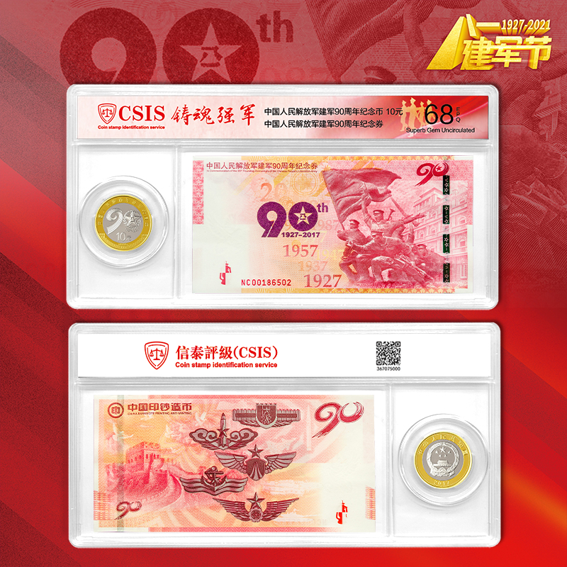【铸魂强军】中国人民解放军建军90周年一币一券封装套装