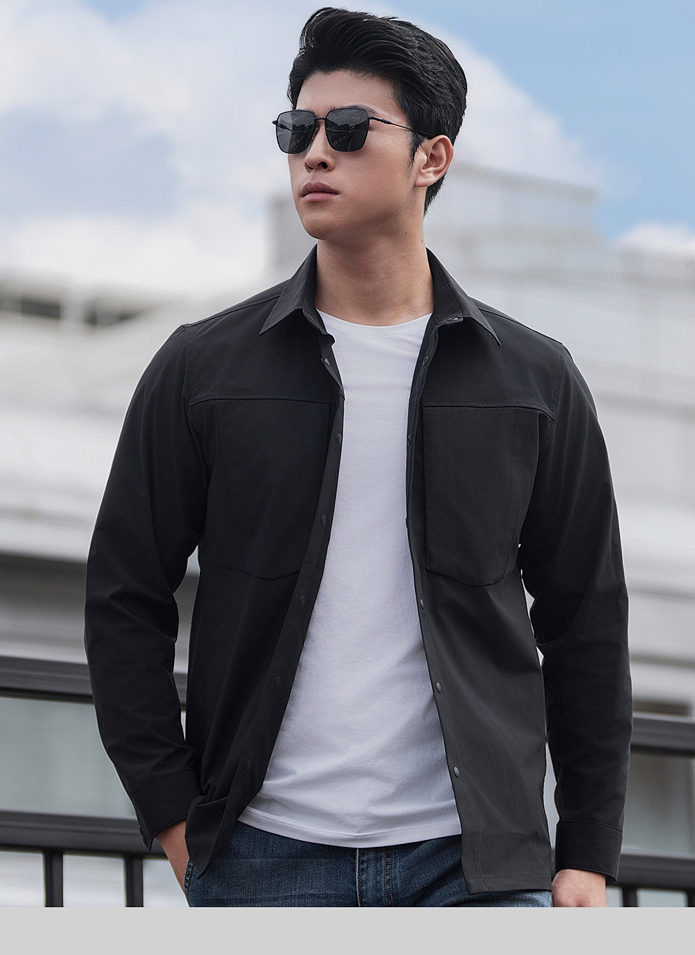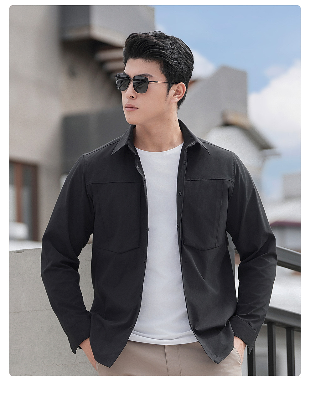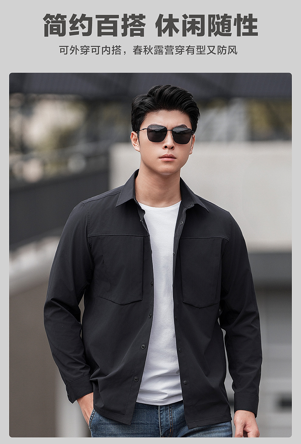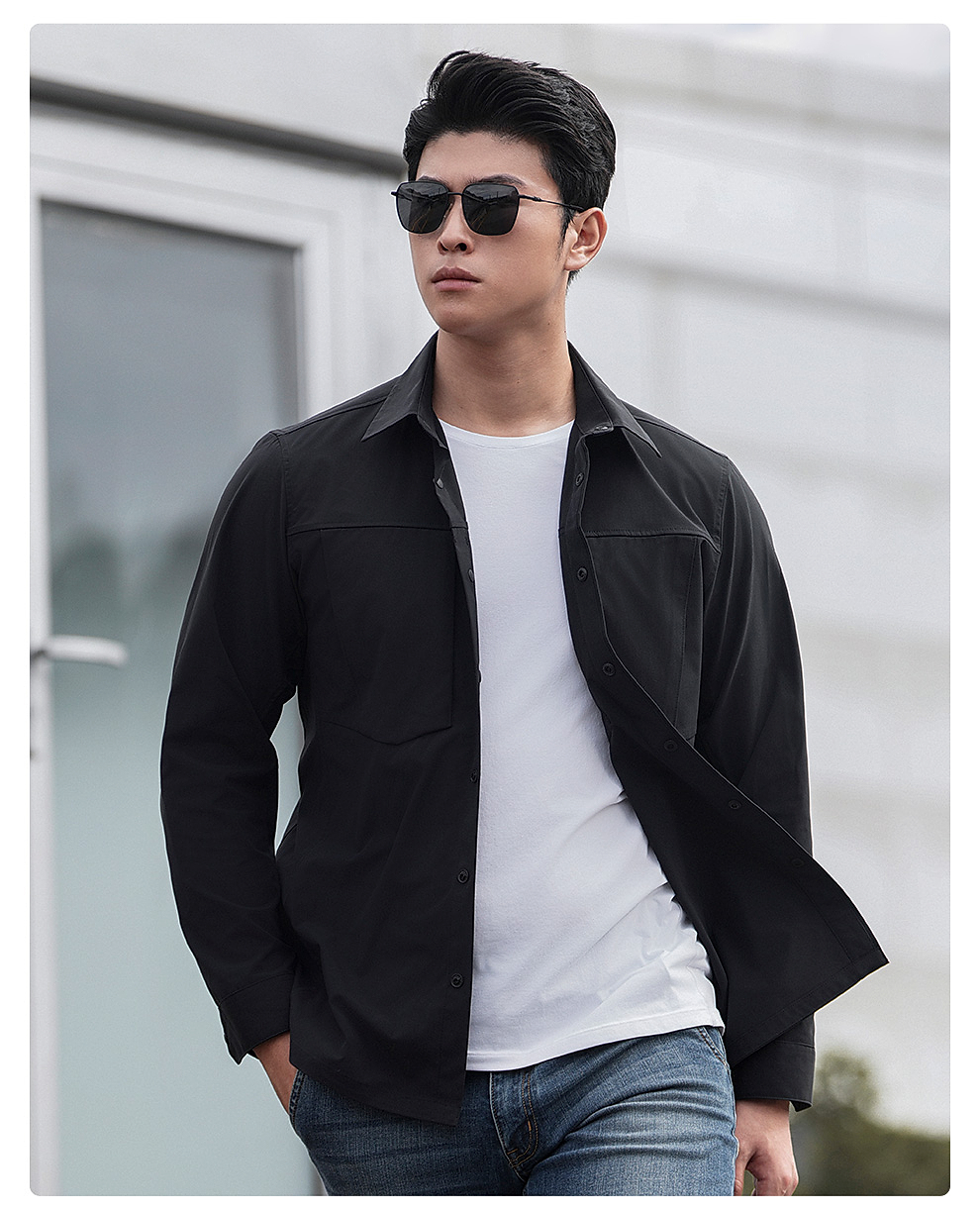 隐之秋枫休闲长袖衬衫男士通勤休闲衬衣商务上衣春秋外套男