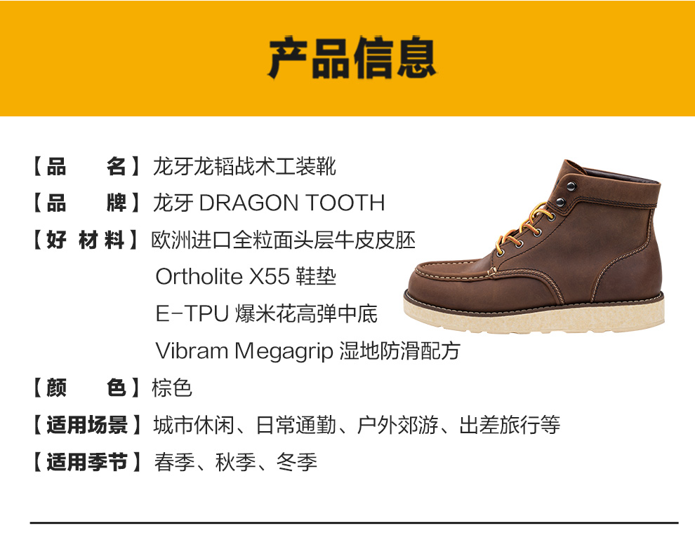 龙韬战术工装靴休闲男经典复古百搭户外马丁靴黄靴潮流男鞋