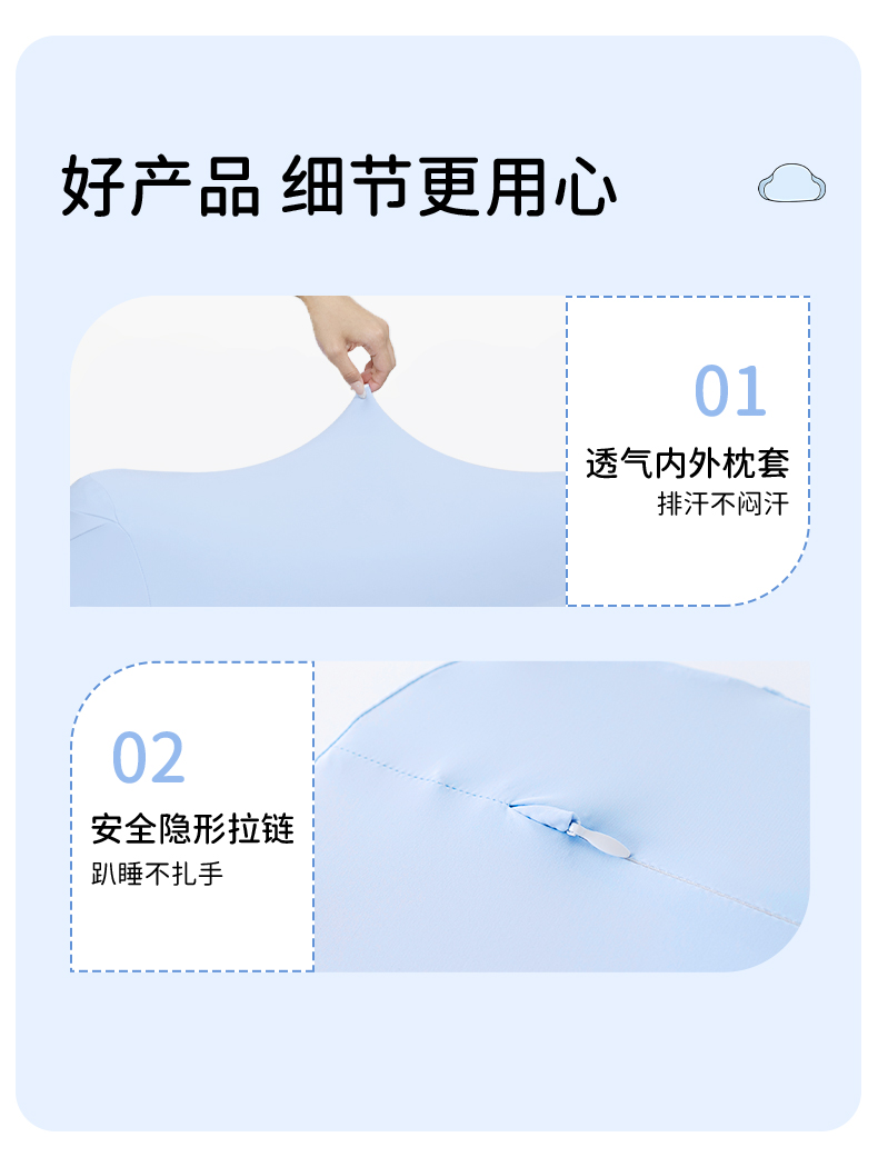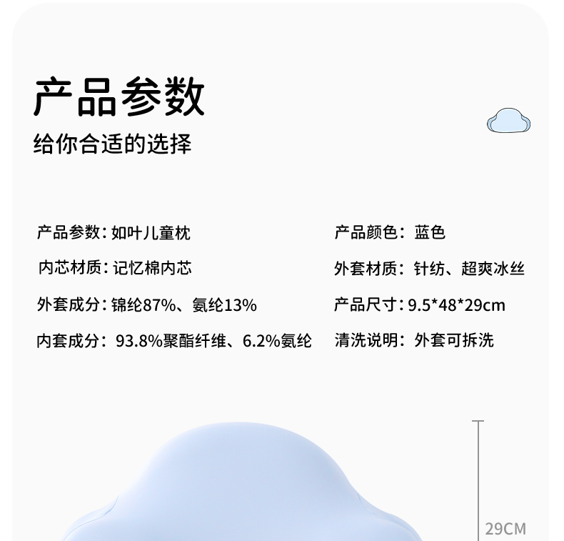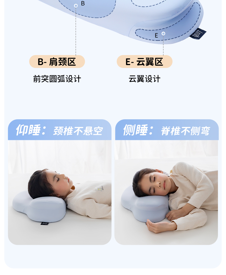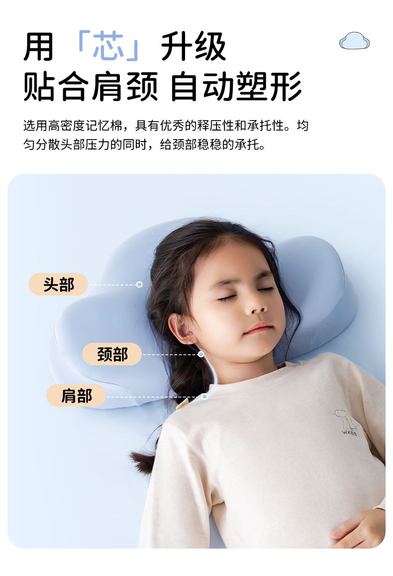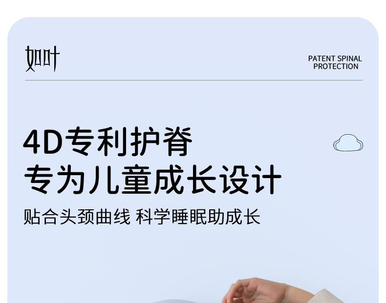 【如叶 · 云朵枕】如叶儿童云朵枕头分区护脊成长3-6-12岁透气亲肤抗菌除螨宝宝枕头