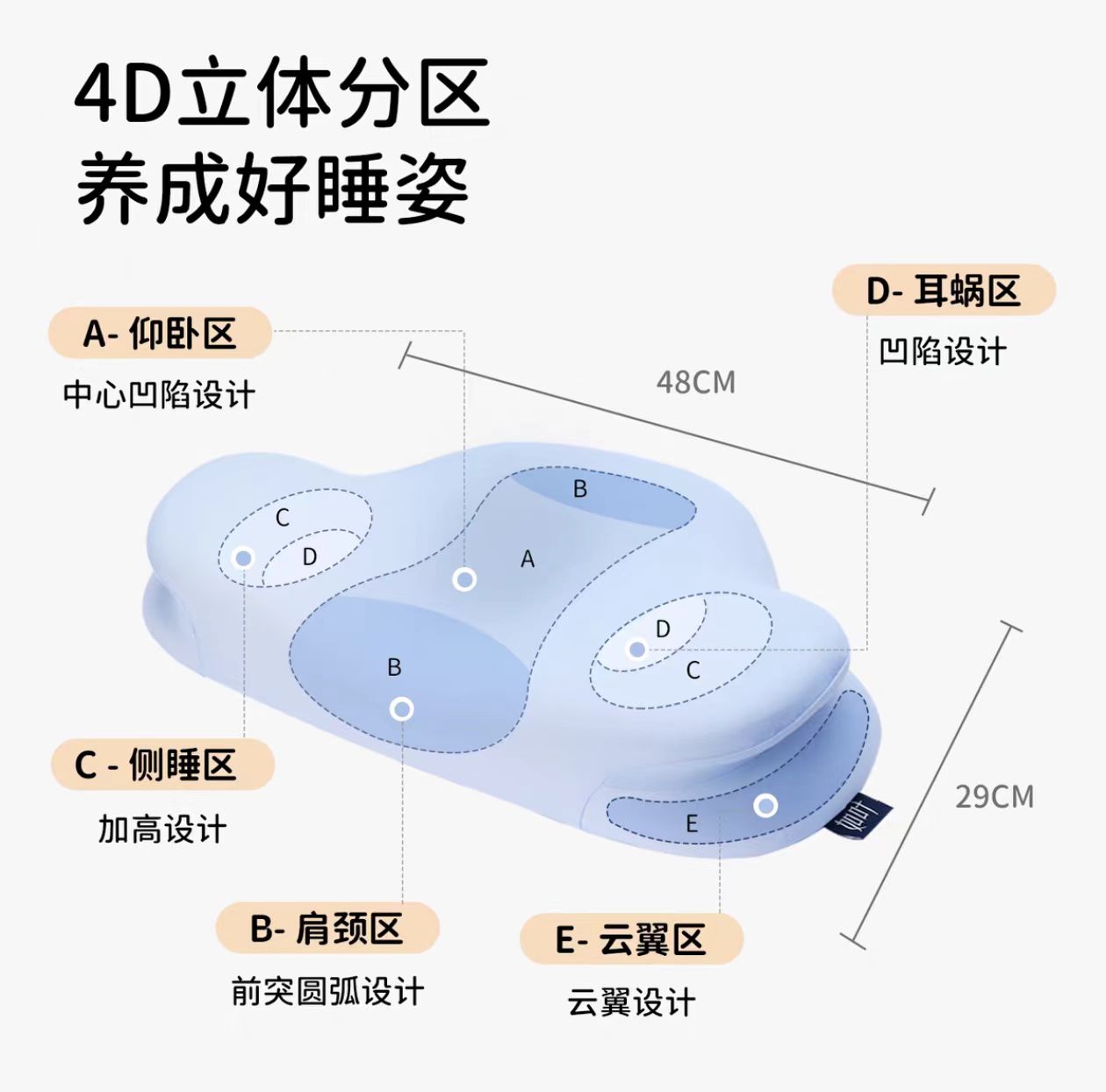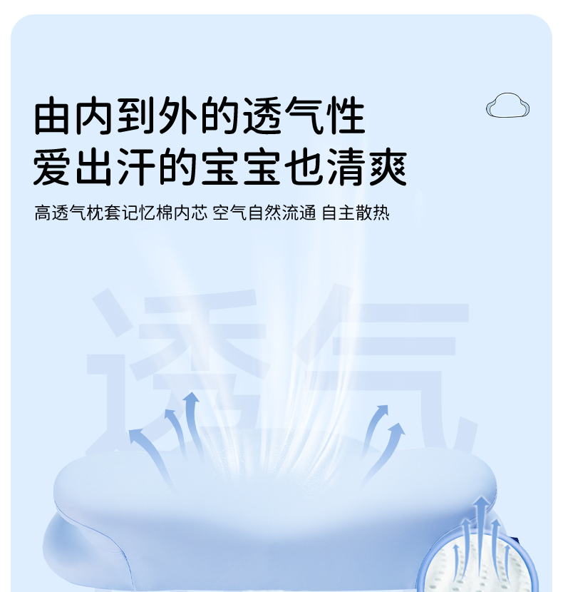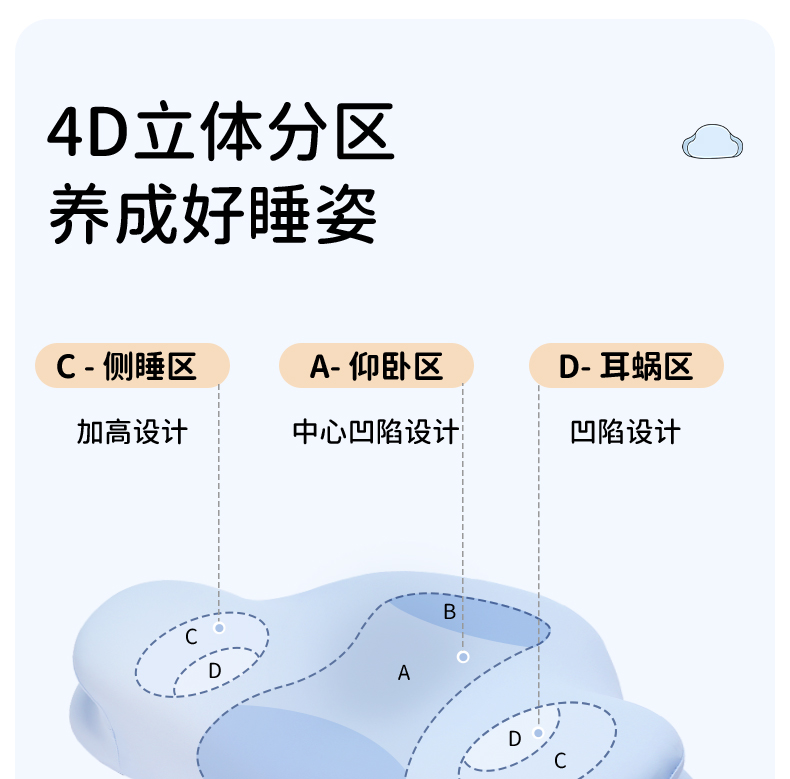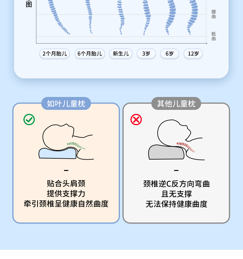 【如叶 · 云朵枕】如叶儿童云朵枕头分区护脊成长3-6-12岁透气亲肤抗菌除螨宝宝枕头