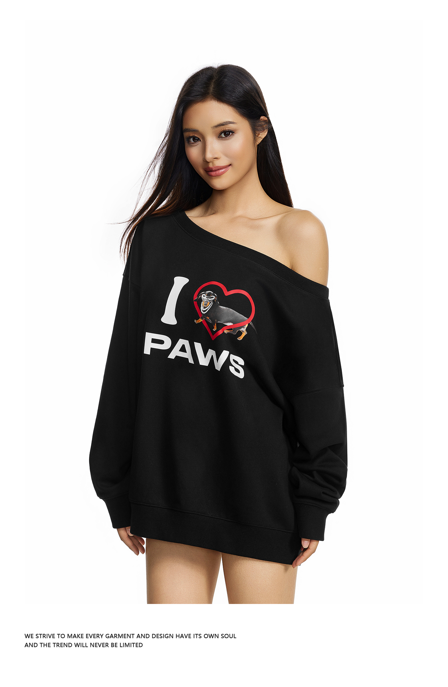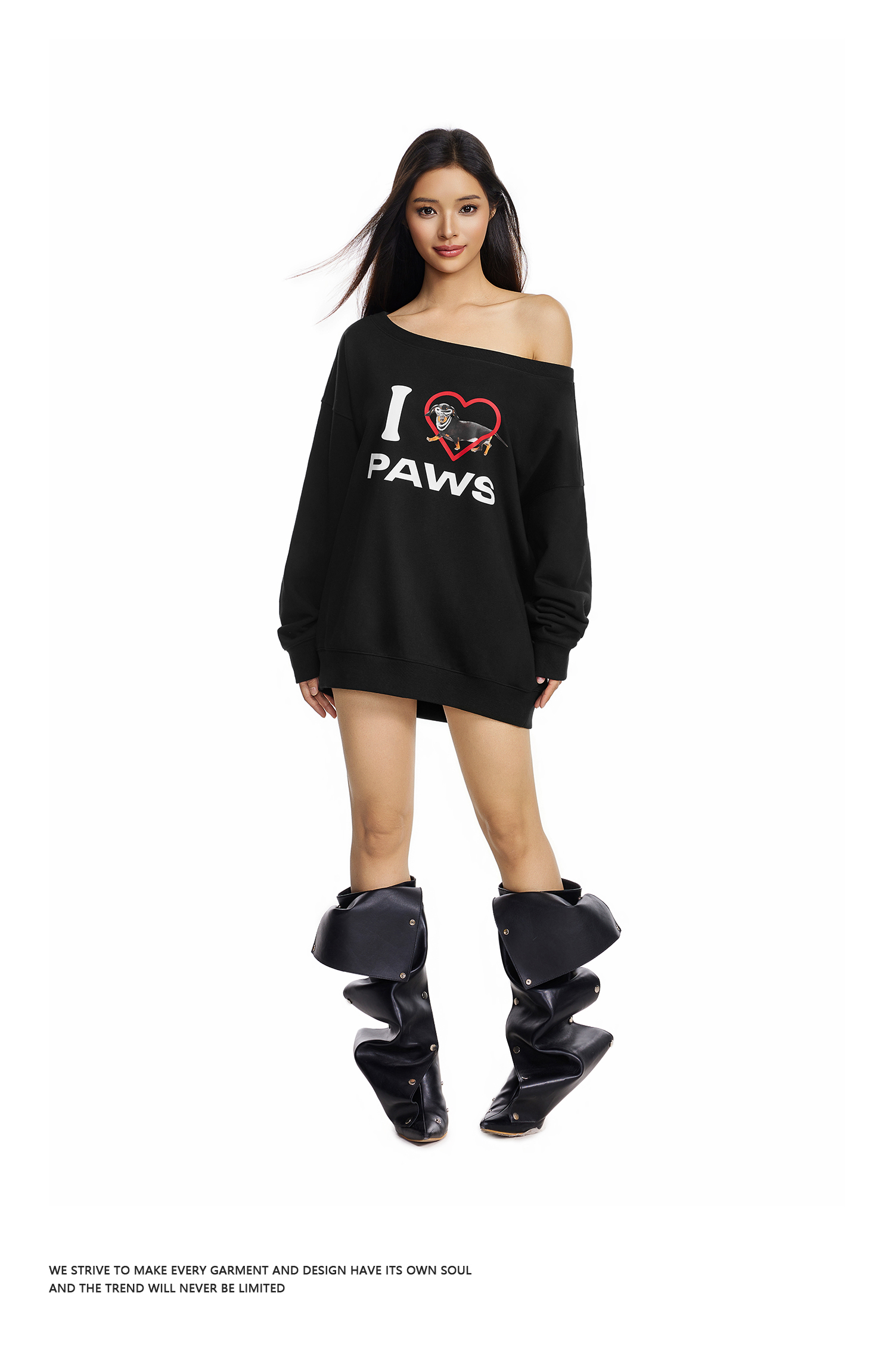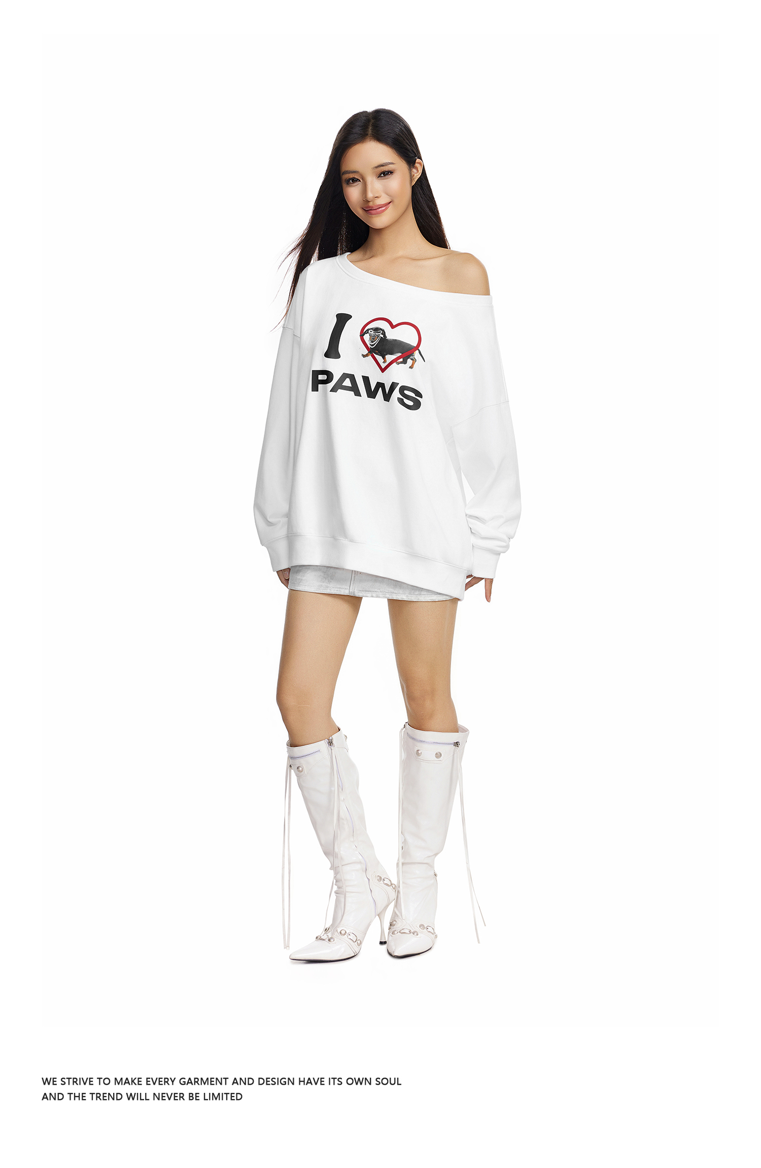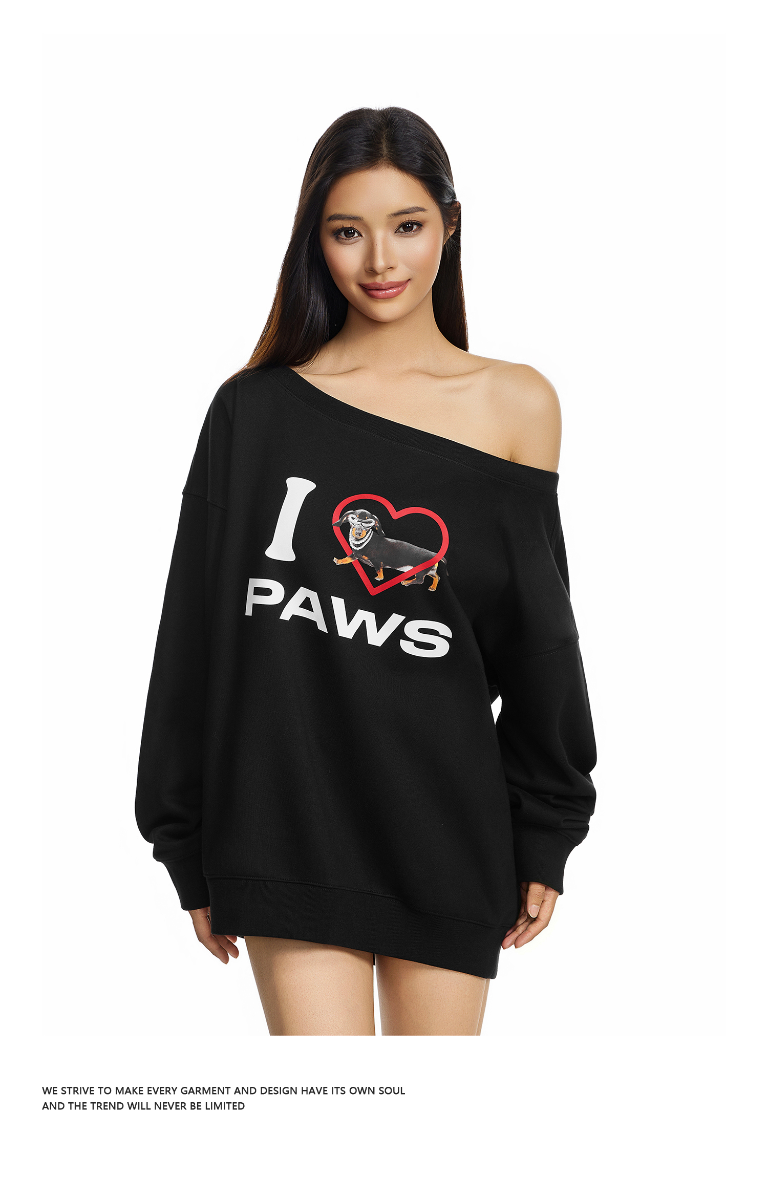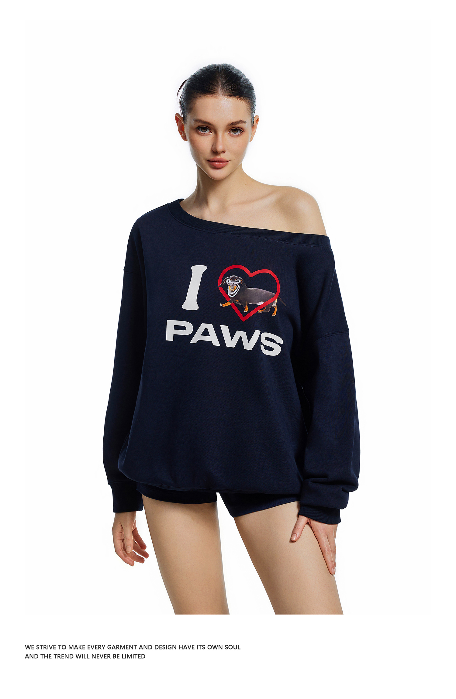 FDR官方店 “我爱狗狗”斜肩卫衣女秋季保暖运动一字肩长袖上衣