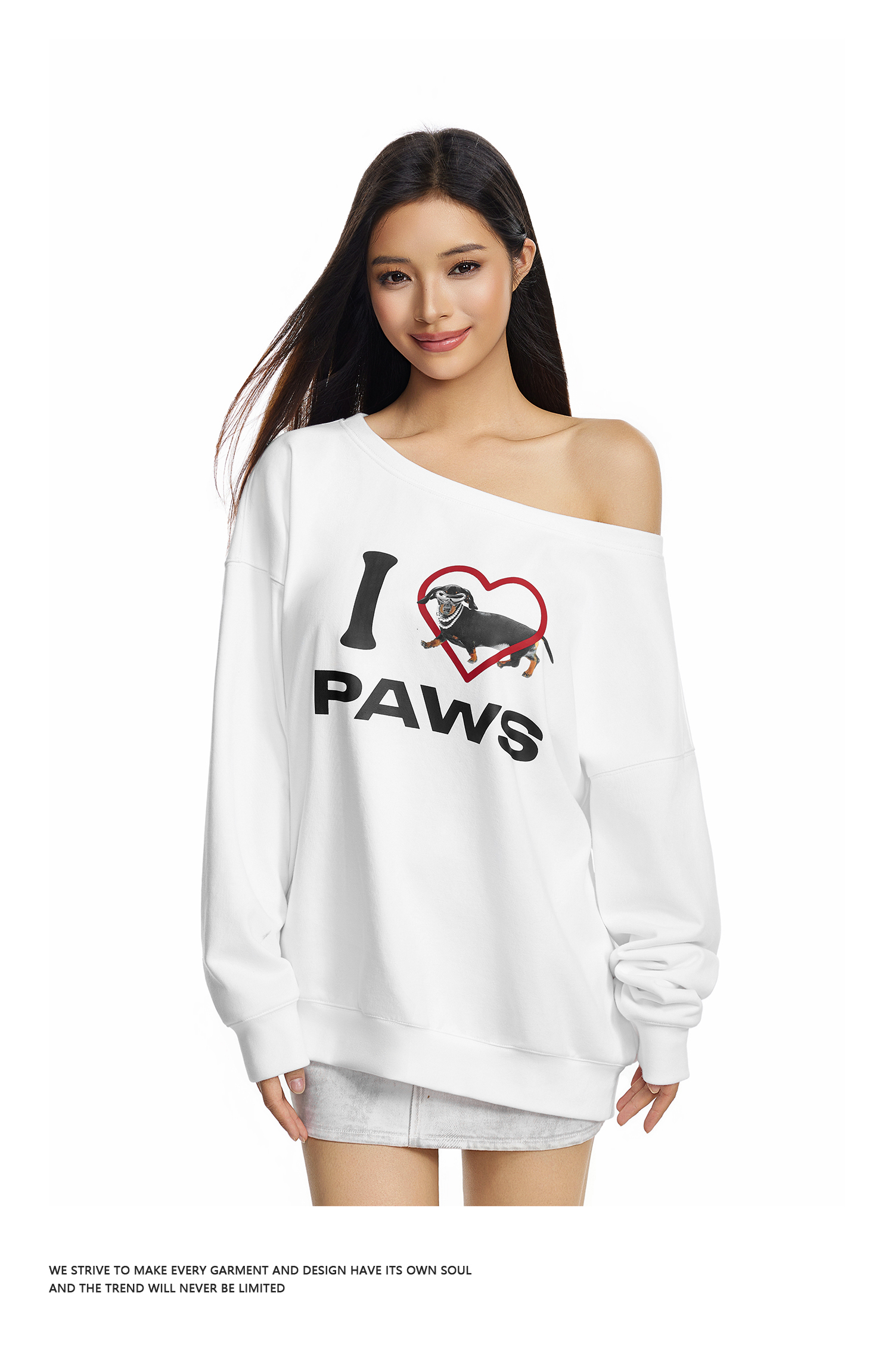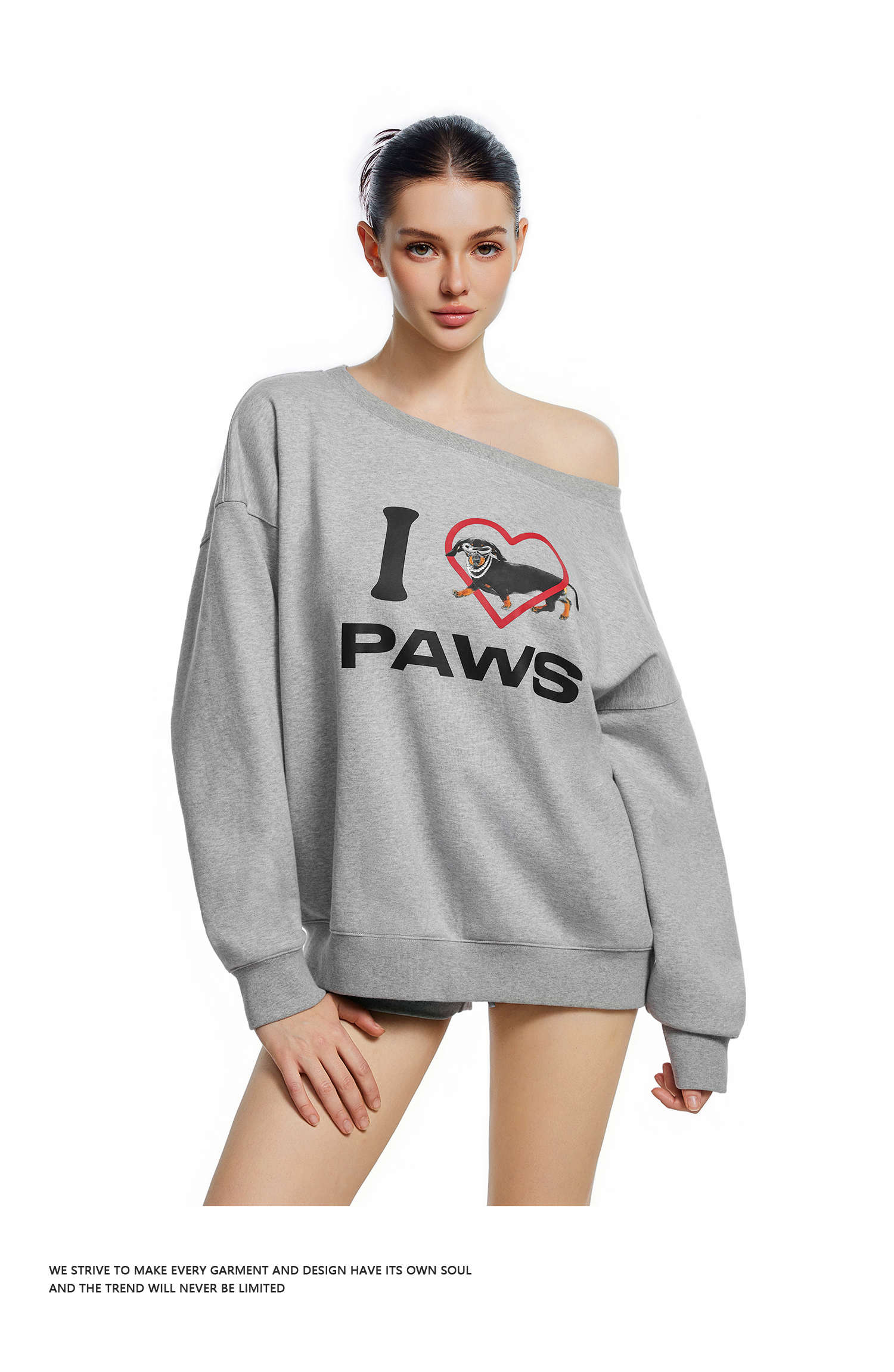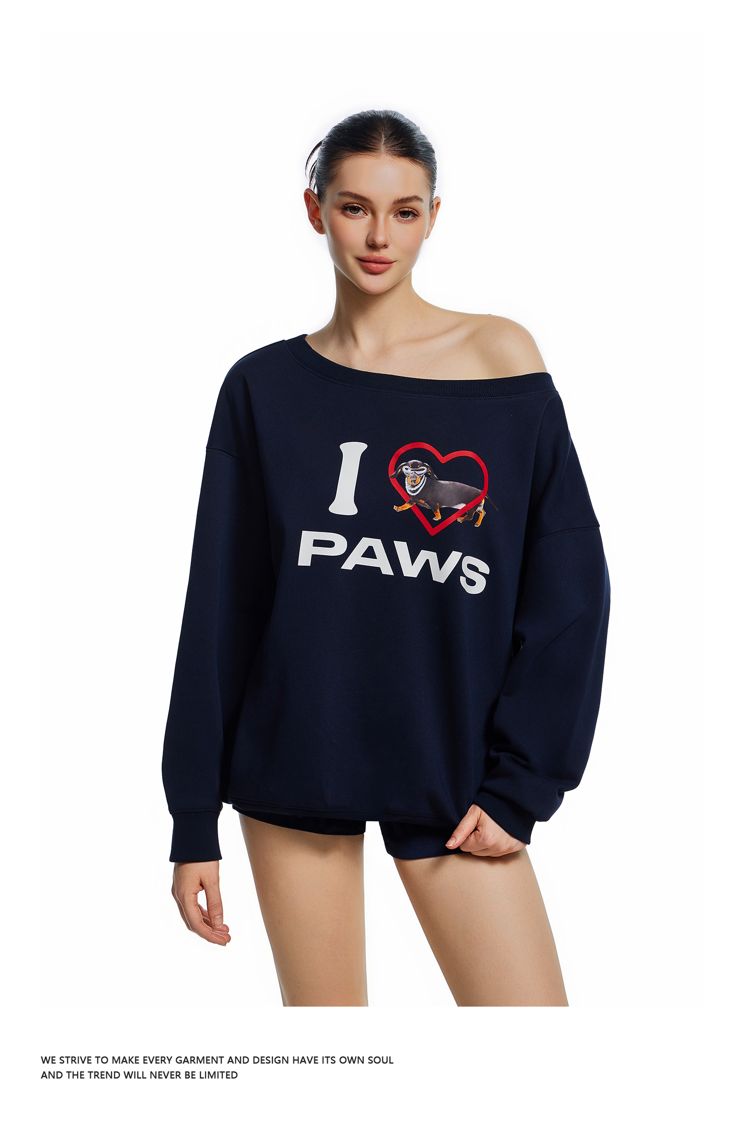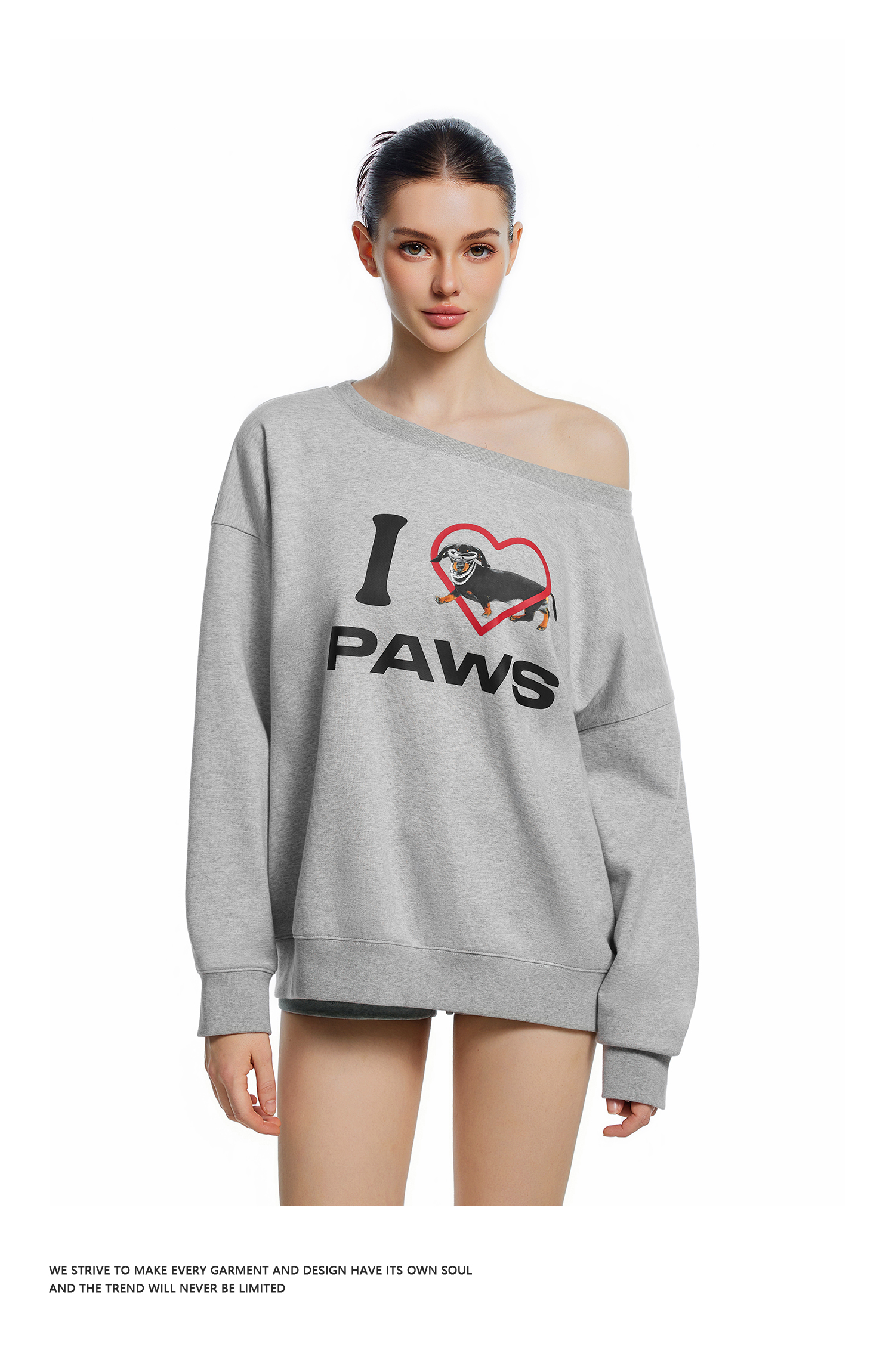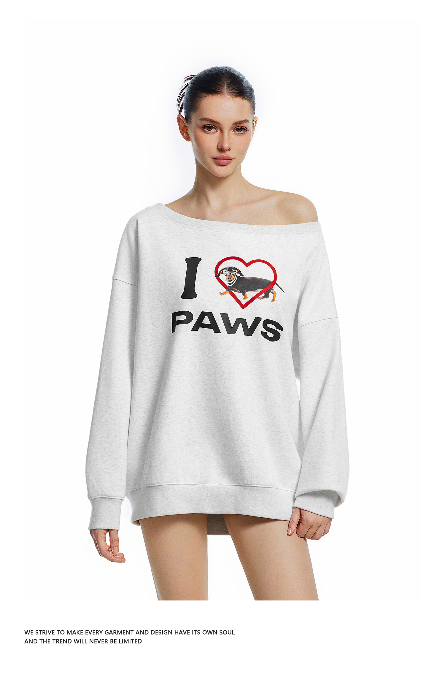 FDR官方店 “我爱狗狗”斜肩卫衣女秋季保暖运动一字肩长袖上衣
