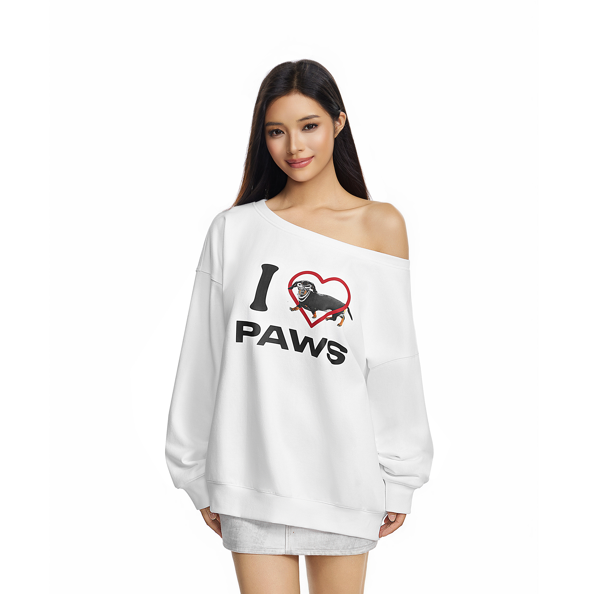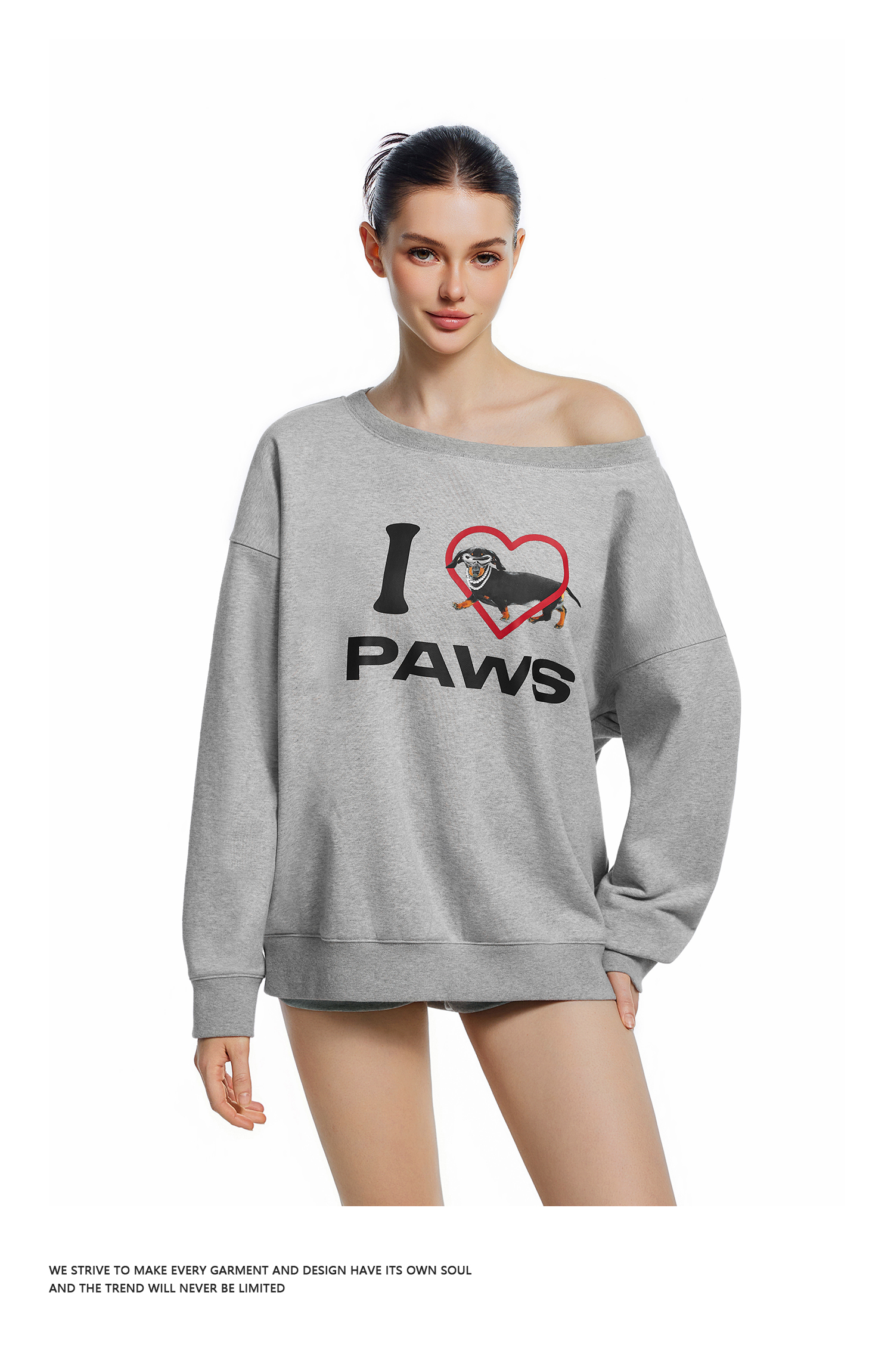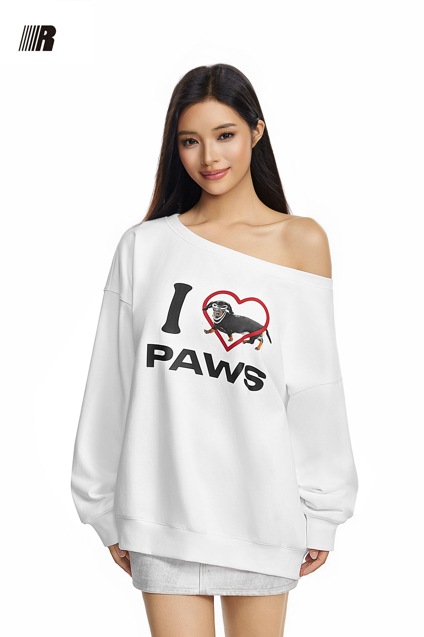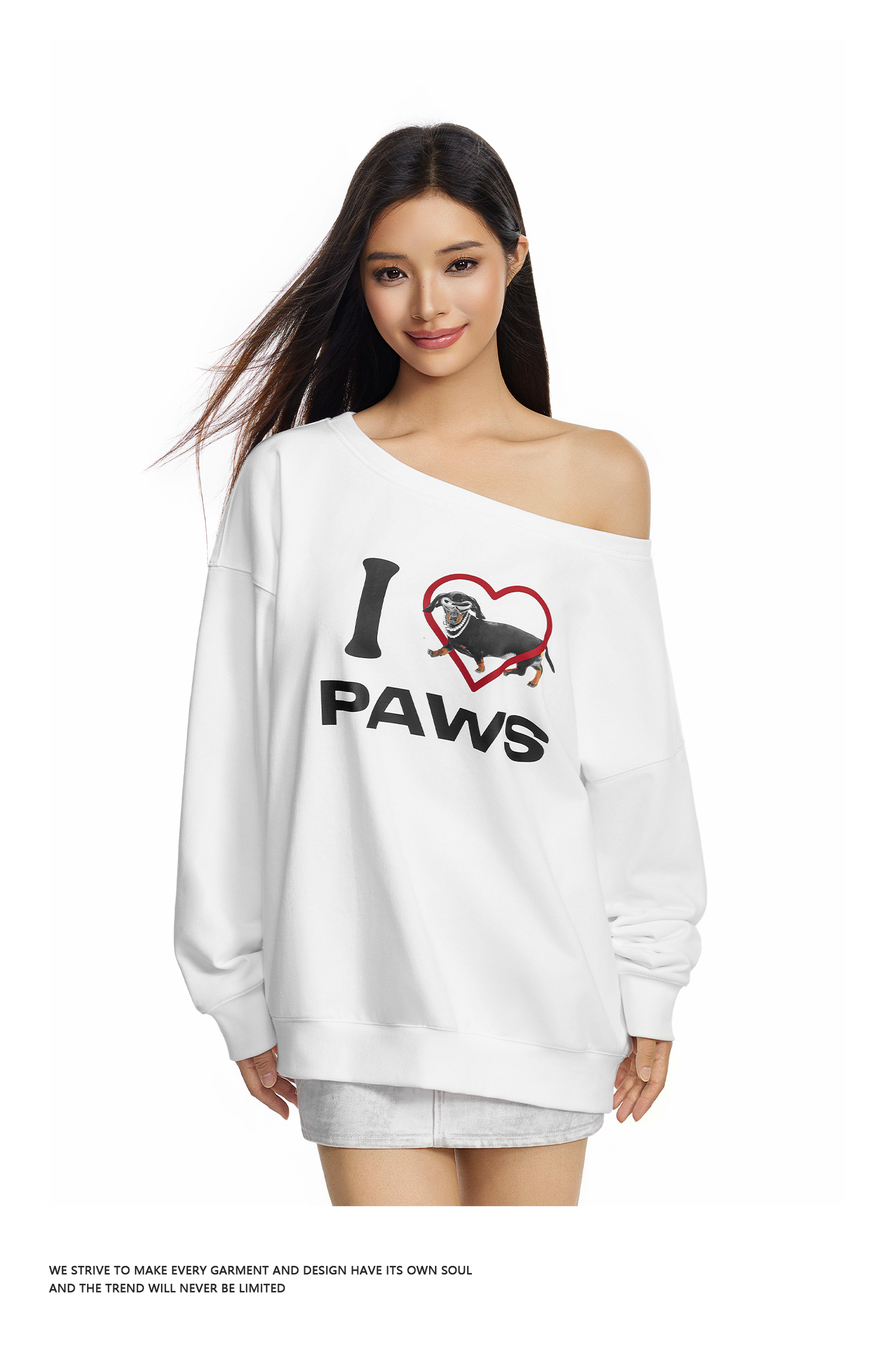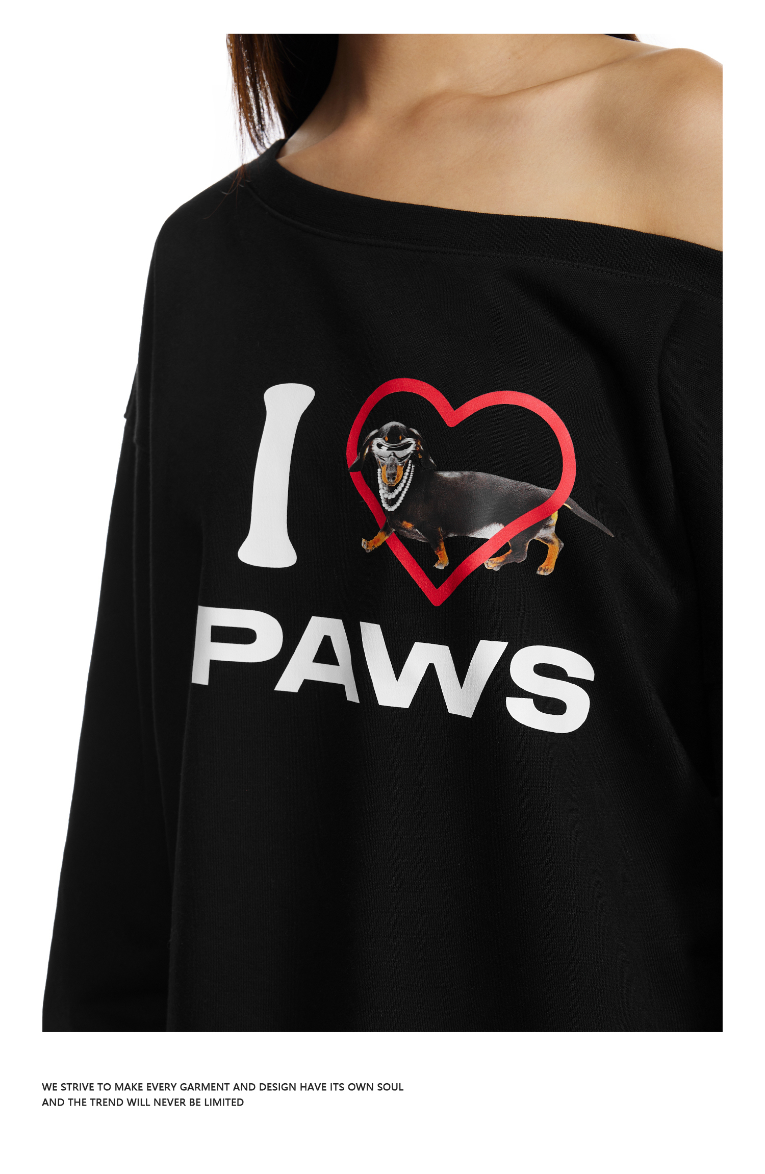 FDR官方店 “我爱狗狗”斜肩卫衣女秋季保暖运动一字肩长袖上衣