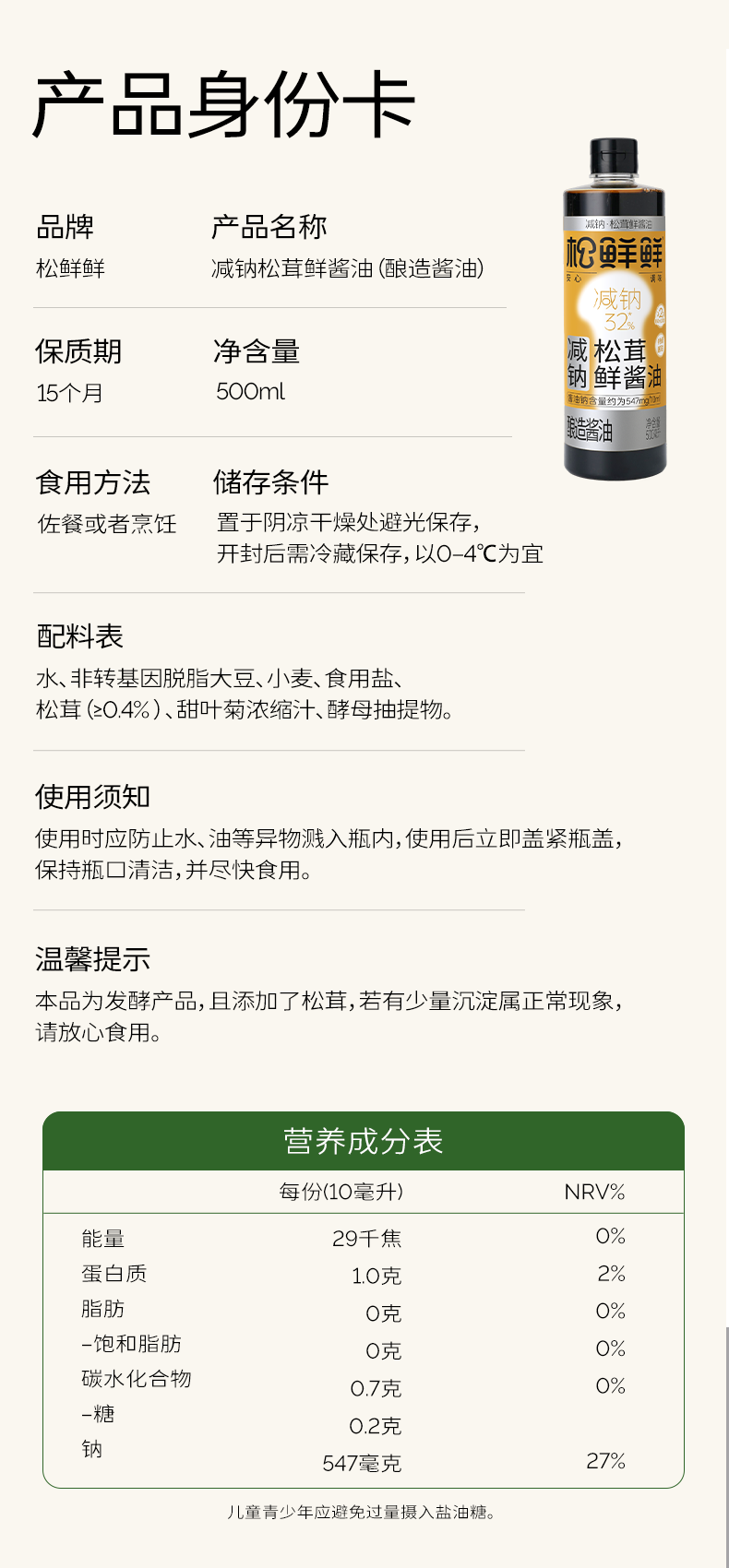 松鲜鲜减钠32%松茸鲜酱油 商品缩略图0 松鲜鲜减钠32%松茸鲜酱油 商品缩略图1 松鲜鲜减钠32%松茸鲜酱油 商品缩略图2 松鲜鲜减钠32%松茸鲜酱油 商品缩略图3 松鲜鲜减钠32%松茸鲜酱油 商品缩略图4