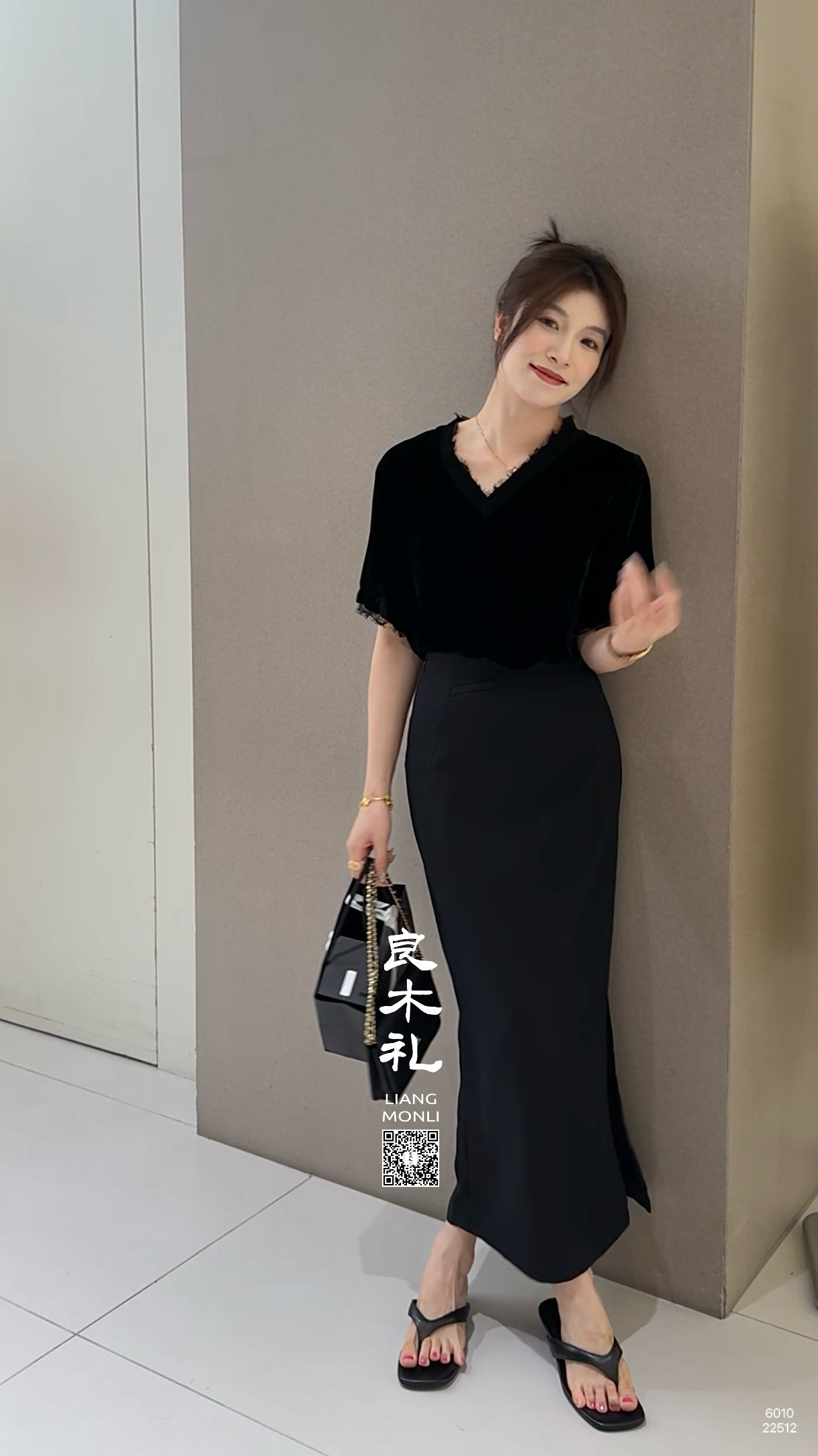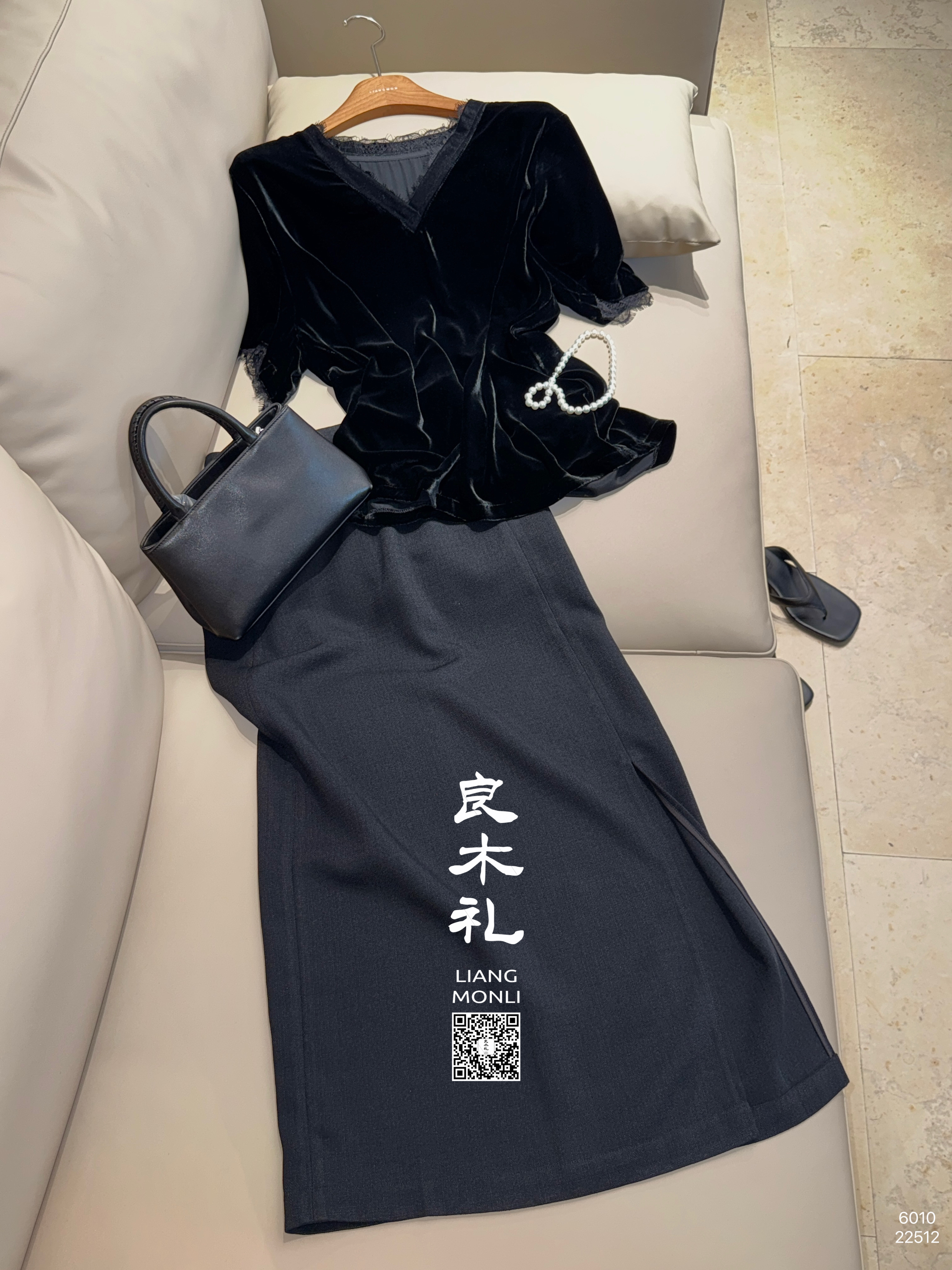 【预售7天|加厚】良木礼丝绒开叉半裙(黑绒绒)(D251101773)
