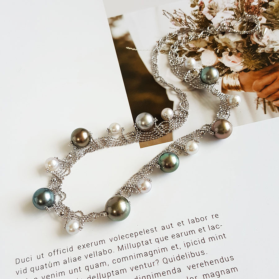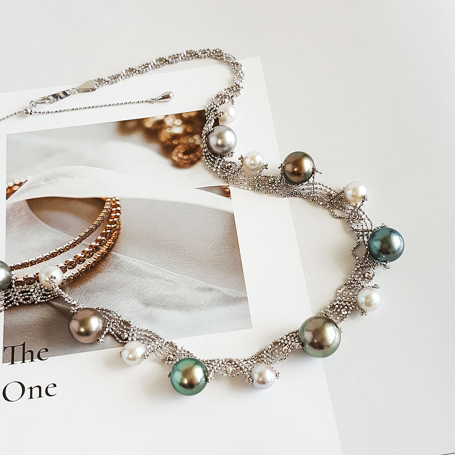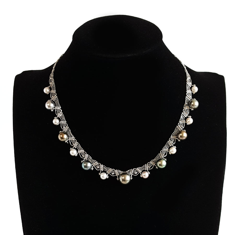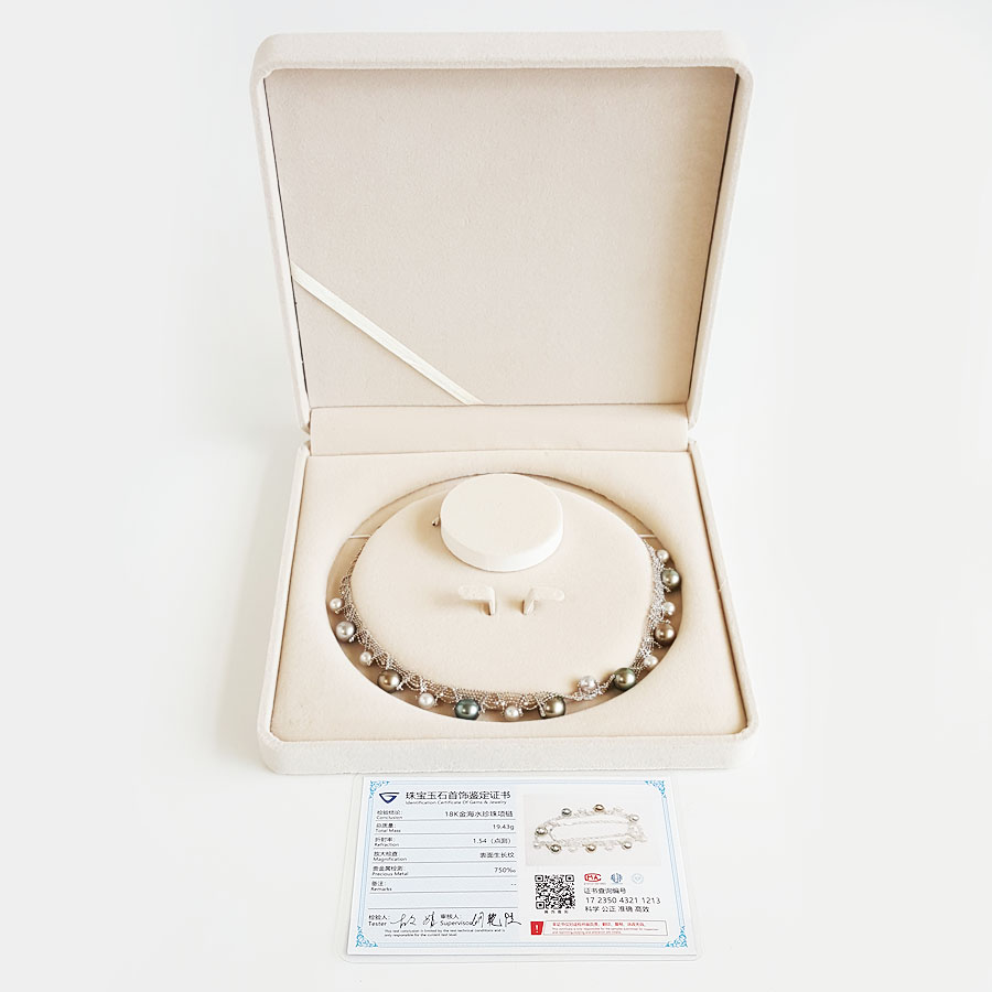名称 | AU750收藏级设计师款白金镶天然近完美约6-9MM蕾丝造型大溪地海水珍珠项链 |