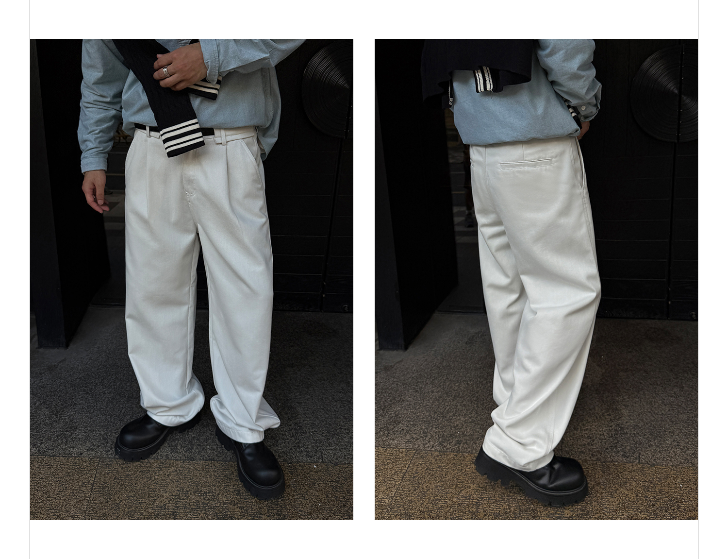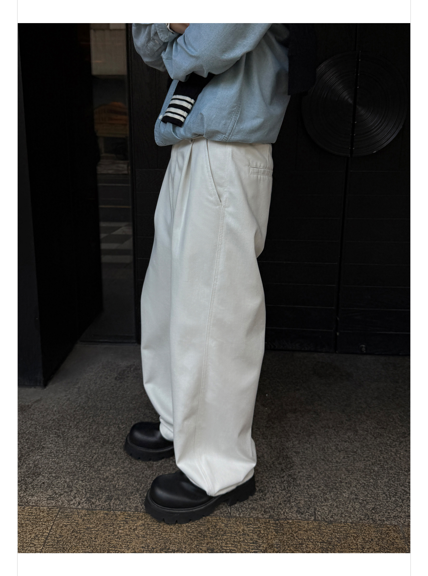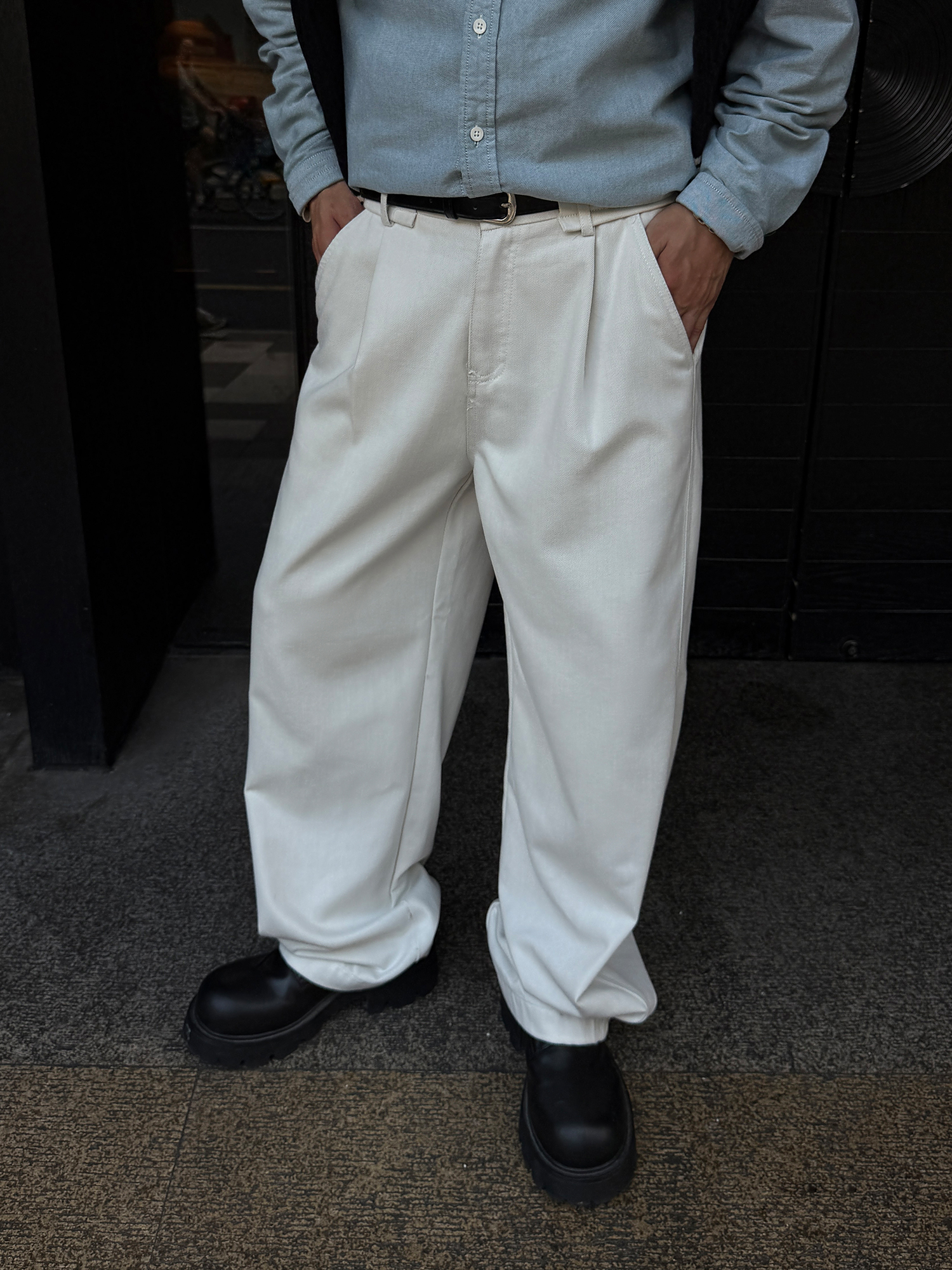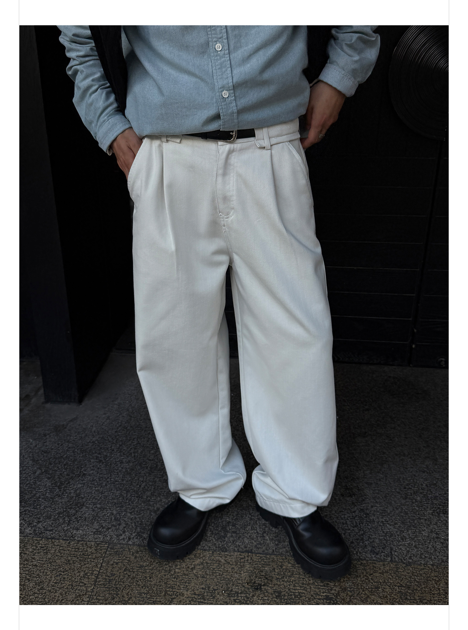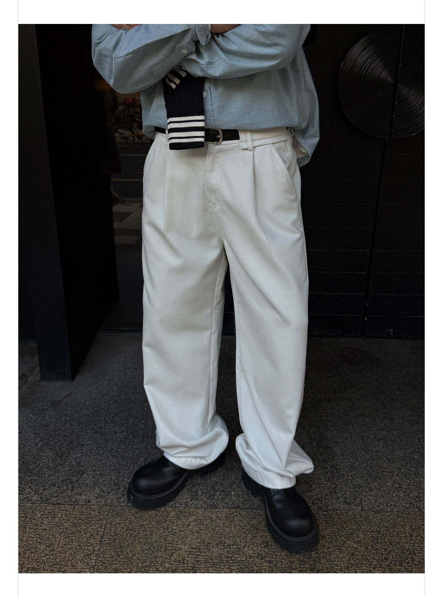 徐太浪【褶皱垂感 送腰带】潮牌白色休闲裤男春秋宽松直筒九分裤