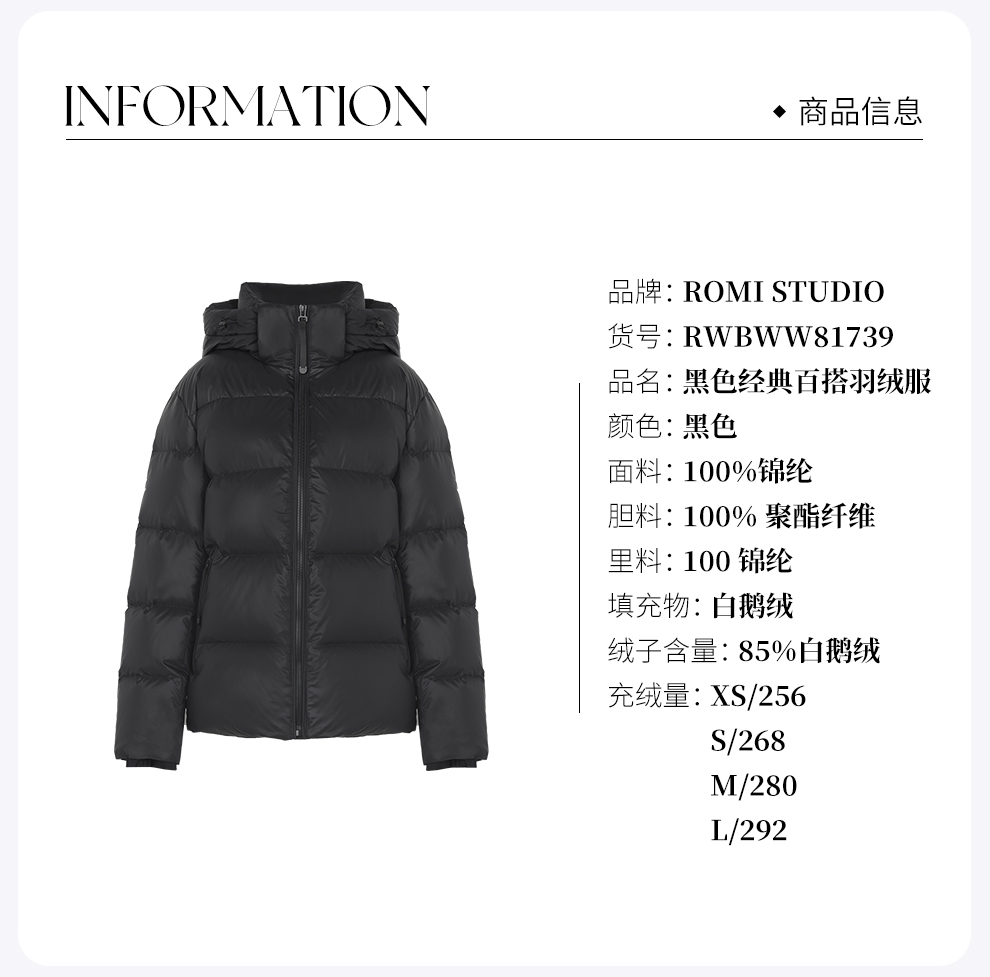 ROMI STUDIO“温暖过冬”高克重白鹅绒可拆卸连帽羽绒服 RWBWW81739
