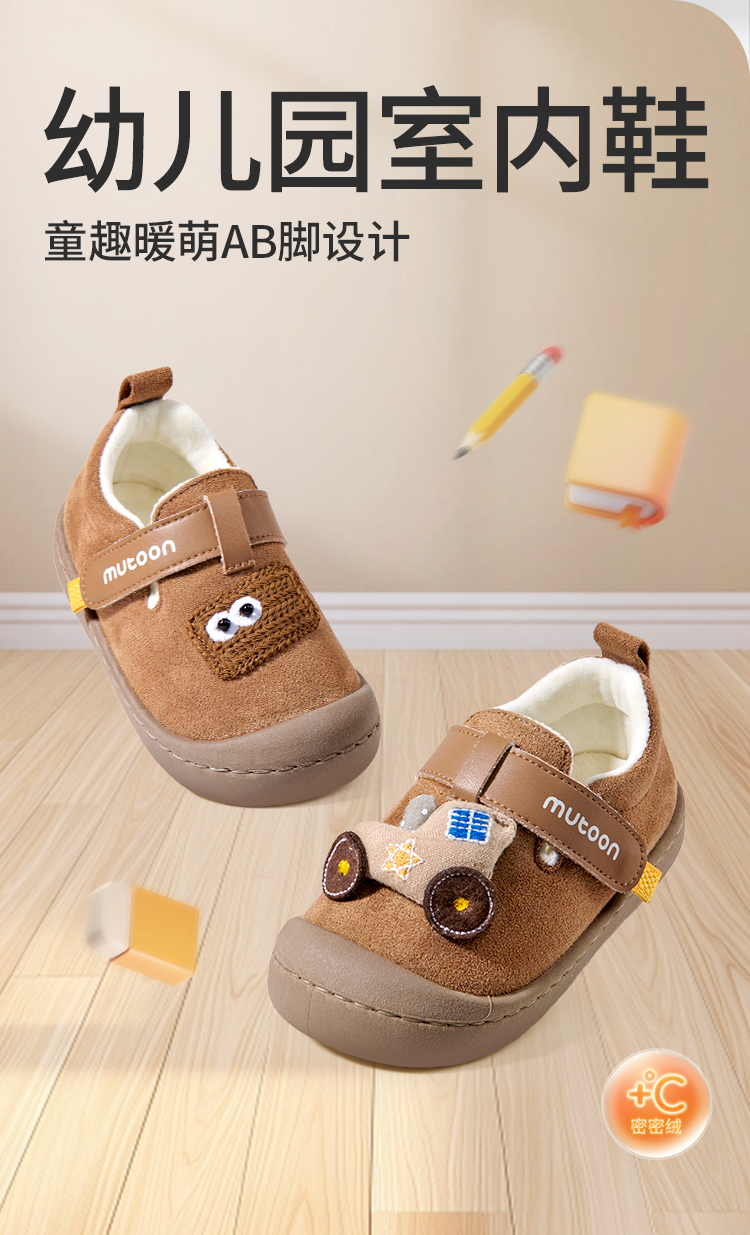 牧童保暖加绒机能棉鞋子2025冬季新款幼儿园鞋宝宝软底防滑运动鞋