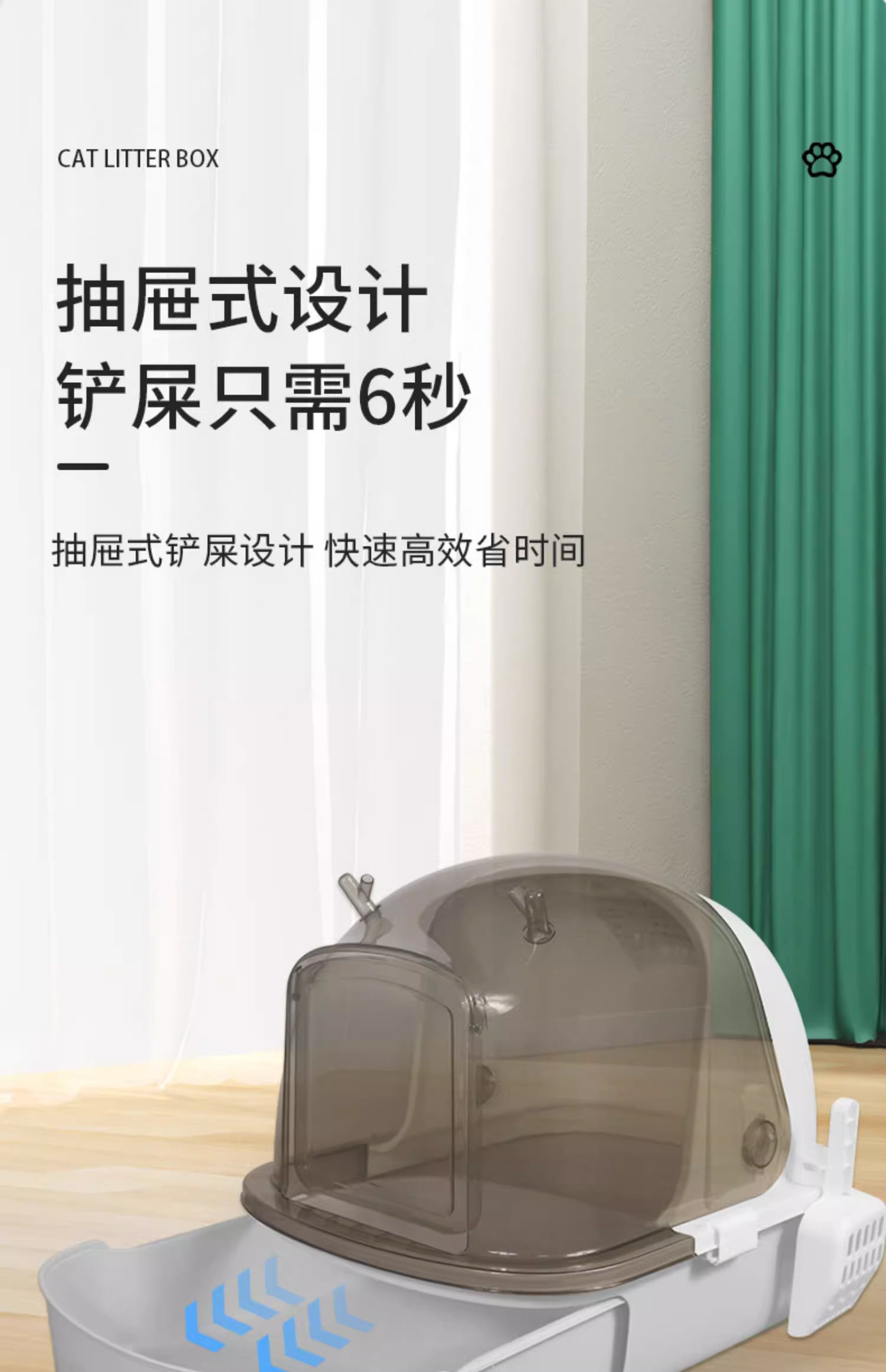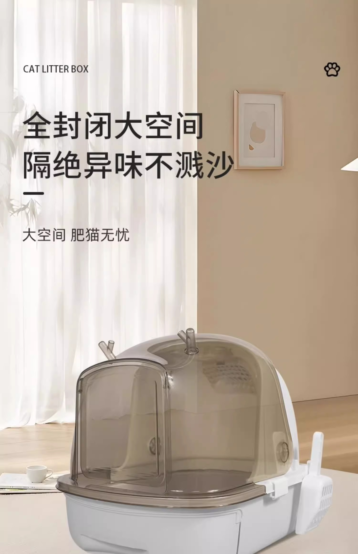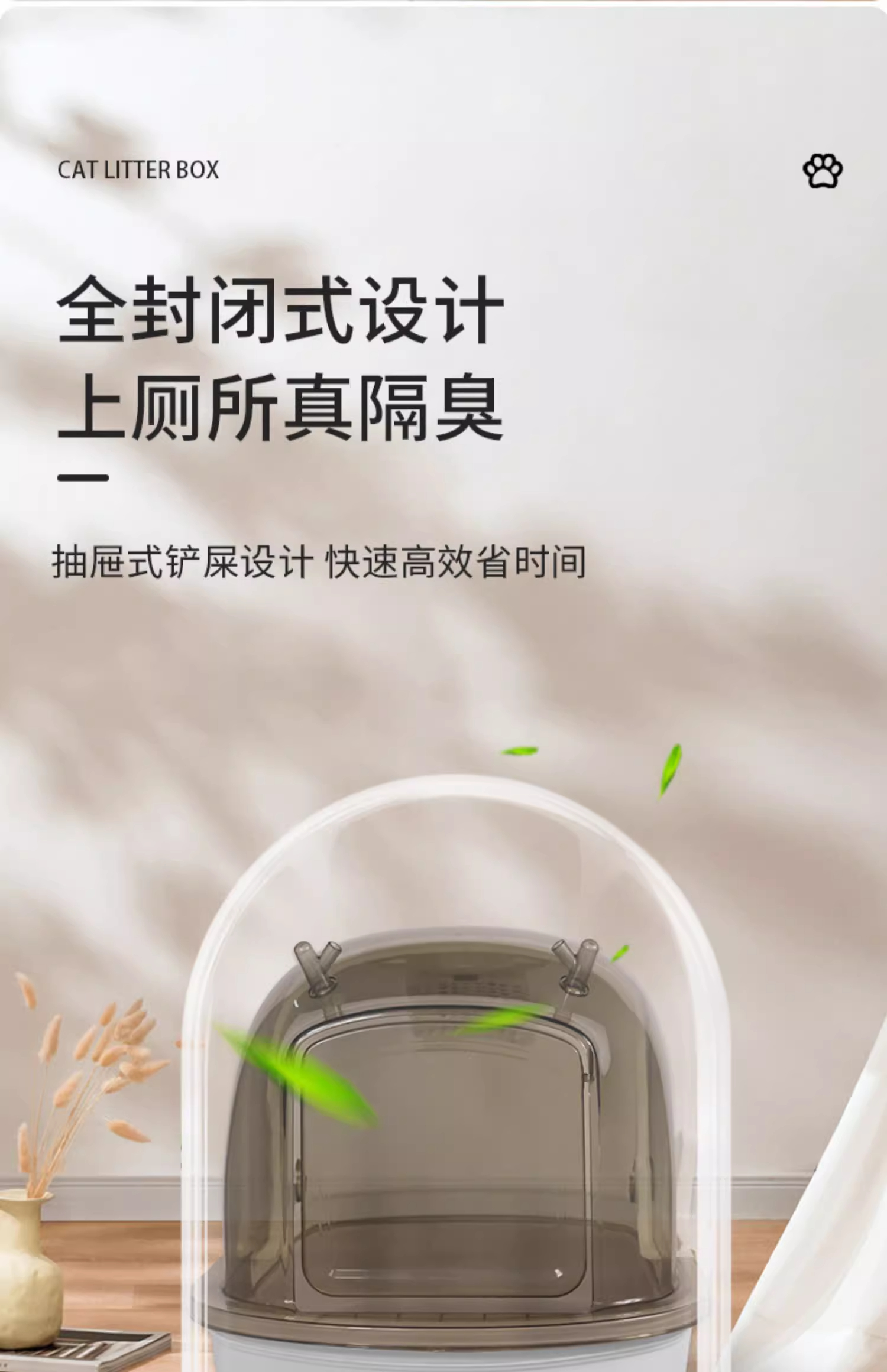 【限时8折】俘获掀盖猫砂盆超大号隔臭封闭式猫屎盆抽屉式防外溅猫厕所清洁用品