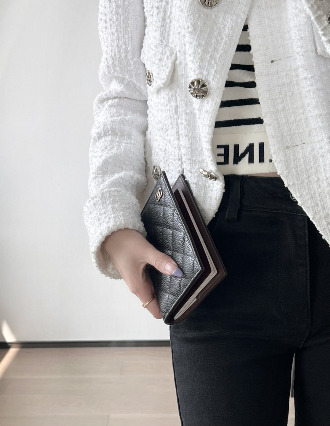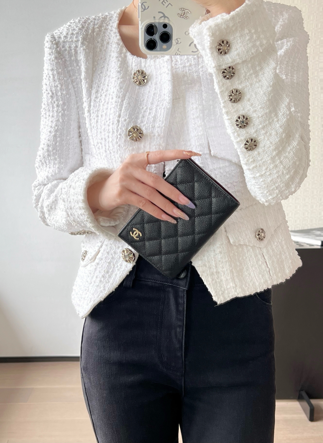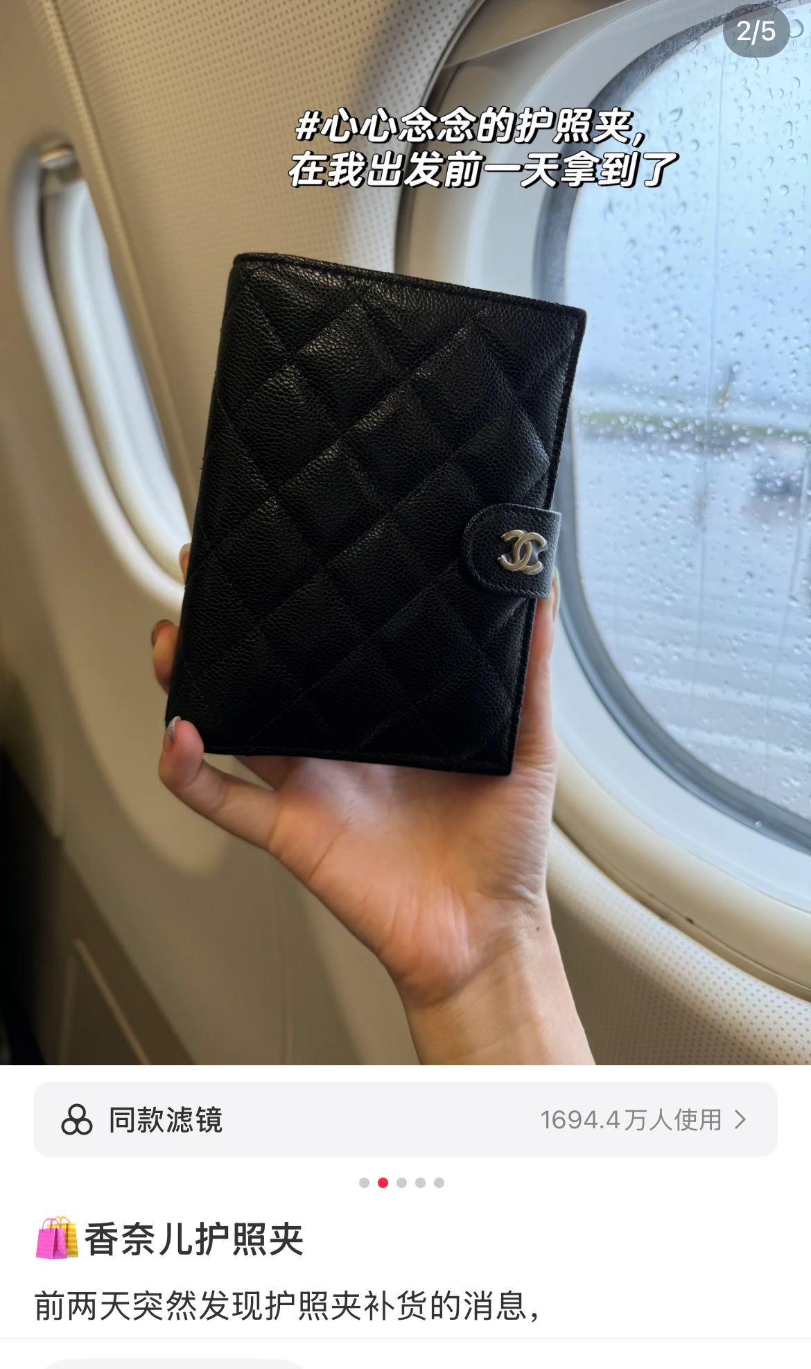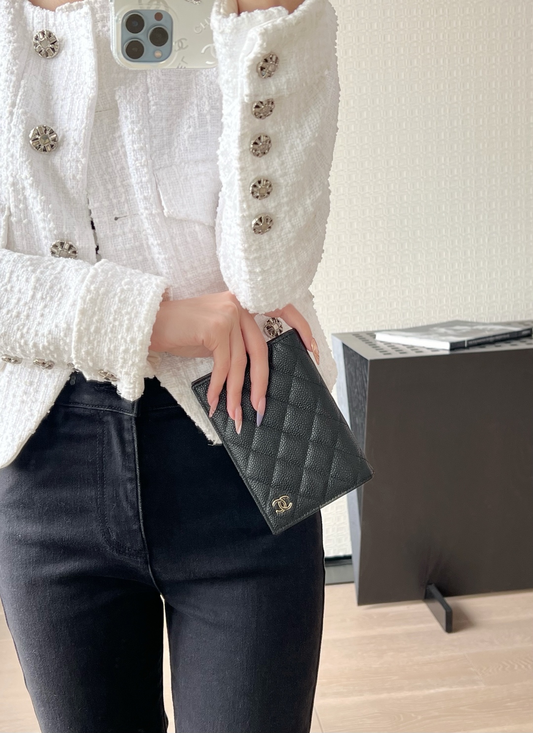 专柜售价𝟩𝟨𝟢𝟢𝗋𝗆𝖻购入开发~ 🔥火热上线𝖢𝗁𝖺𝗇𝖾𝗅按扣护照夹 中小球纹牛皮,邂逅黑金高级✨ 小巧𝖲𝗂𝗓𝖾轻松收纳护照、登机牌、 信用卡等...旅行必备〰️ 让你在旅途中也能保持优雅从容