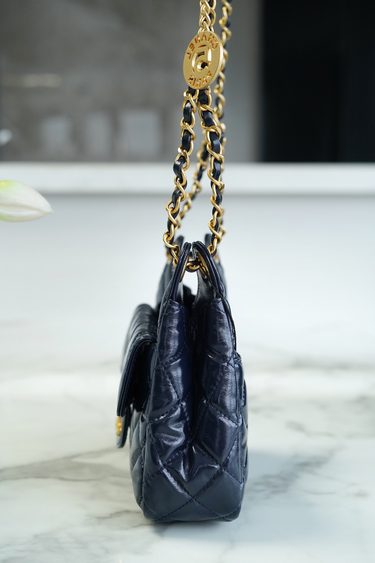 亮色皱纹小牛皮与金色金属,包型复古特别,小猫的造型感更衬托女人的性感可爱的一面,镂空的5?号徽章金币,前册的小口袋以及小金币挂坠都增加了整体的层次感,非常可观的容量,今年的实用流浪包非它莫属??