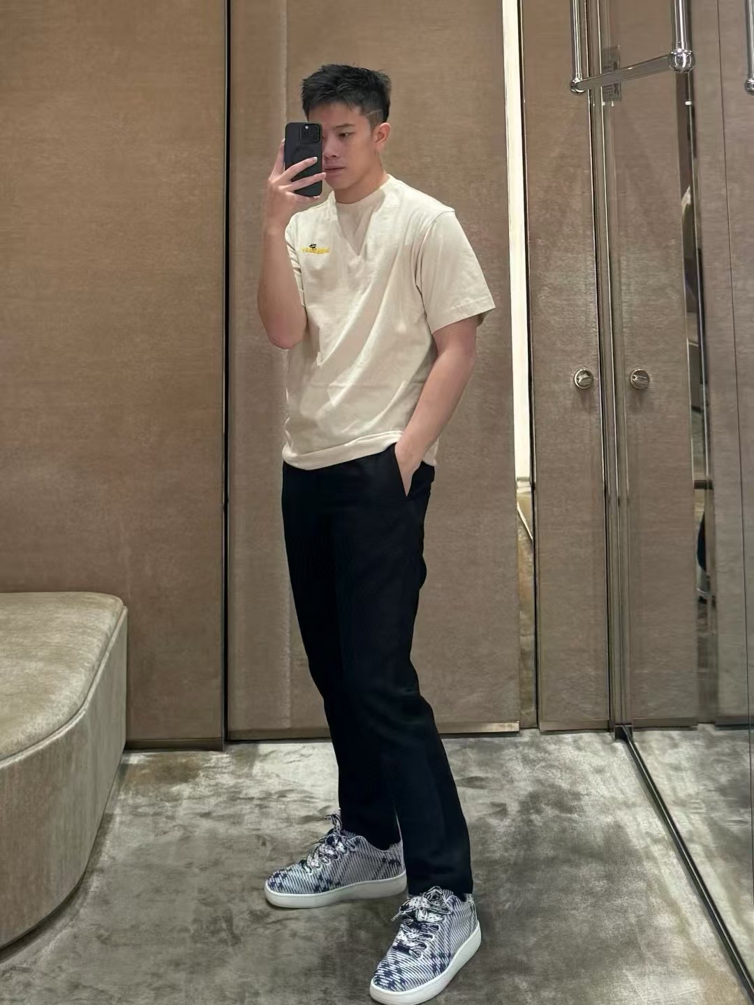 字母图案选用转移植绒工艺,以热转印技术加持牢固粘合剂成型印花图案。植绒印花是一种在承印物表面印涂粘合剂,再利用一定电压的静电场,使得短纤维垂直加速植到涂有粘合剂的胚布上。其优点包括防污、手感柔软、色彩绚丽等。同时植绒印花的成分采用尼龙材质,尼龙本身具有良好的防污性能和防水功能。