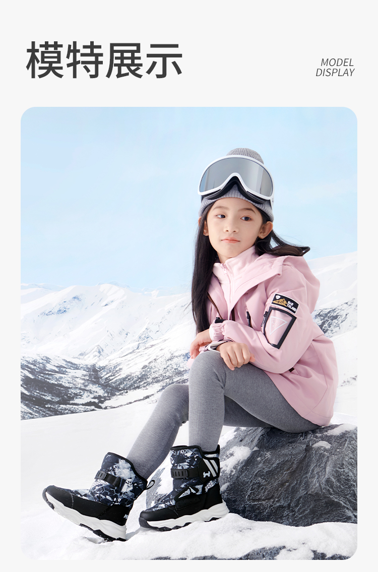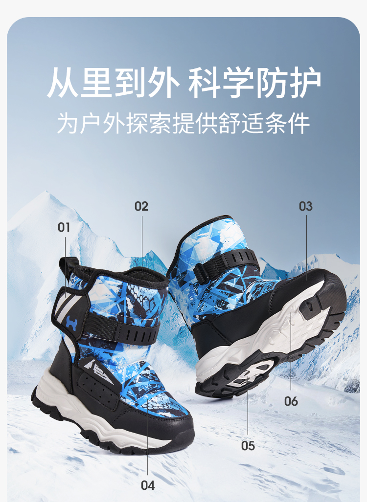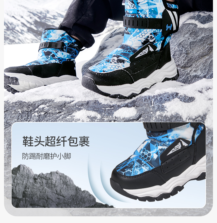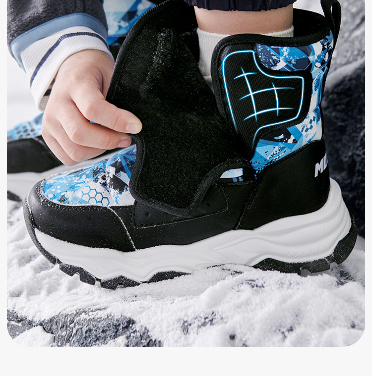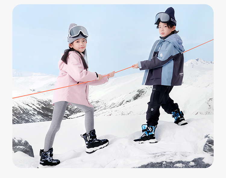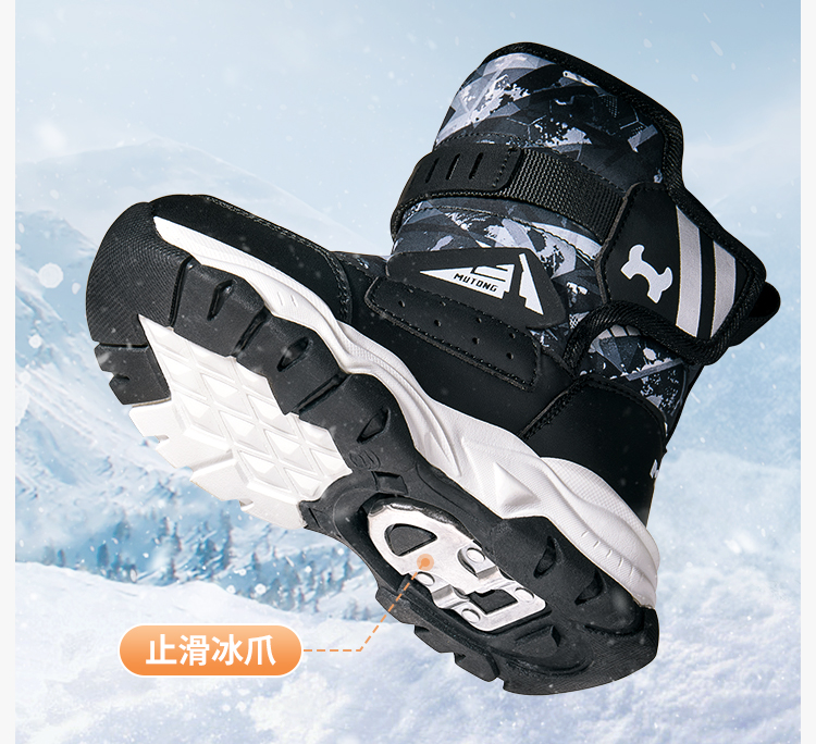 牧童冬季4-12岁中大童棉鞋子高筒滑雪雪地靴宝宝大棉加绒运动棉靴