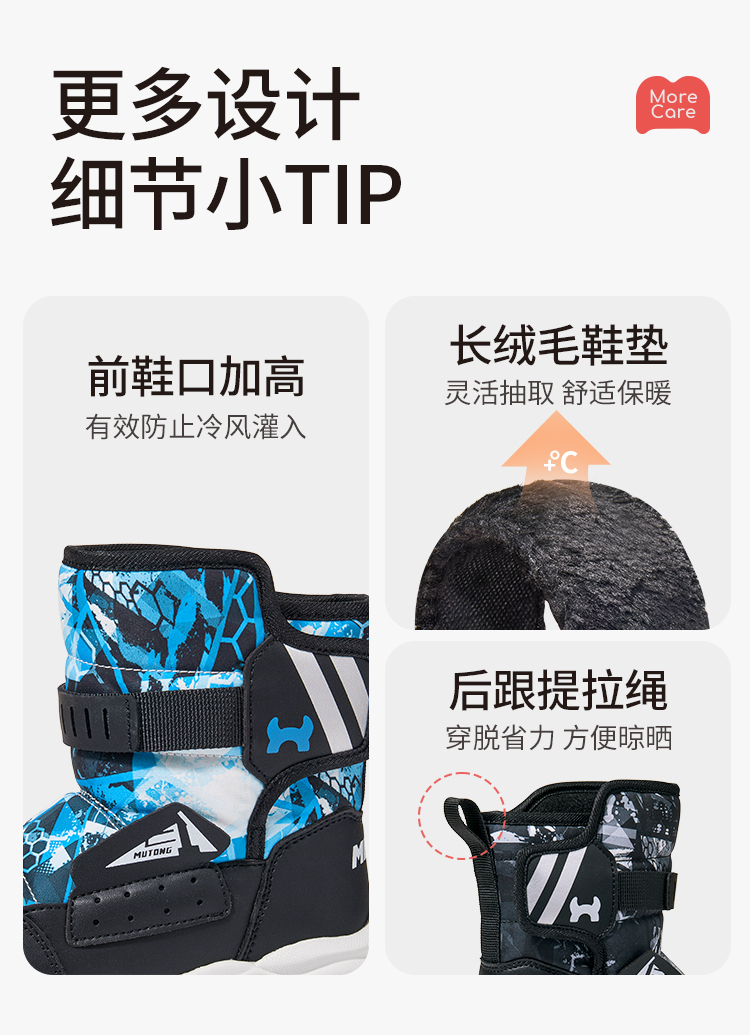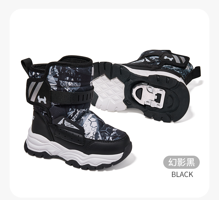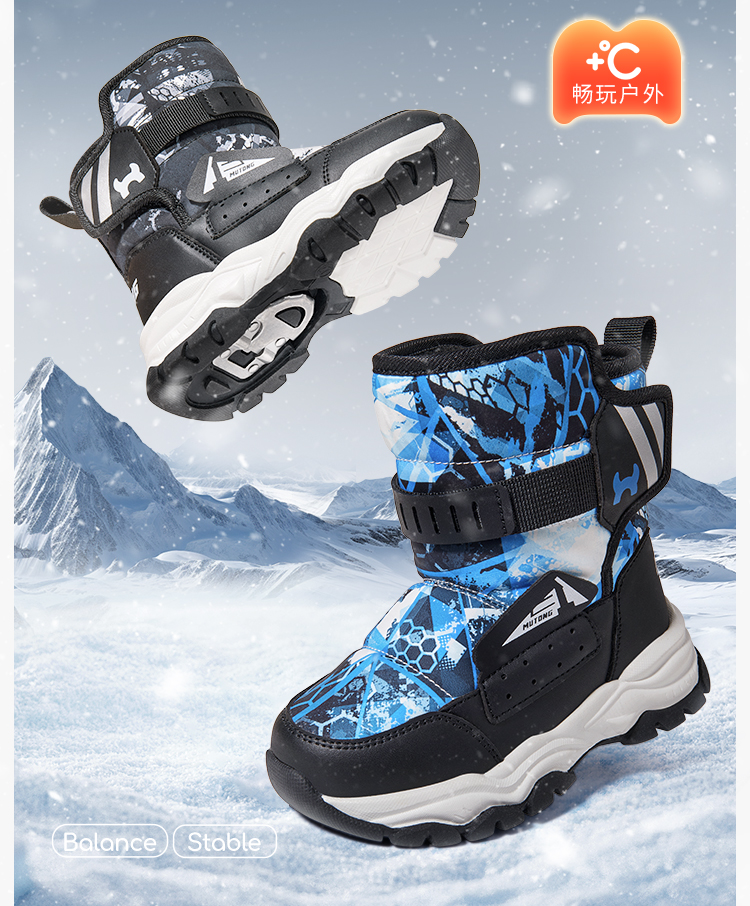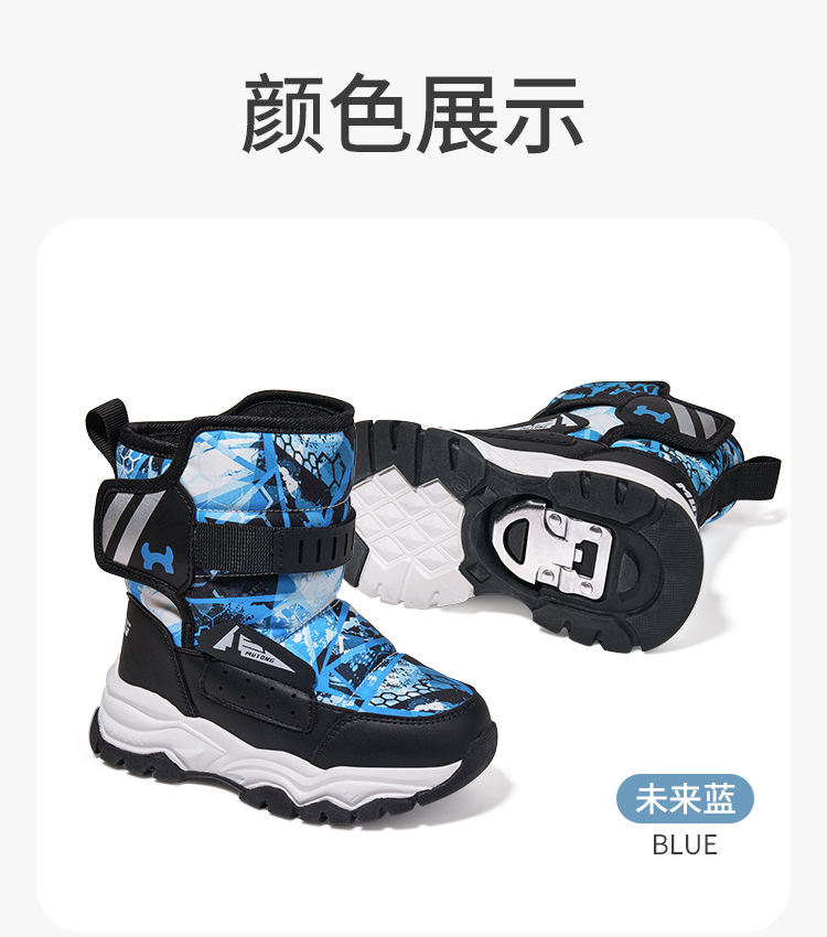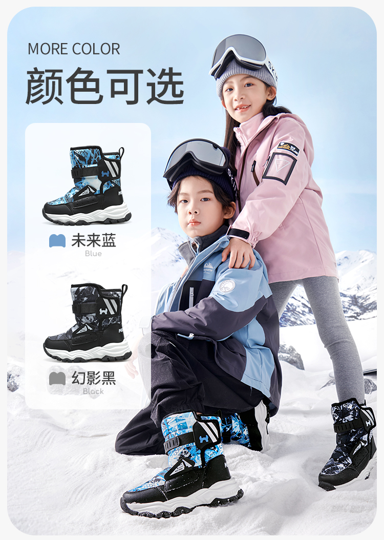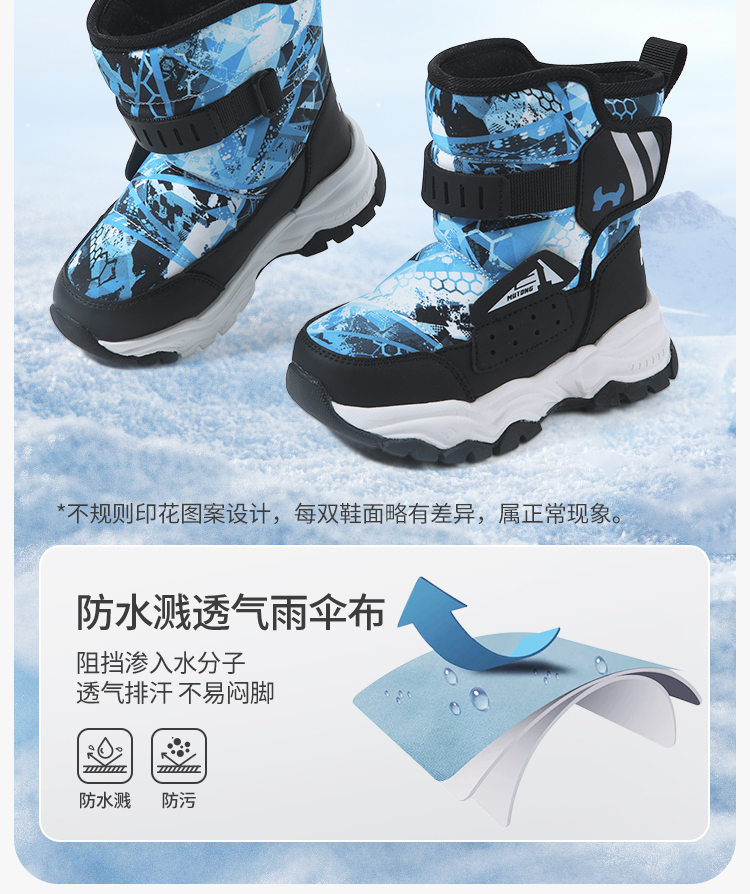 牧童冬季4-12岁中大童棉鞋子高筒滑雪雪地靴宝宝大棉加绒运动棉靴