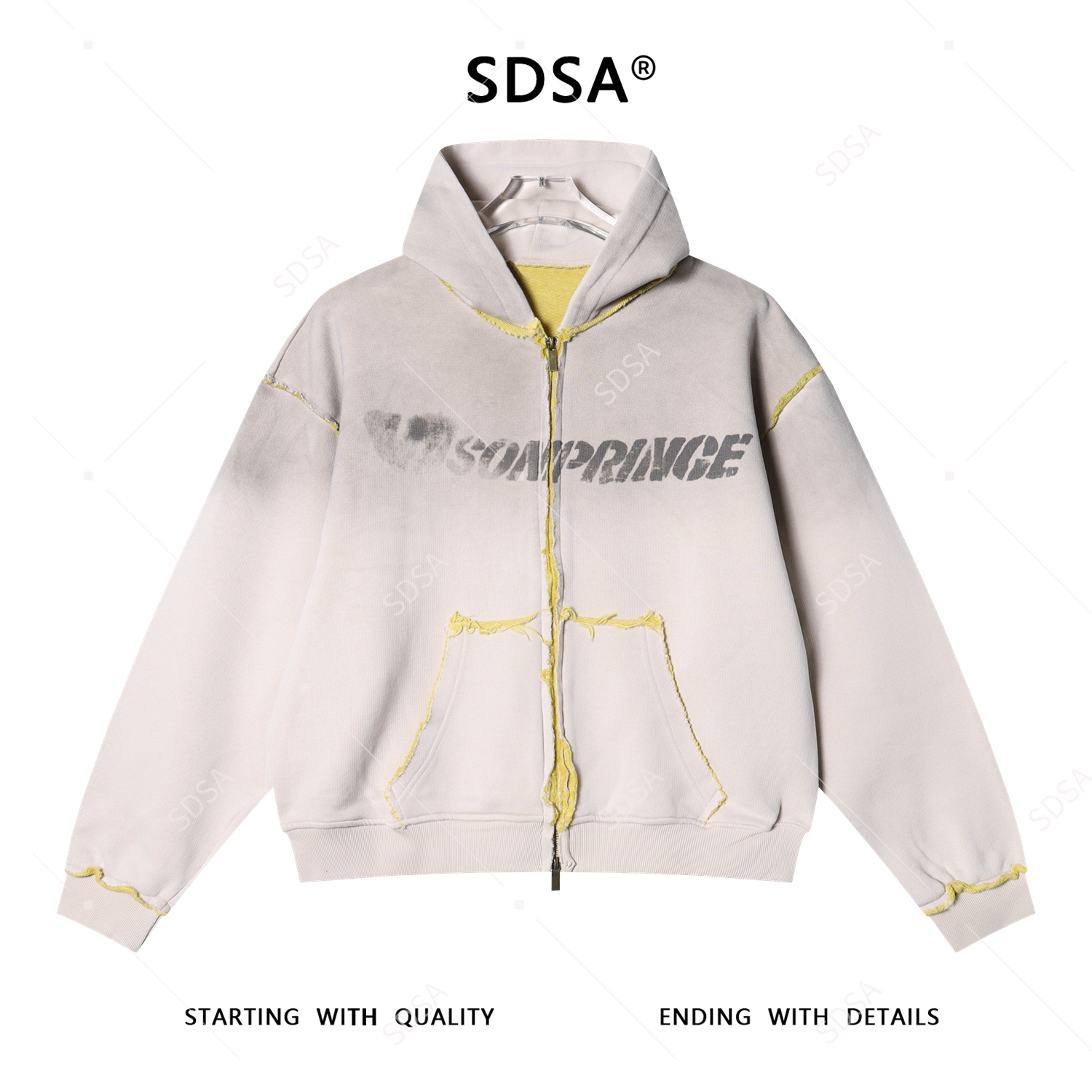 Y002SDSA秋冬新款痞帅男装美式渐变字母印花磨边拉链连帽卫衣百搭宽松