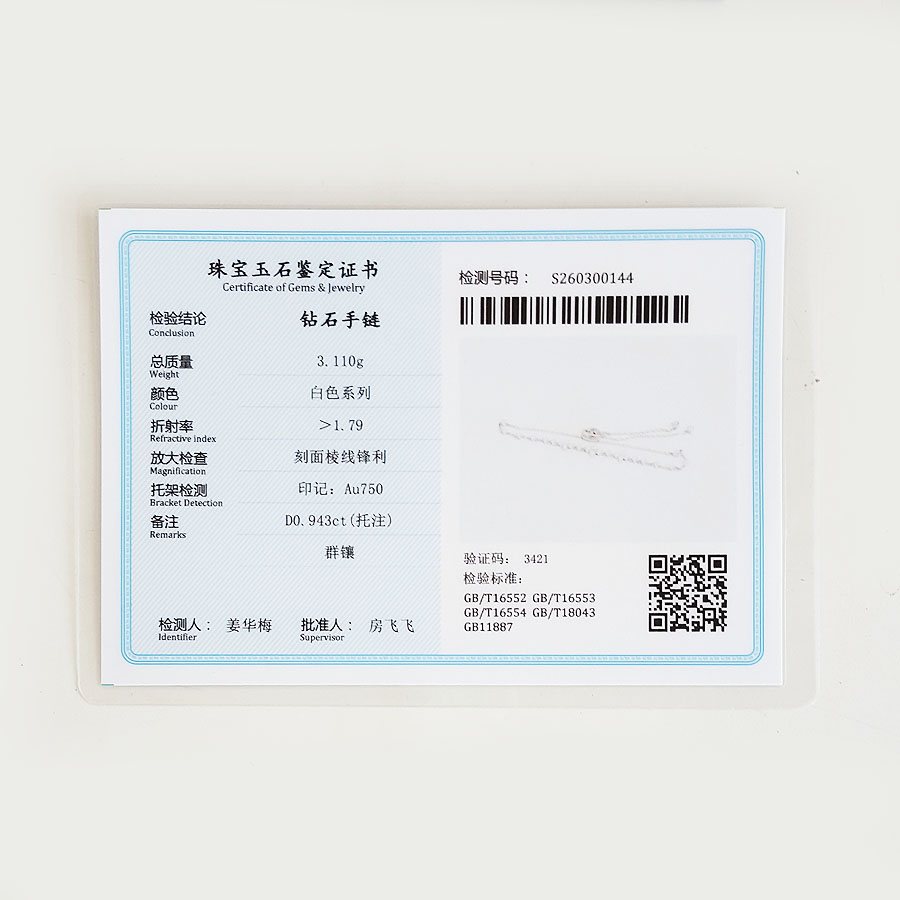 款式 | AU750白金简约时尚0.943克拉群镶钻石手链 |