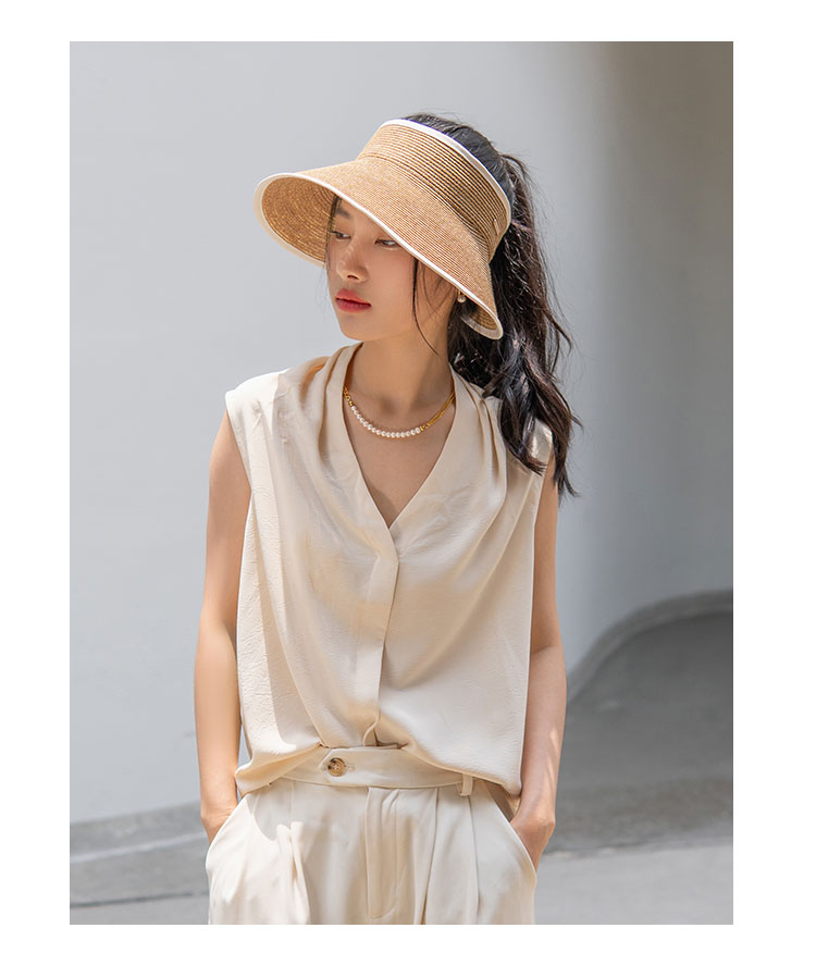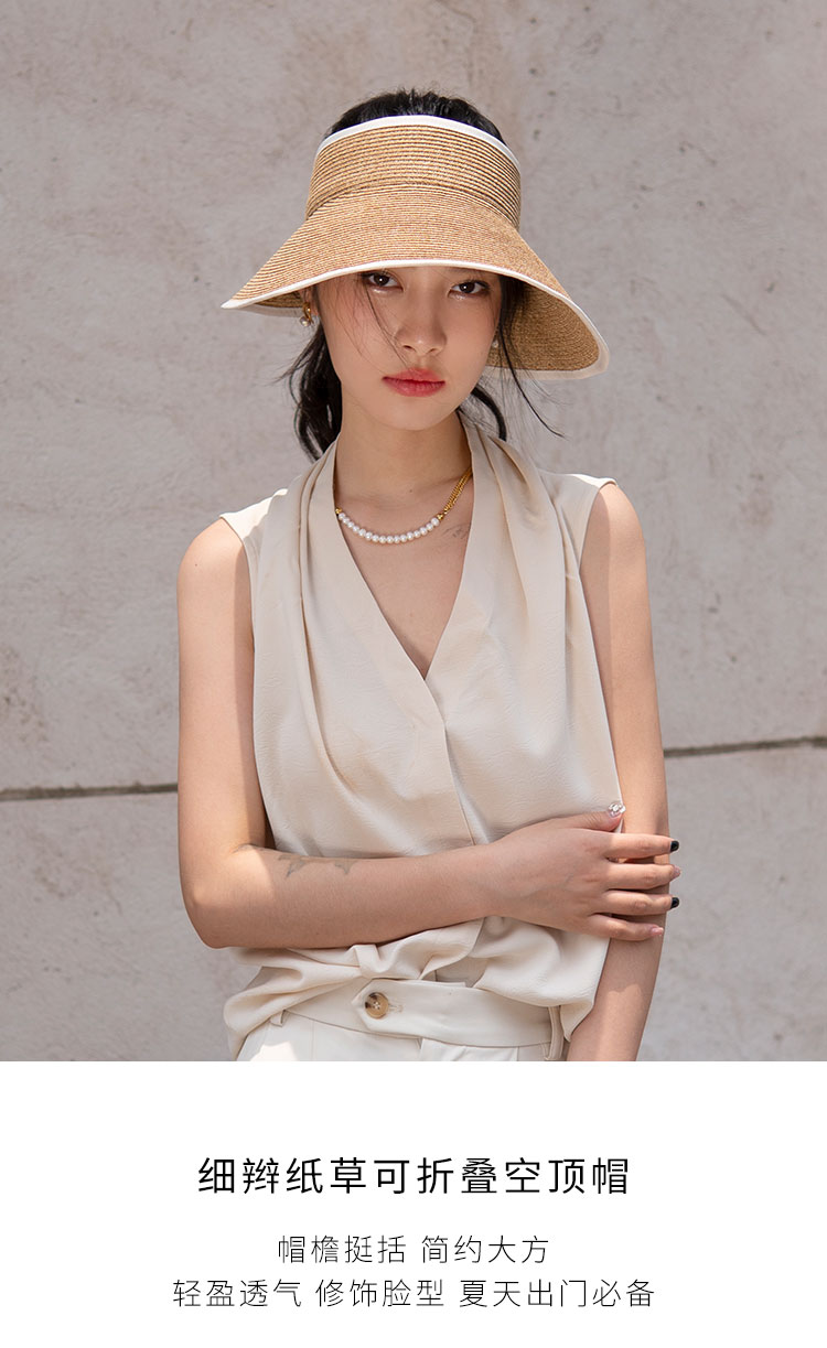 疯帽子 夏天新款可折叠遮阳空顶帽 逛街出游草帽子女 逛街太阳帽CY037