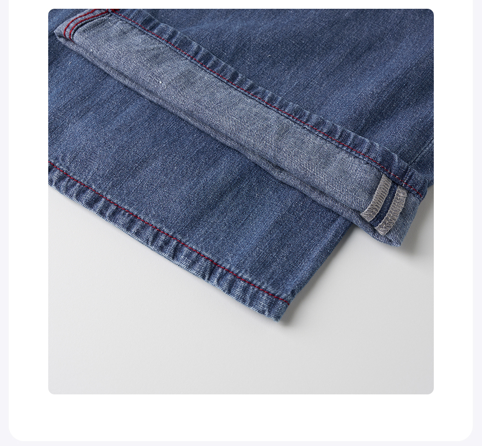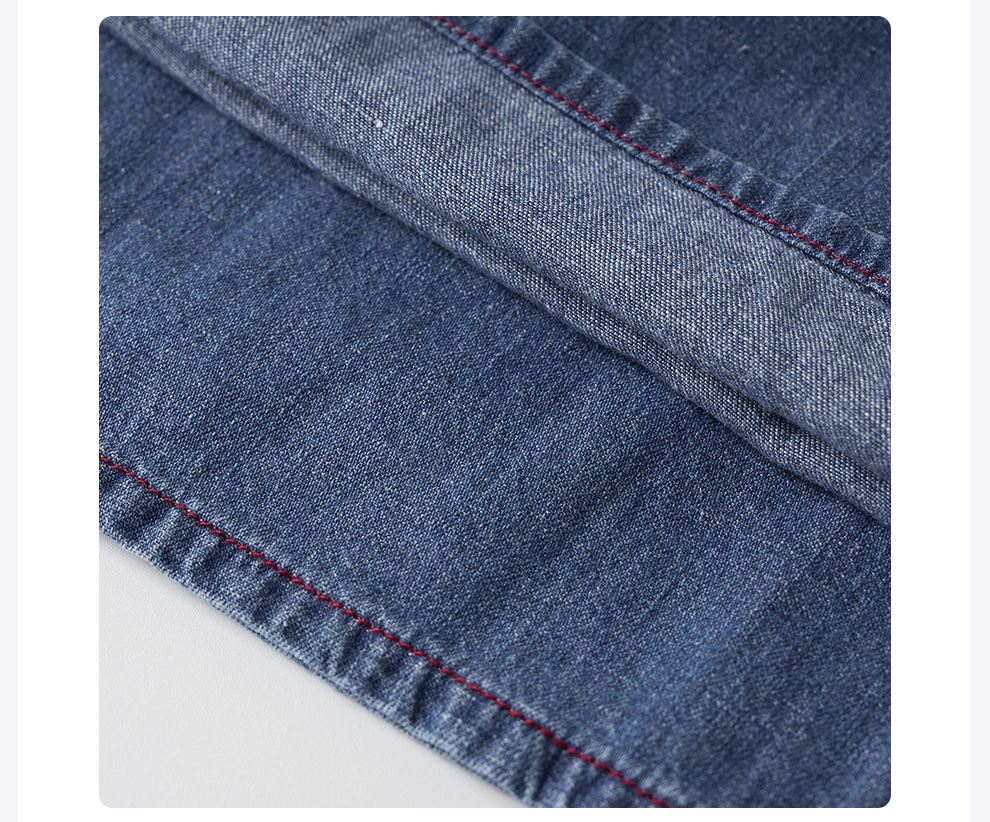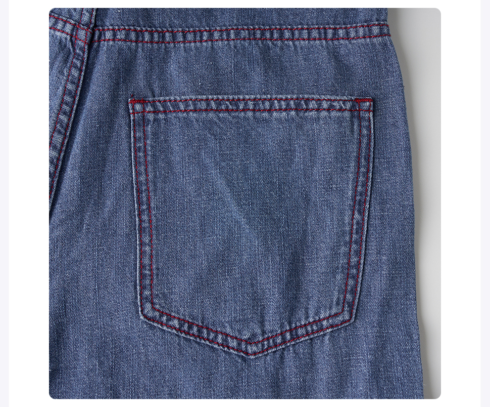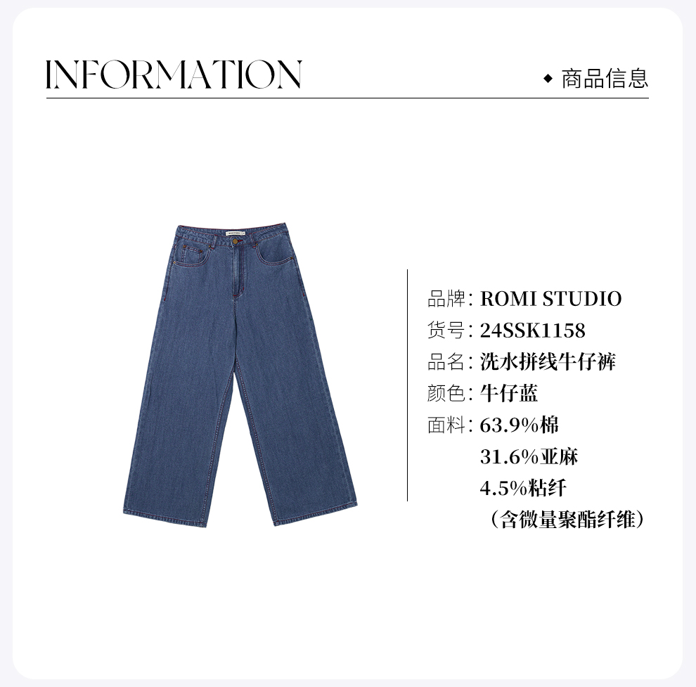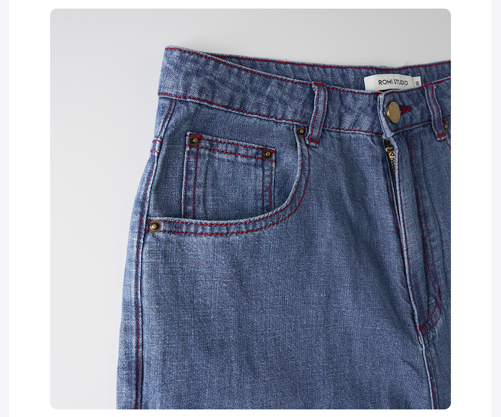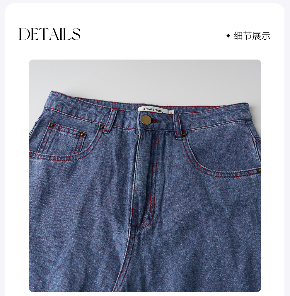 ROMI STUDIO-B红线牛仔粗砂棉麻混纺炒盐洗水拼线牛仔裤24SSK1158