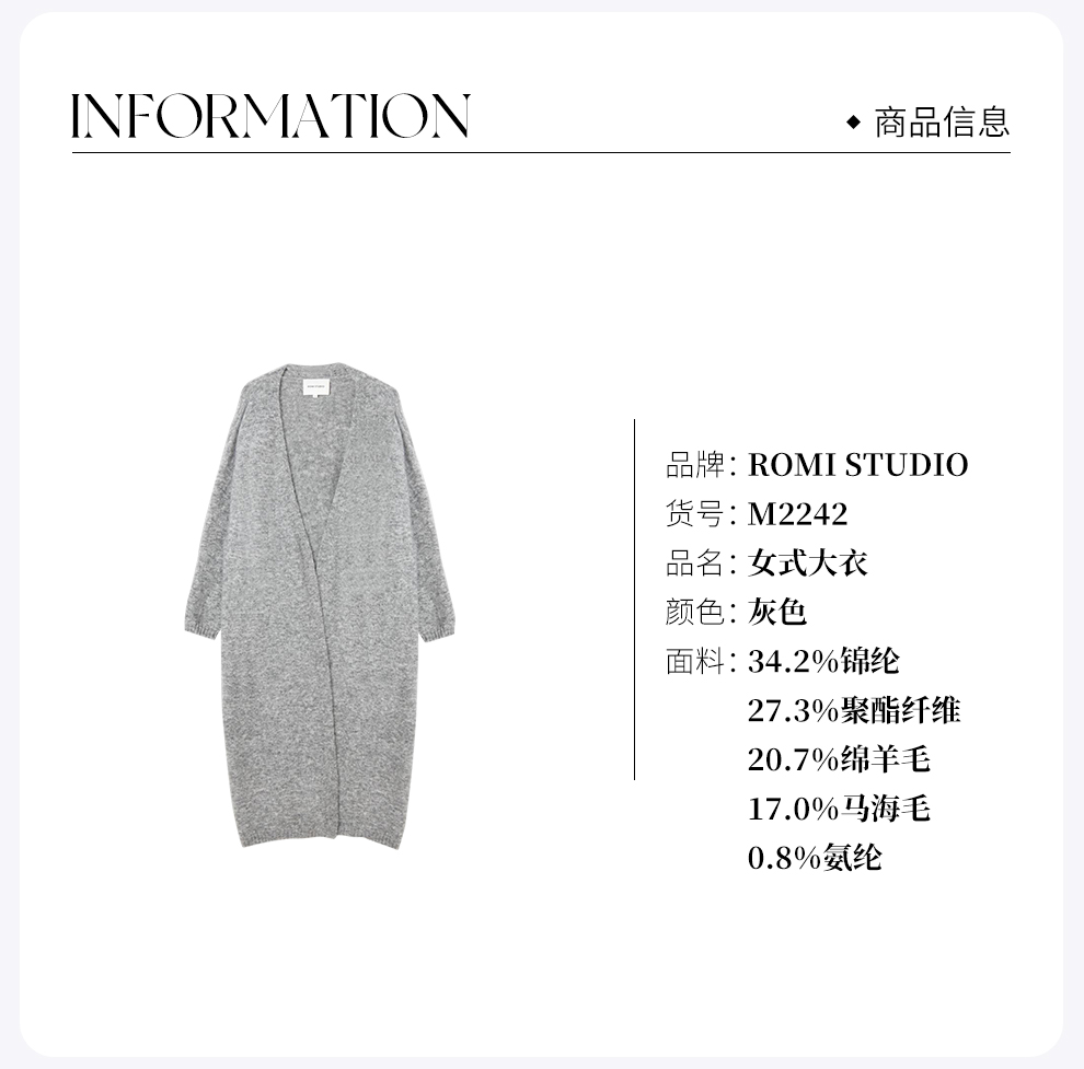 ROMI STUDIO宽松中长款上衣软糯毛衣针织开衫M2242