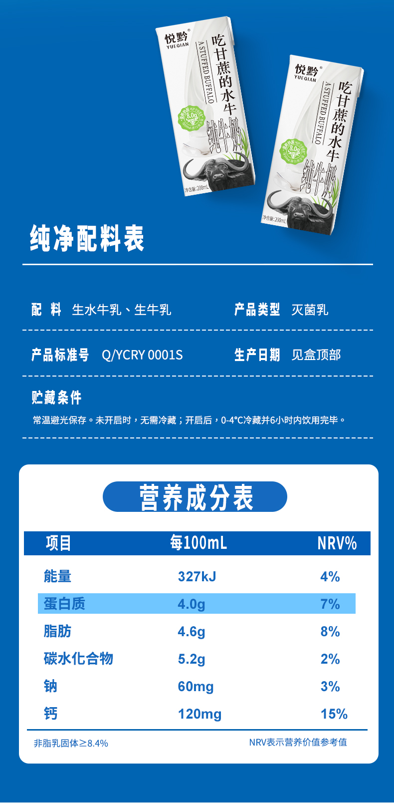 贵州省惠水县悦黔吃甘蔗的水牛纯牛奶200ml*10盒/提