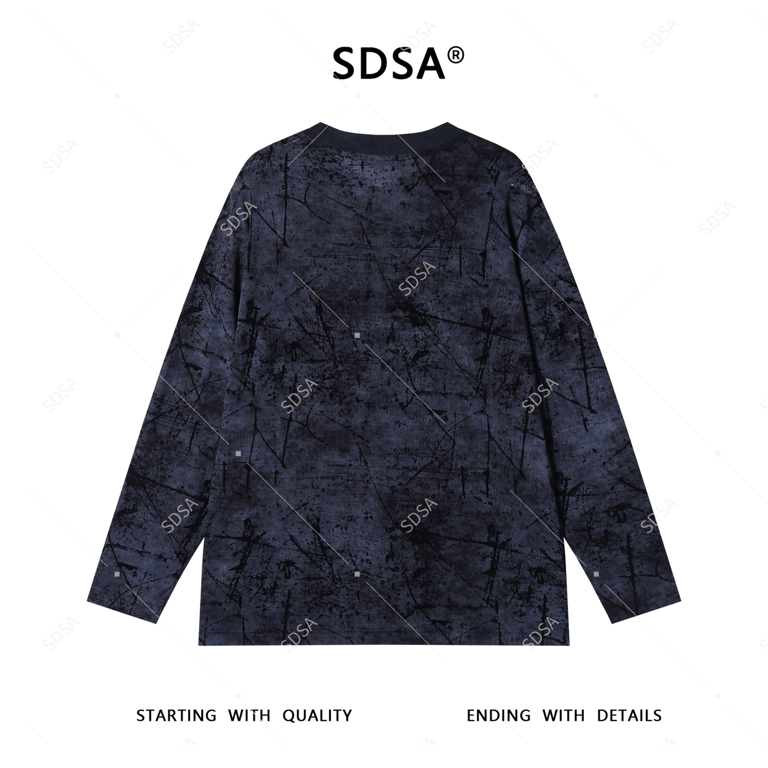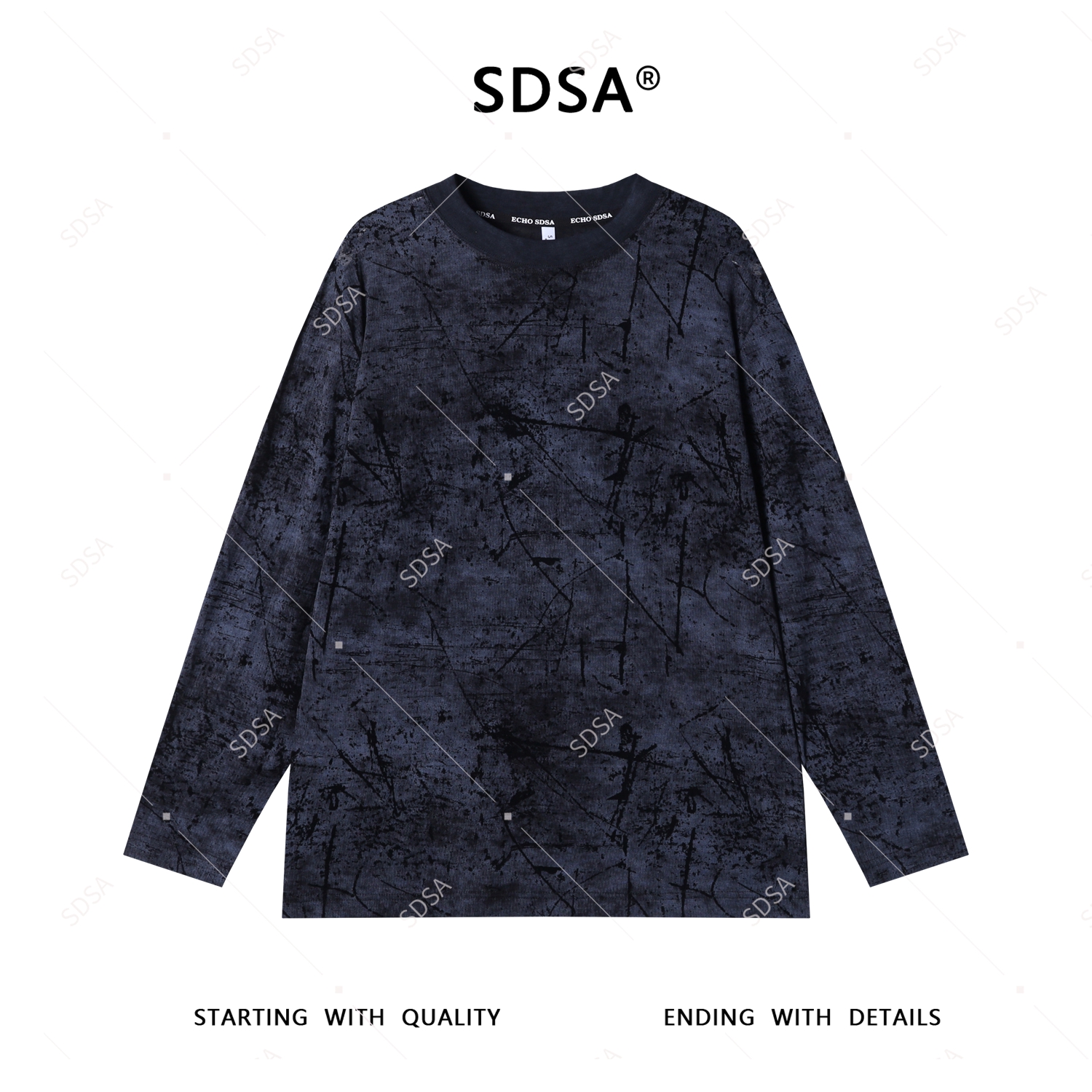 T4411SDSA夏季新款男士痞帅扎染植绒凌乱设计圆领长袖T恤亲肤百搭上衣