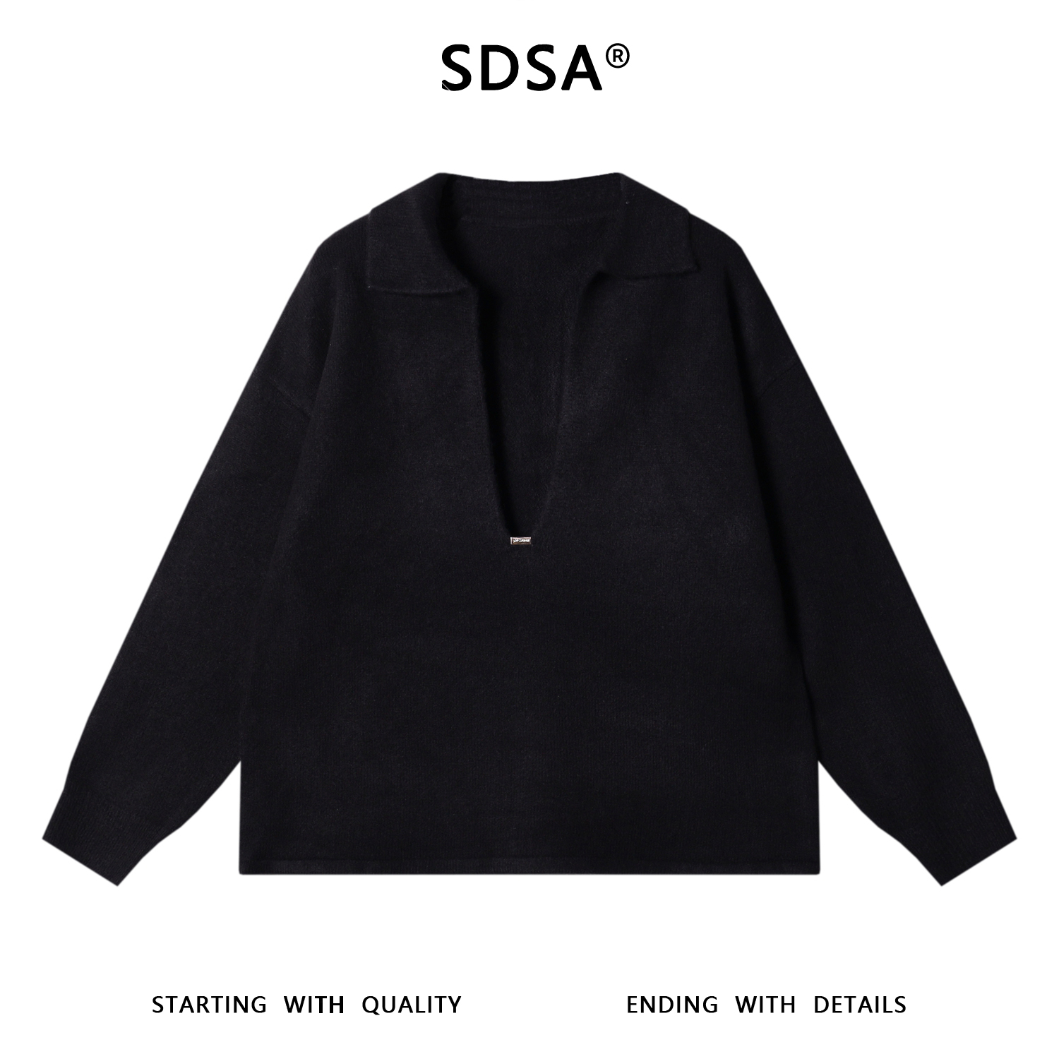 SDSA男士秋冬新款痞帅男装时尚深V翻领针织衫轻奢慵懒风百搭毛衣